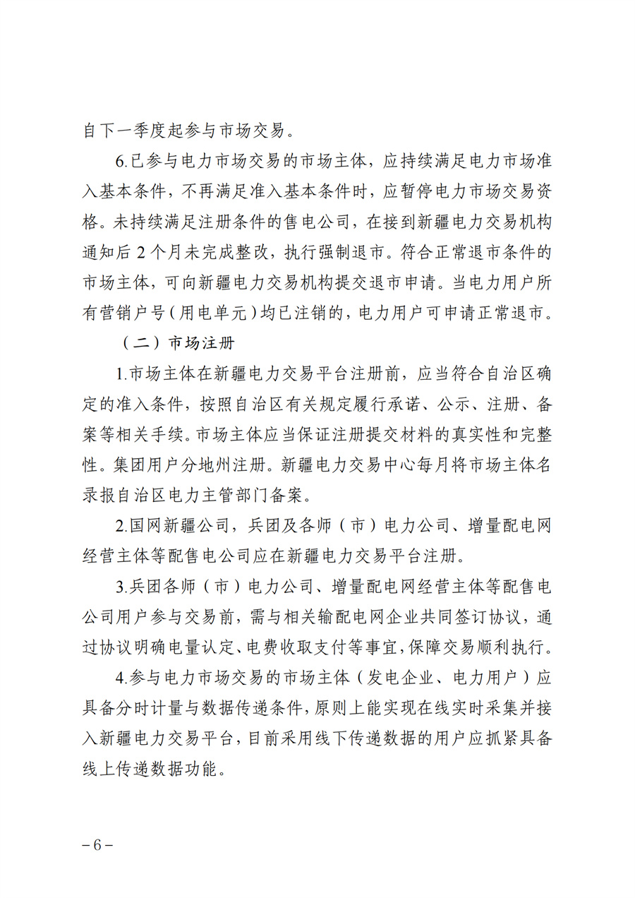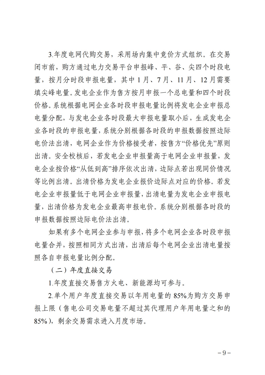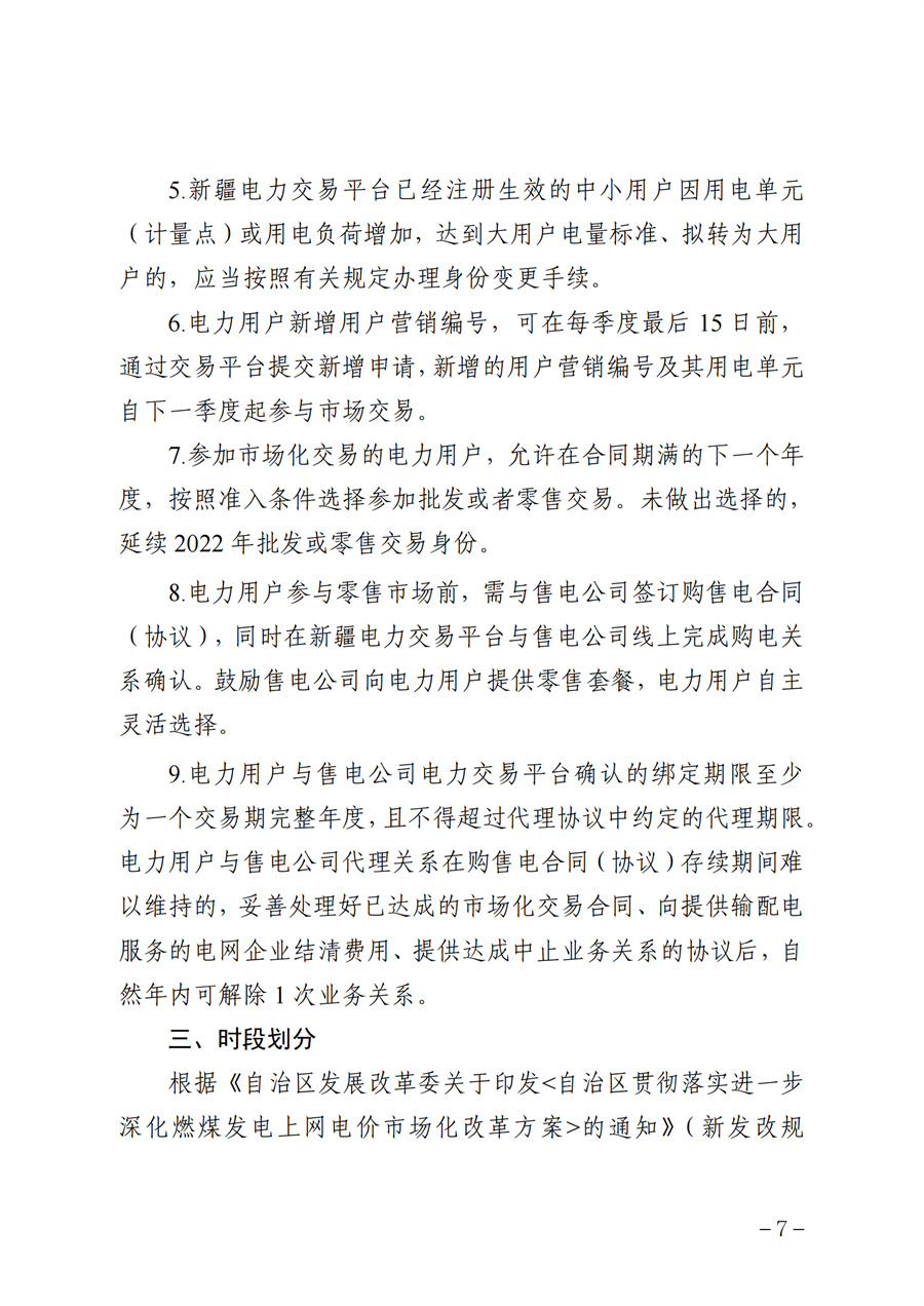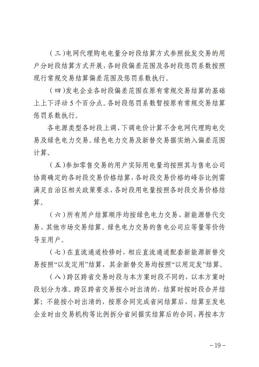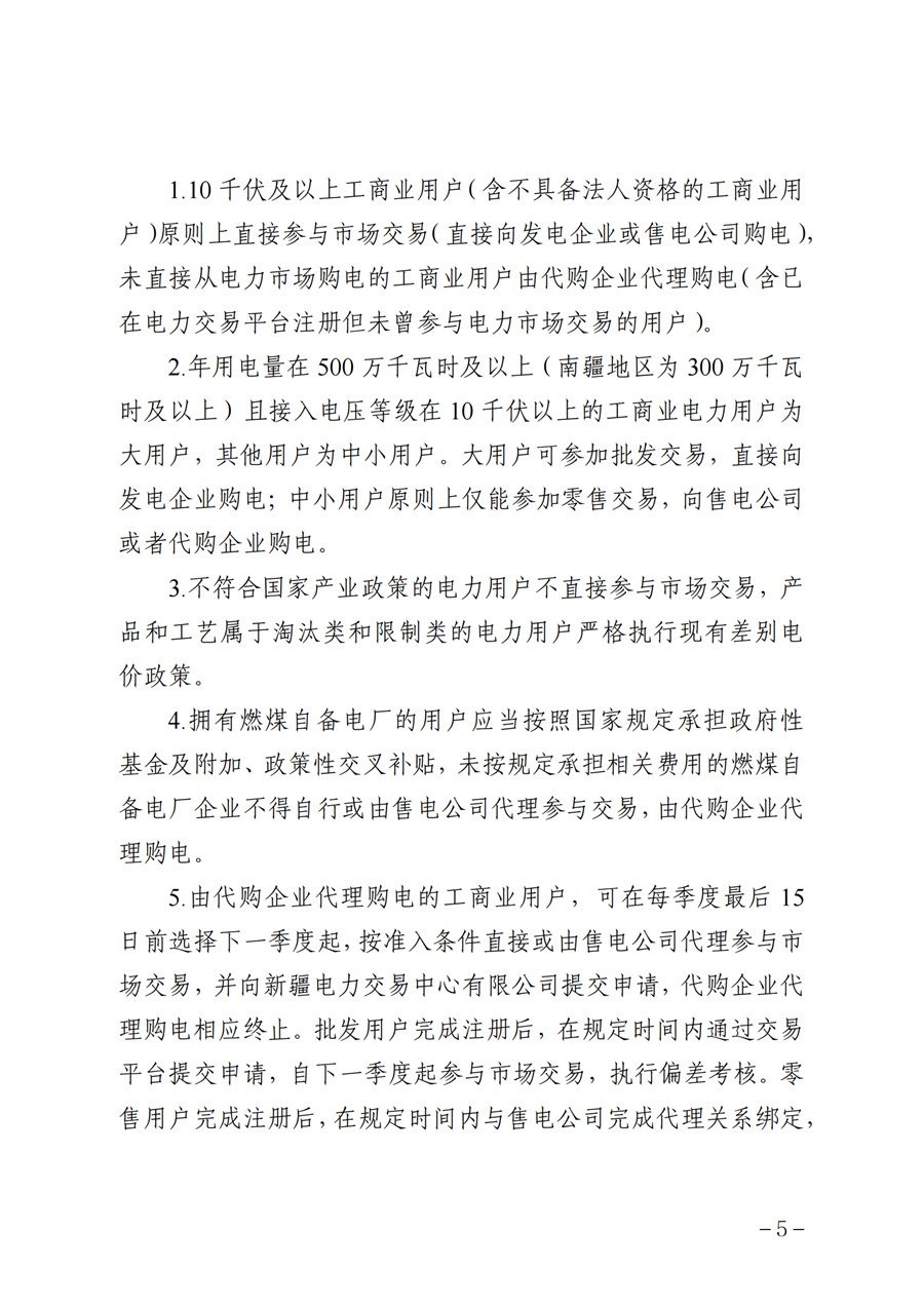 關于印發《新疆維吾爾自治區2023年電力市場化交易實施方案》的通知,通知指出,集中式扶貧光伏、特許權新能源、示范試驗類新能源等實行全額保障性收購,暫不參與新疆電力市場交易。 發電企業各時段最大申報電量=交易單元對應的裝機容量×(交易周期內自然月各時段對應的小時數)·K-該月各時段已成交合同-各時段申報成功但未出清電量,其中光伏發電企業僅在7:00-22:00之間折算各時段對應的小時數,火電企業K值取92%,新能源K值取80%。 原文如下: 關于印發《新疆維吾爾自治區2023年電力市場化交易實施方案》的通知 各地、州、市發展改革委,國網新疆電力有限公司,新疆電力交易中心有限公司,各有關企業: 根據《電力中長期交易基本規則》等國家有關文件要求,結合我區實際,我委編制了《新疆維吾爾自治區2023年電力市場化交易實施方案》。現印發給你們,請認真貫徹執行。 自治區發展改革委 2023年1月4日