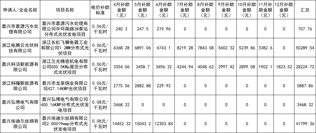 3月10日,嘉(jia)(jia)興市發(fa)展和改革委員(yuan)會(hui)發(fa)布關于2023年第一批嘉(jia)(jia)興市本級分(fen)布式光(guang)伏(fu)發(fa)電應用項目電價補(bu)助資(zi)金(jin)的公示,公示顯示,本次補(bu)助資(zi)金(jin)共計363441.02元。 原文如下: 根據《關于進(jin)一步實施嘉興(xing)市(shi)本級分布式光(guang)伏(fu)電量補(bu)貼政策的通(tong)知》(嘉光(guang)伏(fu)辦(ban)〔2018〕1號)精(jing)神,我委(wei)擬對符合(he)補(bu)貼政策的市(shi)本級工商業屋頂(ding)光(guang)伏(fu)發電項目發放2022年(nian)4月(yue)-2022年(nian)12月(yue)期(qi)間的電量補(bu)助(zhu)資金(jin),本次補(bu)助(zhu)資金(jin)共計(ji)363441.02元。現(xian)對補(bu)助(zhu)對象(xiang)和資金(jin)明細進(jin)行公示(詳見附件)。 公(gong)示期為2023年(nian)3月(yue)10日至(zhi)2022年(nian)3月(yue)16日。公(gong)示期內如(ru)有異議(yi)請書面向我(wo)們提出意見。 聯系方式(shi):市發展改革委能源處張江平82521430 附件:2023年(nian)第一批(pi)嘉興市本級分布式光(guang)伏發電應用項目電價(jia)補(bu)助資(zi)金明細 嘉興市發展和改革委員會 2023年3月10日