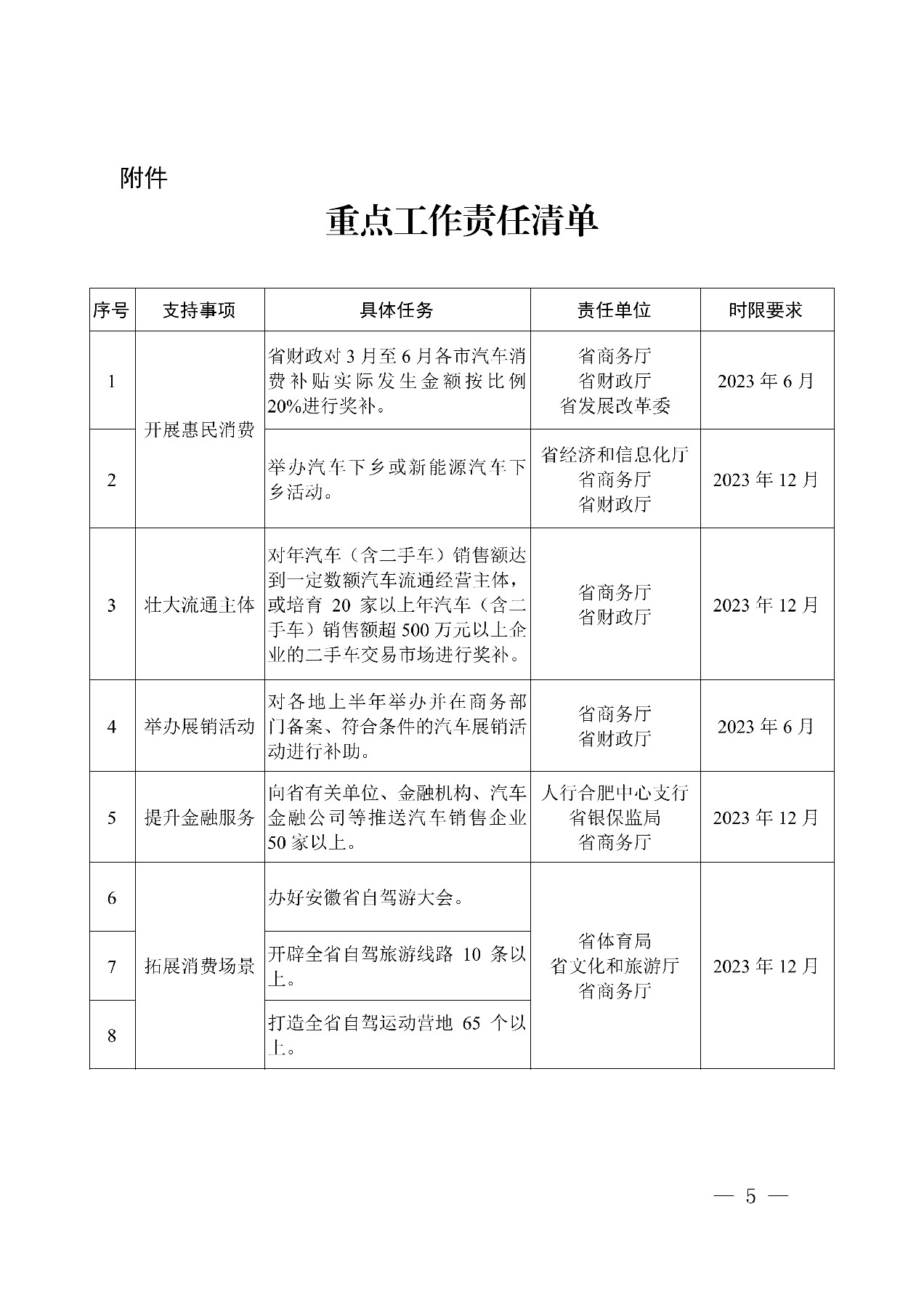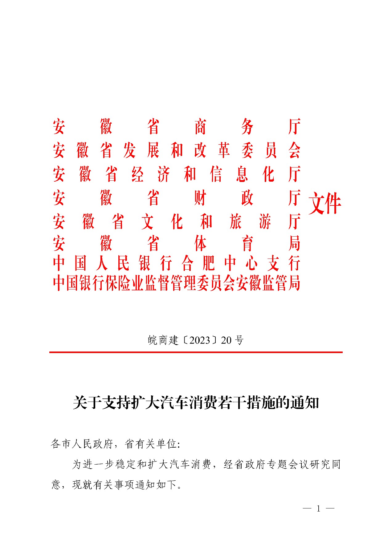安徽支持擴大汽車消費 購置新能源汽車給予消費補貼!3月27日,安徽(hui)省商(shang)務廳等八部門聯合發布《關于支持擴(kuo)大汽車消費(fei)若干(gan)措施的通知》。 通知中(zhong)提到,支(zhi)持(chi)各地對購買非營運性質(zhi)國六(liu)標(biao)準以上新(xin)車或新(xin)能源(yuan)汽車的(de)個人消費(fei)者給(gei)予消費(fei)補(bu)貼,省(sheng)財(cai)政對3月(yue)至6月(yue)各地(di)財(cai)政消費(fei)補(bu)貼實際(ji)發放金額(e)按20%比(bi)例進行(xing)獎補(bu)。明確鼓勵各地(di)聯動省(sheng)內外(wai)汽(qi)車生(sheng)產企業(ye)(ye)或汽(qi)車銷(xiao)售(shou)企業(ye)(ye)組織開展汽(qi)車下鄉(xiang)或新(xin)能(neng)源(yuan)汽(qi)車下鄉(xiang)活動。 原文如下: