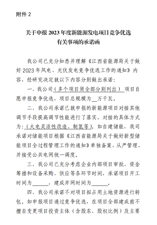 江西2023年風光申報:優先支持同步建設氫能等新能源項目4月13日,江(jiang)西省能源(yuan)局發布關于做好(hao)2023年(nian)風電、光(guang)(guang)伏發電競爭優選(xuan)工(gong)作的通知。其中提(ti)到,2023年(nian)首批風電、光(guang)(guang)伏發電競爭優選(xuan)工(gong)作優先支(zhi)持同步建設(she)氫能等(deng)新技術示范的新能源(yuan)項(xiang)目(mu)。 原文如下: 江西省能源局關于做好2023年風電、光伏發電競爭優選工作的通知 各設區市發展改(gai)革(ge)委(wei)(能源局(ju)),贛(gan)江新區管委(wei)會,國網江西(xi)省電力有(you)限公司,各有(you)關單位: 為積極貫徹落實“碳(tan)(tan)達峰、碳(tan)(tan)中和(he)”目標,確保完成國家下(xia)達我省(sheng)可再生能源(yuan)消納責任(ren)權重考核任(ren)務,持續推進我省(sheng)風(feng)電、光(guang)伏發(fa)電行(xing)業發(fa)展,根(gen)據國家有(you)關政策(ce)精神,現就(jiu)做好(hao)2023年(nian)風(feng)電、光(guang)伏發(fa)電競爭優選工作(zuo)有(you)關事(shi)項通知如下(xia): 一、落實(shi)國(guo)(guo)家(jia)(jia)要求,壓實(shi)風(feng)電(dian)(dian)光伏發(fa)(fa)(fa)展(zhan)任(ren)務(wu)。為(wei)深入(ru)貫(guan)徹習近(jin)平總(zong)書記關于推動能(neng)(neng)源(yuan)生(sheng)產和(he)消(xiao)(xiao)(xiao)費革命的(de)(de)重要論述(shu),加快構建清潔低碳(tan)、安全高效的(de)(de)能(neng)(neng)源(yuan)體系,促進可再(zai)生(sheng)能(neng)(neng)源(yuan)開(kai)發(fa)(fa)(fa)利用(yong)(yong),國(guo)(guo)家(jia)(jia)發(fa)(fa)(fa)展(zhan)改革委、國(guo)(guo)家(jia)(jia)能(neng)(neng)源(yuan)局已建立可再(zai)生(sheng)能(neng)(neng)源(yuan)電(dian)(dian)力(li)消(xiao)(xiao)(xiao)納保(bao)(bao)障機制。根據《國(guo)(guo)家(jia)(jia)發(fa)(fa)(fa)展(zhan)改革委、國(guo)(guo)家(jia)(jia)能(neng)(neng)源(yuan)局關于建立健全可再(zai)生(sheng)能(neng)(neng)源(yuan)電(dian)(dian)力(li)消(xiao)(xiao)(xiao)納保(bao)(bao)障機制的(de)(de)通知》(發(fa)(fa)(fa)改能(neng)(neng)源(yuan)〔2019〕807號),省(sheng)級能(neng)(neng)源(yuan)主管部門(men)牽頭(tou)承擔消(xiao)(xiao)(xiao)納責(ze)任(ren)權重落實(shi)責(ze)任(ren),省(sheng)級電(dian)(dian)網(wang)企業(ye)承擔經營區消(xiao)(xiao)(xiao)納責(ze)任(ren)權重實(shi)施的(de)(de)組織責(ze)任(ren)。為(wei)落實(shi)國(guo)(guo)家(jia)(jia)可再(zai)生(sheng)能(neng)(neng)源(yuan)消(xiao)(xiao)(xiao)納責(ze)任(ren)權重目(mu)(mu)標,我省(sheng)“碳(tan)達峰、碳(tan)中和(he)”相(xiang)關文件和(he)《江西(xi)省(sheng)“十(shi)四五(wu)”新(xin)能(neng)(neng)源(yuan)發(fa)(fa)(fa)展(zhan)規劃》中已分解各(ge)地(di)(di)(di)可再(zai)生(sheng)能(neng)(neng)源(yuan)發(fa)(fa)(fa)展(zhan)目(mu)(mu)標任(ren)務(wu)(見附表1)。請各(ge)地(di)(di)(di)高度(du)重視,采取(qu)有力(li)措施抓好實(shi)施。各(ge)市(縣、區)要嚴格落實(shi)國(guo)(guo)家(jia)(jia)明確的(de)(de)支(zhi)持新(xin)能(neng)(neng)源(yuan)發(fa)(fa)(fa)展(zhan)有關政策(ce)要求,不得將強制配套(tao)產業(ye)或投(tou)資、違(wei)規收取(qu)項目(mu)(mu)保(bao)(bao)證金等作為(wei)項目(mu)(mu)開(kai)發(fa)(fa)(fa)建設(she)的(de)(de)門(men)檻。各(ge)地(di)(di)(di)申報文件中應分析本地(di)(di)(di)目(mu)(mu)標完成(cheng)情(qing)況,在確保(bao)(bao)項目(mu)(mu)具備用(yong)(yong)地(di)(di)(di)、電(dian)(dian)網(wang)接(jie)入(ru)條件的(de)(de)前提下,保(bao)(bao)障充分落實(shi)當(dang)地(di)(di)(di)目(mu)(mu)標任(ren)務(wu)要求。 二、引導有(you)序投資(zi),厘清全省(sheng)電(dian)(dian)(dian)網(wang)(wang)消(xiao)納(na)(na)空間底數。請國網(wang)(wang)江(jiang)西省(sheng)電(dian)(dian)(dian)力有(you)限公司結(jie)合(he)《江(jiang)西省(sheng)能(neng)源(yuan)(yuan)(yuan)局(ju)關于(yu)開展存量風電(dian)(dian)(dian)、光伏項(xiang)目(mu)(mu)排查清理工作(zuo)(zuo)的通知(贛能(neng)新能(neng)字〔2023〕6號)》按期提供項(xiang)目(mu)(mu)實(shi)際(ji)并(bing)網(wang)(wang)情況(kuang),收回的電(dian)(dian)(dian)網(wang)(wang)接(jie)入(ru)和(he)(he)消(xiao)納(na)(na)資(zi)源(yuan)(yuan)(yuan),省(sheng)能(neng)源(yuan)(yuan)(yuan)局(ju)將結(jie)合(he)項(xiang)目(mu)(mu)實(shi)際(ji)在(zai)本(ben)輪優(you)選工作(zuo)(zuo)中予(yu)以統籌考慮。結(jie)合(he)各地(di)負荷增長情況(kuang)開展并(bing)網(wang)(wang)消(xiao)納(na)(na)情況(kuang)及預測分析工作(zuo)(zuo),并(bing)測算各縣(市、區(qu)(qu))風電(dian)(dian)(dian)、光伏發電(dian)(dian)(dian)項(xiang)目(mu)(mu)可接(jie)網(wang)(wang)消(xiao)納(na)(na)容量,引導企(qi)業(ye)有(you)序投資(zi)和(he)(he)申報建(jian)設計劃。對可再生能(neng)源(yuan)(yuan)(yuan)發展目(mu)(mu)標任(ren)務未(wei)能(neng)完(wan)(wan)成、消(xiao)納(na)(na)又存在(zai)困難(nan)的地(di)區(qu)(qu),電(dian)(dian)(dian)網(wang)(wang)企(qi)業(ye)應(ying)提出相(xiang)應(ying)解決方(fang)案(an),通過優(you)化布局(ju),加(jia)強(qiang)電(dian)(dian)(dian)網(wang)(wang)投資(zi)、優(you)化接(jie)入(ru)方(fang)式等措施(shi)支持地(di)方(fang)完(wan)(wan)成任(ren)務。對確實(shi)無(wu)法消(xiao)納(na)(na)的,電(dian)(dian)(dian)網(wang)(wang)企(qi)業(ye)應(ying)提出對應(ying)解決方(fang)案(an)或相(xiang)關工作(zuo)(zuo)建(jian)議,并(bing)研究提出在(zai)全省(sheng)消(xiao)納(na)(na)資(zi)源(yuan)(yuan)(yuan)相(xiang)對寬裕地(di)區(qu)(qu)可行替代方(fang)案(an)。 三、拓展綠(lv)色通(tong)道,支持屋頂(ding)(ding)(ding)光伏發(fa)(fa)電(dian)項目(mu)建設。在前期(qi)探索的(de)基礎上,將(jiang)《江西