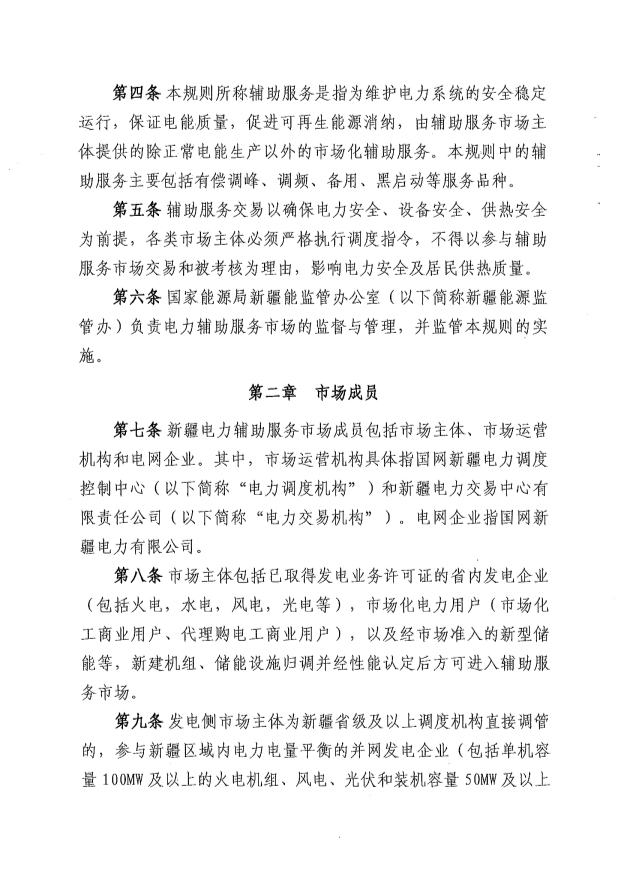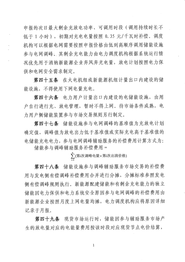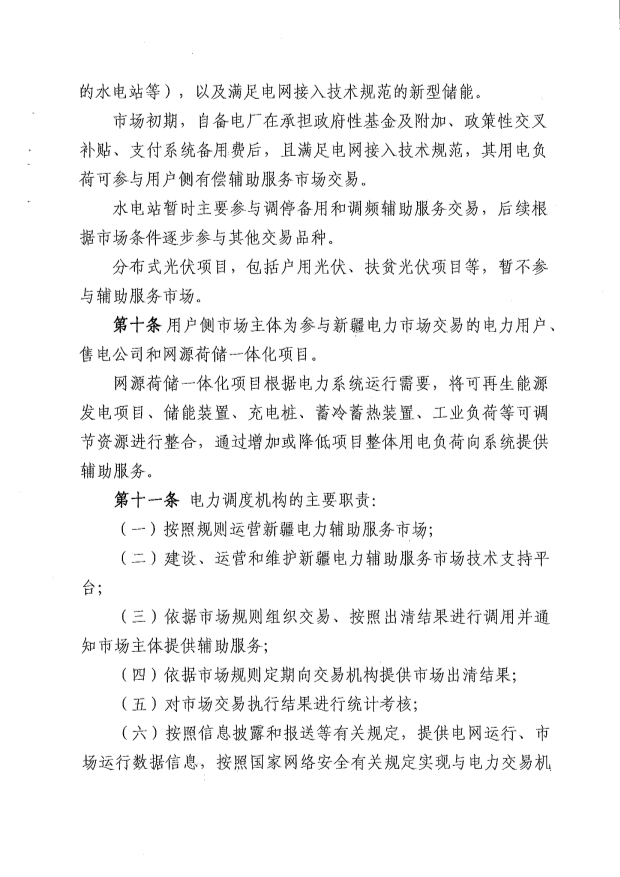 4月28日(ri),新疆(jiang)能監辦印發(fa)關于對(dui)《新疆(jiang)電力輔助服(fu)務(wu)市場運營規則(ze)(征(zheng)求(qiu)意(yi)見稿》征(zheng)求(qiu)意(yi)見的通知。 獨立(li)儲(chu)能提供深度調峰輔助服務(wu),競價上限0.55元/kWh,調用時(shi)長不(bu)低于1小時(shi)。 因電力保供、電網安全等(deng)原因經(jing)電力調(diao)度機構調(diao)度參與調(diao)峰(feng)的(de)獨立儲能、配建儲能,初期(qi)補償標準0.35元/kWh,調(diao)用時長不低于(yu)1小時。 用戶側靈活性資源,提供調(diao)峰輔助服務(wu),調(diao)峰能力不(bu)低(di)于10MW,調(diao)峰時長不(bu)低(di)于1小(xiao)時。 獨(du)立儲能提供調(diao)頻輔助服務,裝機容量不(bu)低于(yu)10MW。里程(cheng)申報價格(ge)為0-15元/MW。容量補償(chang)價格(ge)市場初(chu)期5元/MW。 詳情如下: 關于對(dui)《新疆電力(li)輔(fu)助服務市場運營(ying)規(gui)則(征求意見稿》征求意見的(de)通知(zhi) 國網新疆(jiang)電(dian)力(li)有限(xian)(xian)公(gong)司(si)、新疆(jiang)生產建設兵團電(dian)力(li)集團有限(xian)(xian)責任公(gong)司(si)、新疆(jiang)電(dian)力(li)交(jiao)易中心(xin)有限(xian)(xian)公(gong)司(si)、各(ge)發電(dian)企業、各(ge)電(dian)力(li)用戶、各(ge)電(dian)力(li)市場主體單位(wei): 為(wei)進一步深化新疆(jiang)電(dian)力(li)輔(fu)助服(fu)(fu)務市(shi)(shi)場(chang)機制建設,通過市(shi)(shi)場(chang)化手段發掘電(dian)力(li)系統(tong)調節能(neng)力(li),著力(li)提升電(dian)力(li)系統(tong)安全穩定運行(xing)水平,國家能(neng)源(yuan)局新疆(jiang)監管辦公室對《新疆(jiang)電(dian)力(li)輔(fu)助服(fu)(fu)務市(shi)(shi)場(chang)運營規則(ze)》進行(xing)了修訂,形成《新疆(jiang)電(dian)力(li)輔(fu)助服(fu)(fu)務市(shi)(shi)場(chang)運營規則(ze)(征求(qiu)意見稿)》現印(yin)發給你(ni)們。請各單(dan)位結合工(gong)作(zuo)實際(ji)提出意見和建議,并于2023年6月1日(ri)前書面反饋我辦,逾期(qi)未反饋視為(wei)無意見。 國家能源局新疆監管辦公室 2023年4月27日