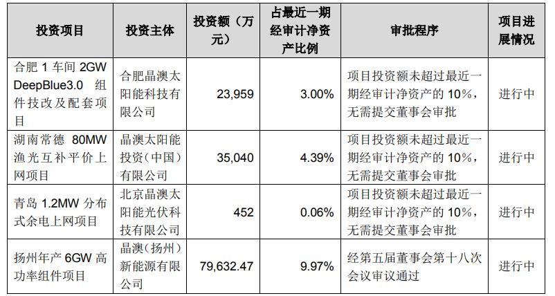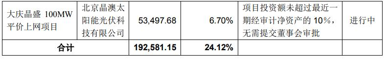 2月28日晚,晶澳科技發布公告稱,根據戰略發展需要,同意公司下屬子公司包頭晶澳太陽能科技有限公司(以下簡稱“包頭晶澳”)于包頭裝備制造產業園區內建設年產20GW拉晶、20GW 切片項目,項目投資總額50.24億元。 根據公告,包頭三期20GW拉晶、20GW切片項目位于包頭裝備制造產業園區,項目建設拉晶車間、線切車間及倉儲動力等配套設施,購置單晶爐、線切機等生產及配套設備,形成年產20GW拉晶及切片生產能力,總投資502,410.86萬元,建設周期預計2年。 截至2020年9月30日,包頭晶澳總資產175,077.10萬元,總負債 107,707.77 萬元,凈資產67,369.33萬元;2020年 1-9 月份實現營業收入106,546.15萬元,凈利潤 12,873.87萬元。 此外,公告顯示,晶澳科技近期累計已經發生的且尚未達到股東會審議標準的對外投資事項如下: 晶澳科技稱,上述項目的投資建設符合公司未來產能規劃的戰略需要,有利于進一步擴大公司大尺寸硅片生產能力,提升公司垂直一體化產能優勢,更好地滿足全球客戶 對高效優質光伏產品的需求。