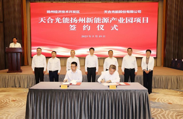 5月(yue)19日上午(wu),天合光能(neng)揚州新(xin)能(neng)源(yuan)產業園項(xiang)目在(zai)揚正式簽約。 簽約(yue)儀(yi)式前,王進健會(hui)見(jian)了高紀凡一行,就加快推進項目建設、全(quan)面深化合(he)(he)作(zuo)、實現共(gong)贏(ying)發展進行了深入交流。天合(he)(he)光能揚州新(xin)能源產業園位于揚州經開區(qu)樸席鎮,規劃(hua)總建筑面積約(yue)32萬平方米,一期項目擬計劃(hua)投資新(xin)建年產10GW高效光(guang)伏(fu)電(dian)池和(he)10GW大功率組(zu)件項(xiang)目。 在致辭中(zhong),王進健(jian)代表(biao)市委、市政府(fu)向項目(mu)簽約表(biao)示熱烈祝賀。他說,近年來揚(yang)州(zhou)始終(zhong)以(yi)(yi)新發(fa)展(zhan)理念引(yin)(yin)領高(gao)質(zhi)量發(fa)展(zhan),把實體經(jing)濟作(zuo)為(wei)(wei)立身之本、科技創新作(zuo)為(wei)(wei)第(di)一動(dong)能,著(zhu)力(li)打造具(ju)有揚(yang)州(zhou)特(te)(te)色(se)的(de)“323+1”先進制造業(ye)(ye)集群(qun),全力(li)推動(dong)產業(ye)(ye)科創名(ming)城建設。特(te)(te)別是(shi)圍繞(rao)新能源產業(ye)(ye),揚(yang)州(zhou)以(yi)(yi)揚(yang)州(zhou)經(jing)濟技術(shu)開發(fa)區為(wei)(wei)中(zhong)心,強化與國內外行業(ye)(ye)龍頭企(qi)業(ye)(ye)合作(zuo),先后引(yin)(yin)進落地(di)了一批(pi)重特(te)(te)大項目(mu),成為(wei)(wei)全市經(jing)濟發(fa)展(zhan)的(de)重要引(yin)(yin)擎。 當前光(guang)伏、風電(dian)、動力電(dian)池等新能(neng)(neng)(neng)(neng)源產(chan)(chan)業(ye)(ye)方(fang)興未(wei)艾,發展(zhan)前景極為廣闊。天(tian)合光(guang)能(neng)(neng)(neng)(neng)是全(quan)球領先的(de)(de)光(guang)伏智慧能(neng)(neng)(neng)(neng)源整體解決方(fang)案提供商,此次項目正(zheng)式簽約,將(jiang)為揚(yang)(yang)州(zhou)(zhou)經開區做(zuo)大做(zuo)強(qiang)新能(neng)(neng)(neng)(neng)源產(chan)(chan)業(ye)(ye)集(ji)群、打造(zao)國家級新能(neng)(neng)(neng)(neng)源產(chan)(chan)業(ye)(ye)基地(di)奠定更(geng)加(jia)堅實的(de)(de)基礎(chu),也為我(wo)市產(chan)(chan)業(ye)(ye)科(ke)創名(ming)城建設注入(ru)源源動力。揚(yang)(yang)州(zhou)(zhou)將(jiang)始終秉承“好(hao)(hao)(hao)地(di)方(fang)、事好(hao)(hao)(hao)辦”的(de)(de)服務理(li)念,持(chi)續優化全(quan)天(tian)候(hou)、全(quan)流(liu)程、全(quan)方(fang)位的(de)(de)營商服務,共同推動項目早開工、早投產(chan)(chan)、早達效,也期待通過天(tian)合光(guang)能(neng)(neng)(neng)(neng)的(de)(de)牽線(xian)搭橋(qiao),吸引更(geng)多新能(neng)(neng)(neng)(neng)源產(chan)(chan)業(ye)(ye)重(zhong)特大項目、上下游企業(ye)(ye)來揚(yang)(yang)州(zhou)(zhou)落(luo)地(di)生根、發展(zhan)壯大,攜手開創“好(hao)(hao)(hao)地(di)方(fang)”揚(yang)(yang)州(zhou)(zhou)更(geng)加(jia)美好(hao)(hao)(hao)的(de)(de)明天(tian)。 天合光能(neng)(neng)股(gu)份有限公司董事長(chang)高紀凡在(zai)(zai)致辭中感謝揚(yang)州(zhou)(zhou)(zhou)對天合光能(neng)(neng)在(zai)(zai)揚(yang)發展(zhan)(zhan)給予的(de)支持。他(ta)說,天合光能(neng)(neng)致力于成(cheng)為全球(qiu)光伏智慧(hui)能(neng)(neng)源(yuan)解決方案的(de)領導者,十分重視與揚(yang)州(zhou)(zhou)(zhou)的(de)合作,對揚(yang)州(zhou)(zhou)(zhou)的(de)區位優勢、人才資(zi)源(yuan)、產業(ye)(ye)鏈配套、營商環境(jing)等高度認可。此次在(zai)(zai)揚(yang)州(zhou)(zhou)(zhou)投資(zi)建(jian)(jian)設新(xin)能(neng)(neng)源(yuan)產業(ye)(ye)園(yuan),必(bi)將(jiang)(jiang)助力揚(yang)州(zhou)(zhou)(zhou)搶占新(xin)賽道、完善產業(ye)(ye)鏈、構筑(zhu)生態圈,加(jia)快(kuai)培育高質量發展(zhan)(zhan)新(xin)增長(chang)極。天合光能(neng)(neng)將(jiang)(jiang)高質高效推進項目建(jian)(jian)設,力爭項目早(zao)投產快(kuai)達效,為揚(yang)州(zhou)(zhou)(zhou)經濟社會(hui)高質量發展(zhan)(zhan)作出貢獻。