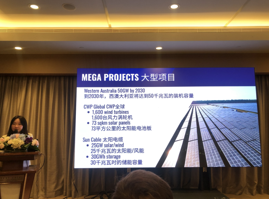 澳大利(li)亞智慧能源理事會(SEC)全球銷售經理 方媛(yuan) 5月25日,邊會:全球市場展望與發展趨勢在上海舉辦。澳大利亞智慧能源理事會(SEC)全球銷售經理方媛對澳大利亞市場概況發表報告。 方(fang)媛(yuan)介紹到,澳大利亞太陽(yang)能市場2022年6GW,累計30GW。安裝成(cheng)本每瓦0.73美元(yuan)(人民幣5.08元(yuan)),4年回(hui)收成(cheng)本每人1.2千瓦。 2022年新增裝機容量為32000個儲能(neng)(neng)(neng)(neng)系(xi)統。到(dao)2030年,43%的減(jian)排目標已成(cheng)為澳(ao)方政(zheng)府的法律規定。到(dao)2030年,可(ke)再生能(neng)(neng)(neng)(neng)源占比(bi)將達到(dao)82%,200億澳(ao)元用(yong)于(yu)輸電。聯(lian)邦(bang)預算16億澳(ao)元用(yong)于(yu)可(ke)再生能(neng)(neng)(neng)(neng)源和能(neng)(neng)(neng)(neng)源效率(lv),澳(ao)大(da)利亞(ya)將擁有3500臺1兆瓦風力渦輪機,6000萬500W 太陽(yang)能(neng)(neng)(neng)(neng)電池板。 澳大(da)(da)利亞有望成為可再生能(neng)(neng)源超級大(da)(da)國。日(ri)前(qian),澳方申請了(le)20億(yi)美元的(de)可再生氫基金。澳方發展了(le)眾(zhong)多大(da)(da)型(xing)項(xiang)(xiang)(xiang)目(mu)(mu),到2030年,西(xi)澳大(da)(da)利亞將(jiang)達至50千(qian)米瓦的(de)裝(zhuang)機容量。目(mu)(mu)前(qian)正在實行的(de)CWP全球項(xiang)(xiang)(xiang)目(mu)(mu)正在安(an)裝(zhuang)1600臺風(feng)力(li)渦(wo)輪機和(he)73平方公里的(de)太陽能(neng)(neng)電(dian)(dian)池板(ban)。另一(yi)個太陽電(dian)(dian)纜項(xiang)(xiang)(xiang)目(mu)(mu)也在安(an)裝(zhuang)25千(qian)兆瓦的(de)太陽能(neng)(neng)、風(feng)能(neng)(neng)和(he)30千(qian)兆瓦時的(de)儲能(neng)(neng)容量項(xiang)(xiang)(xiang)目(mu)(mu)。 方(fang)媛表示,2024年(nian)3月(yue)6日,SEC將在悉尼舉(ju)辦第62屆智慧能源展會暨論壇,歡迎大家(jia)參與。