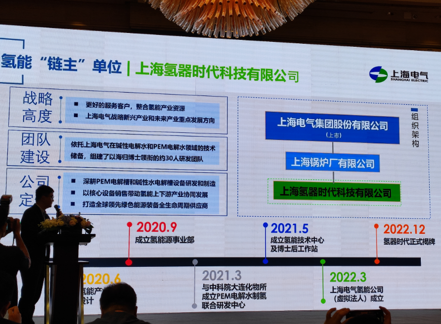 上海電氣集團-氫器時代 吳亮 “可再生能源制綠氫及系統解決方案” 上海電(dian)器集(ji)團以清潔(jie)能(neng)(neng)源發電(dian)裝(zhuang)(zhuang)備為基礎,圍繞氫(qing)能(neng)(neng)“制(zhi),儲、加、用”全產(chan)業鏈(lian),重點布局先進(jin)的電(dian)解水制(zhi)氫(qing)、儲甸、氫(qing)氣壓縮、氫(qing)以松料電(dian)池、氫(qing)然機/鍋爐、綠色氫(qing)化工、氫(qing)能(neng)(neng)裝(zhuang)(zhuang)備材料檢測等核(he)心技術及產(chan)品(pin)裝(zhuang)(zhuang)備,打造氫(qing)能(neng)(neng)全產(chan)業鏈(lian)關鍵裝(zhuang)(zhuang)備供應的核(he)心競爭力。 氫器時(shi)代依靠100-2000Nm3/h堿性(xing)電(dian)解槽(cao)“N拖(tuo)一”制氫系(xi)列和5-200Nm3/h PEM電(dian)解槽(cao)解槽(cao)“N拖(tuo)一”制氫系(xi)統,實現高(gao)電(dian)密、高(gao)可(ke)靠、低能耗制氫。核(he)心儲氫設備(bei)包括20/45/90MPa固定(ding)式(shi)儲氫罐、35/70MPa移動式(shi)高(gao)壓氫氣儲罐、20/45/90MPa等級隔(ge)膜壓縮機產品。 目(mu)(mu)前上海電氣已在奉賢設立聯(lian)合示范基地制儲(chu)加氫(qing)一(yi)體站項(xiang)目(mu)(mu),規(gui)模達6000kg/d,是(shi)氫(qing)能交(jiao)通(tong)示范城市(shi)群(qun)重要氫(qing)源支撐。項(xiang)目(mu)(mu)供貨設備有(you)1500Nm/h堿性(xing)電解槽、1.6~90MPa儲(chu)氫(qing)罐(guan)、45/90MPa隔膜壓縮機。目(mu)(mu)前項(xiang)目(mu)(mu)核心設備已完成制造,預計6月份投產。