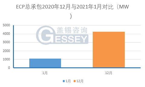 綜(zong)上所述(shu),2021年(nian)1月(yue)EPC總承(cheng)包中(zhong)標(biao)量環比2020年(nian)12月(yue)份下降74%。EPC總承(cheng)包中(zhong)標(biao)量較大的(de)公(gong)司(si)為中(zhong)能建(jian)。組(zu)件采購(gou)中(zhong)標(biao)量較大的(de)公(gong)司(si)為隆基。
