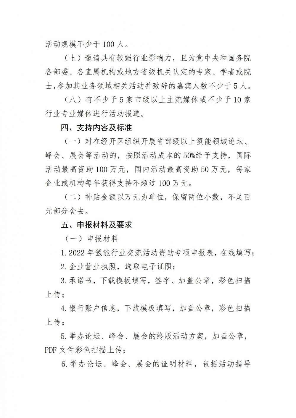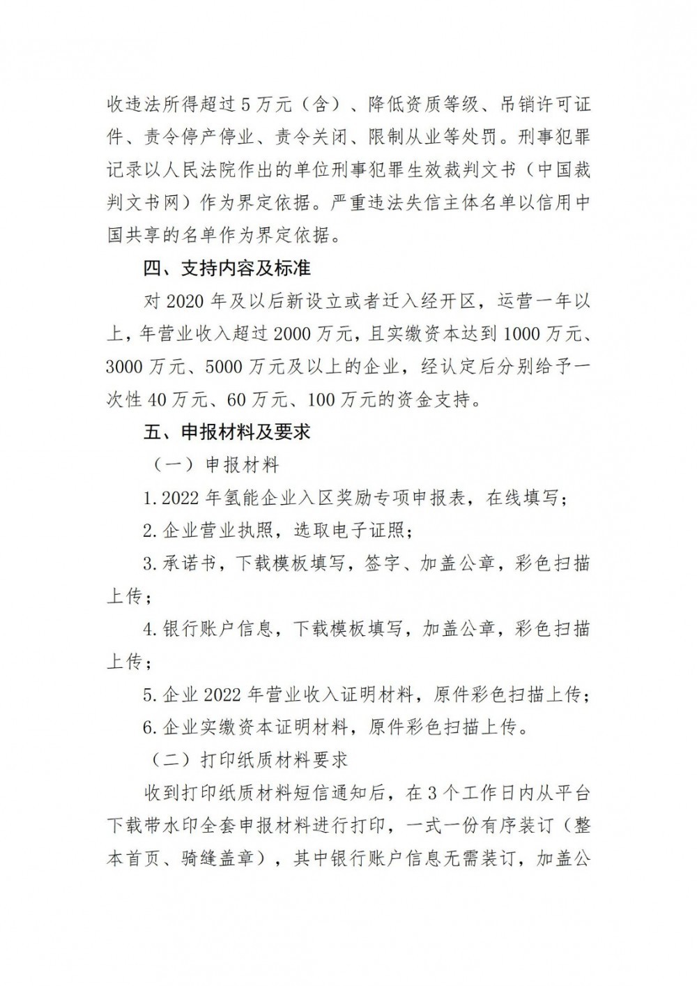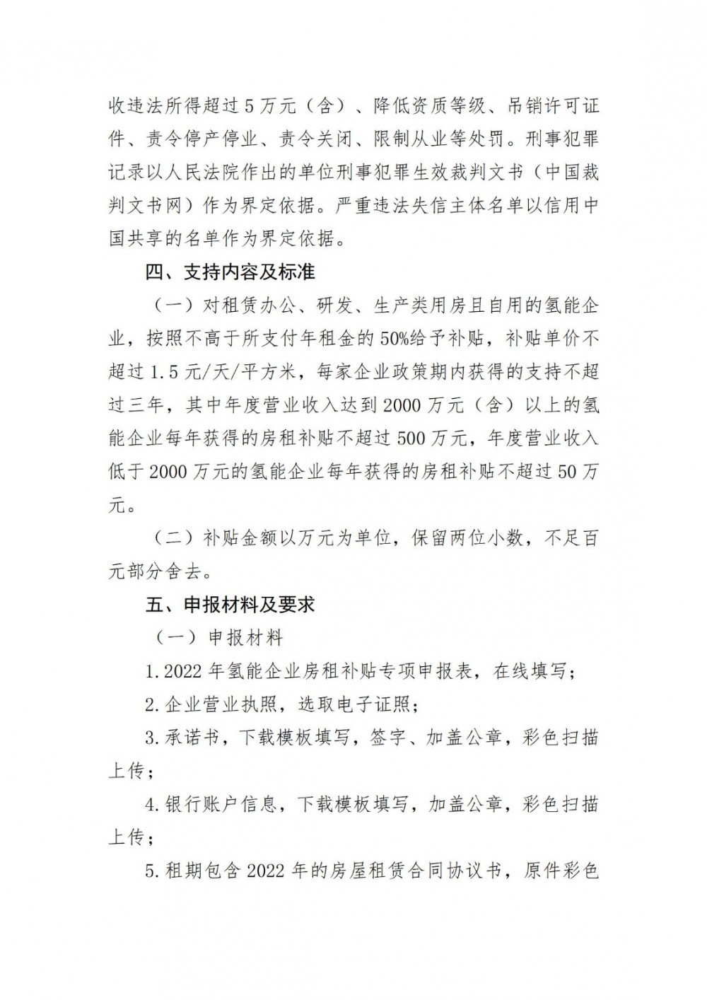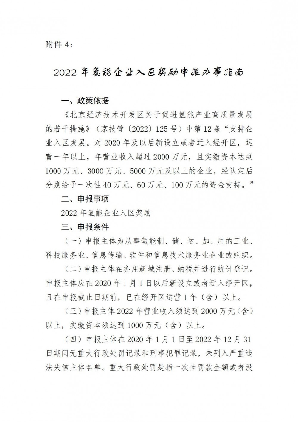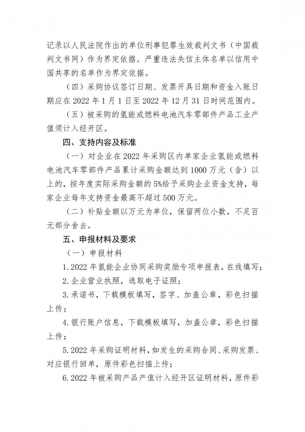 6月2日(ri),北(bei)京經濟技術開(kai)(kai)發區(qu)發布《關(guan)于開(kai)(kai)展2022年(nian)氫能產業政(zheng)策相關(guan)事項(xiang)(xiang)申報的通知(zhi)》。其中指出:對企業在京津冀燃料(liao)電池汽車(che)(che)示范城市群示范期內購買燃料(liao)電池汽車(che)(che)且(qie)納入北(bei)京市燃料(liao)電池汽車(che)(che)示范應用項(xiang)(xiang)目(mu)的,在示范期第(di)一年(nian)度至(zhi)第(di)四年(nian)度,分別按照國家獎勵(li)資(zi)金的40%、30%、20%、10%給予(yu)資(zi)金支持。 原文如下: 關于開展2022年氫能產業政策相關事項申報的通知 各相關企業: 為貫徹落實《北京經濟技術開(kai)發(fa)區關于(yu)促進氫能產業高(gao)質量發(fa)展的若干措施(shi)》(京技管(guan)〔2022〕125號)的工作要求,現開(kai)展2022年(nian)氫能產業政策相(xiang)關事項申報工作,通知如(ru)下: 一、申報時間 自2023年6月(yue)6日(ri)至2023年6月(yue)19日(ri)期間(jian)通過(guo)經開(kai)區官網政(zheng)策兌現模塊進(jin)入政(zheng)策兌現綜合服務平臺(tai),或使用360瀏覽器的(de)(de)極速(su)模式登錄(lu)網址:zcdx.kfqgw.beijing.gov.cn,注冊登錄(lu)后進(jin)行項目申(shen)報。如未(wei)在(zai)規定時間(jian)內提交申(shen)請的(de)(de),視為自動放棄。 二、申報詳情 詳(xiang)見附(fu)件(jian)中《辦事(shi)指南(nan)》或政(zheng)策(ce)兌(dui)現綜合服務平(ping)臺“項目(mu)申(shen)報(bao)”頁面。 三、聯系方式 政策咨詢: 經開區政務(wu)服務(wu)中心行政服務(wu)廳(ting)“政策(ce)申(shen)報”窗口,聯系電話:010-67857687;010-67857878轉4,工(gong)作(zuo)日上午(wu)9:00—12:00,下午(wu)1:30—5:00。 經(jing)開區營商合作(zuo)局,聯系電話:010-67889117,工作(zuo)日上午(wu)9:00—12:00,下午(wu)2:00—6:00。 技術支持: 聯系電(dian)話(hua):010-67857638,工作日上午(wu)9:00—12:00,下午(wu)2:00—6:00。 附件:1.2022年氫能行業交流活動資助申報辦事指南 2.2022年氫能企業房租補貼申報辦事指南 3.2022年氫能企業協同采購獎勵申報辦事指南 4.2022年氫能企業入區獎勵申報辦事指南 5.2022年燃料電池汽車示范應用獎勵申報辦事指南 6.2022年燃料電池關鍵零部件應用獎勵申報辦事指南 7.2022年交通領域氫能應用獎勵申報辦事指南 經開區營商合作局 2023年6月2日