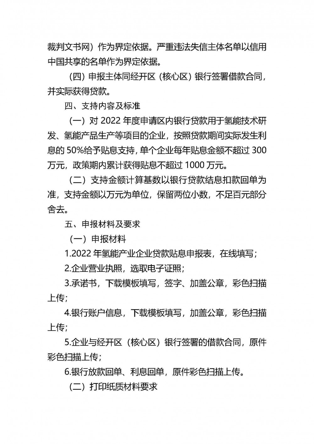 6月(yue)14日,為(wei)貫徹落實《北(bei)京經濟技(ji)術開發區關于促進氫能(neng)產業高(gao)質量發展的若干措(cuo)施》(京技(ji)管〔2022〕125號)的工作要求,現開展2022年氫能(neng)產業企業貸款貼息申報(bao)工作。 具體內容如下: 一、申報時間 自(zi)2023年(nian)6月15日(ri)(ri)至2023年(nian)6月28日(ri)(ri)期間通過經開區官網政(zheng)策兌現(xian)模塊進(jin)入(ru)政(zheng)策兌現(xian)綜合服務平臺,或(huo)使用360瀏覽器的(de)極速模式登錄網址:zcdx.kfqgw.beijing.gov.cn,注(zhu)冊登錄后進(jin)行項目申(shen)報(bao)。如(ru)未在規定時間內提交(jiao)申(shen)請的(de),視為(wei)自(zi)動放棄。 二、申報詳情 詳見附件《2022年氫能產業(ye)企業(ye)貸款貼息申(shen)報(bao)(bao)指南(nan)》或政策兌(dui)現綜(zong)合服務平臺(tai)“項目(mu)申(shen)報(bao)(bao)”頁(ye)面。 三、聯系方式 政策咨詢: 經(jing)開區政務(wu)服務(wu)中心服務(wu)廳“政策申報(bao)”窗(chuang)口,聯系電話:010-67857687;010-67857878轉4,工作日上午9:00—12:00,下午1:30—5:00。 經(jing)開區商務金(jin)融局(ju),聯(lian)(lian)系電話:010-67886597;經(jing)開區營商合作局(ju),聯(lian)(lian)系電話:010-67889117,工(gong)作日上午(wu)9:00—12:00,下午(wu)2:00—6:00。 技術支持: 聯系電(dian)話:010-67857638,工作(zuo)日上午(wu)9:00—12:00,下午(wu)2:00—6:00。 上一篇: 寧夏:將著力打造“中國氨氫谷”!