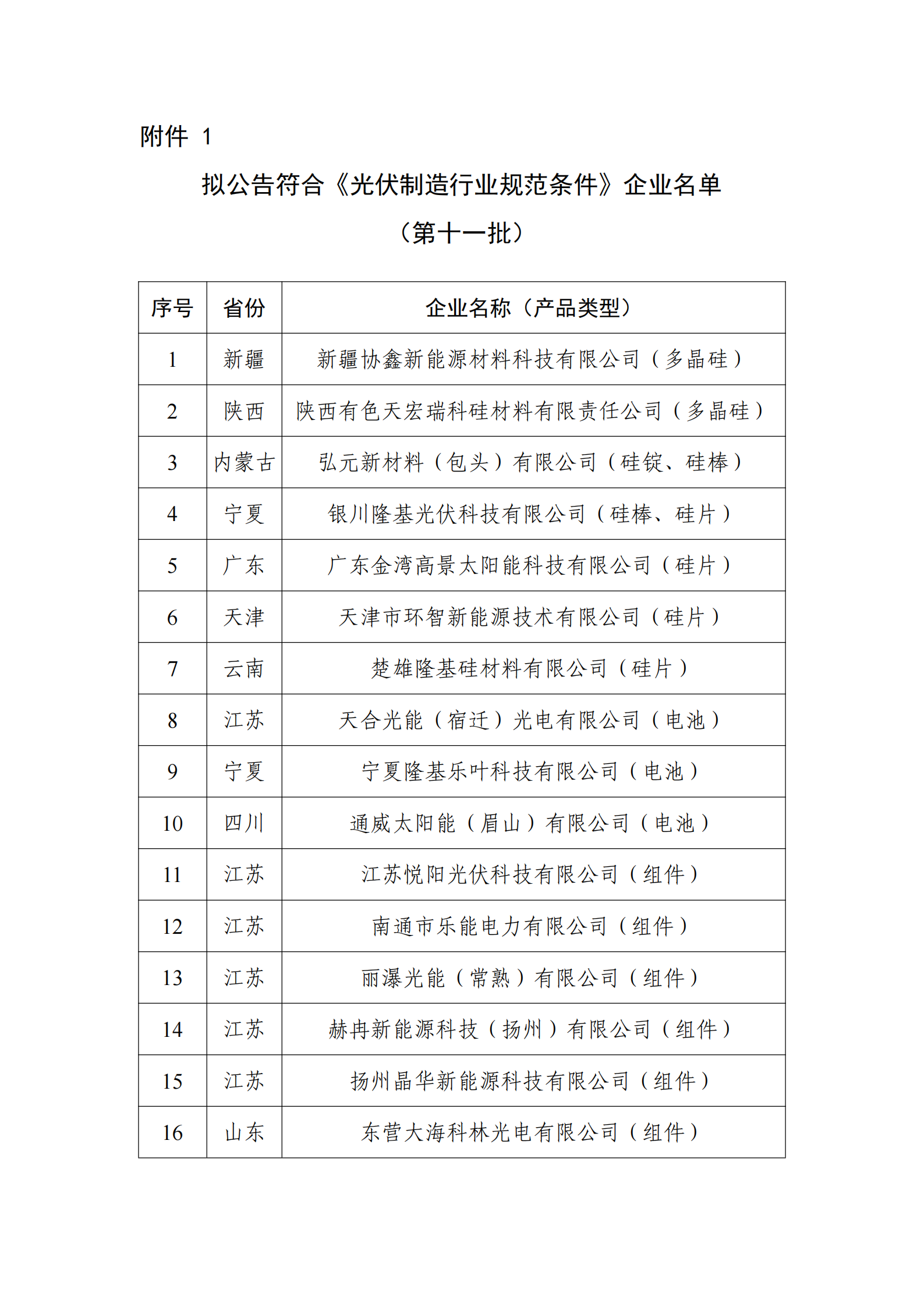 擬公告符合《光伏制造行業規范條件》企業名單(第十一批)和擬撤銷光伏制造行業規范公告企業名單(第六批)公示2022-12-15 20:22瀏覽數:183次