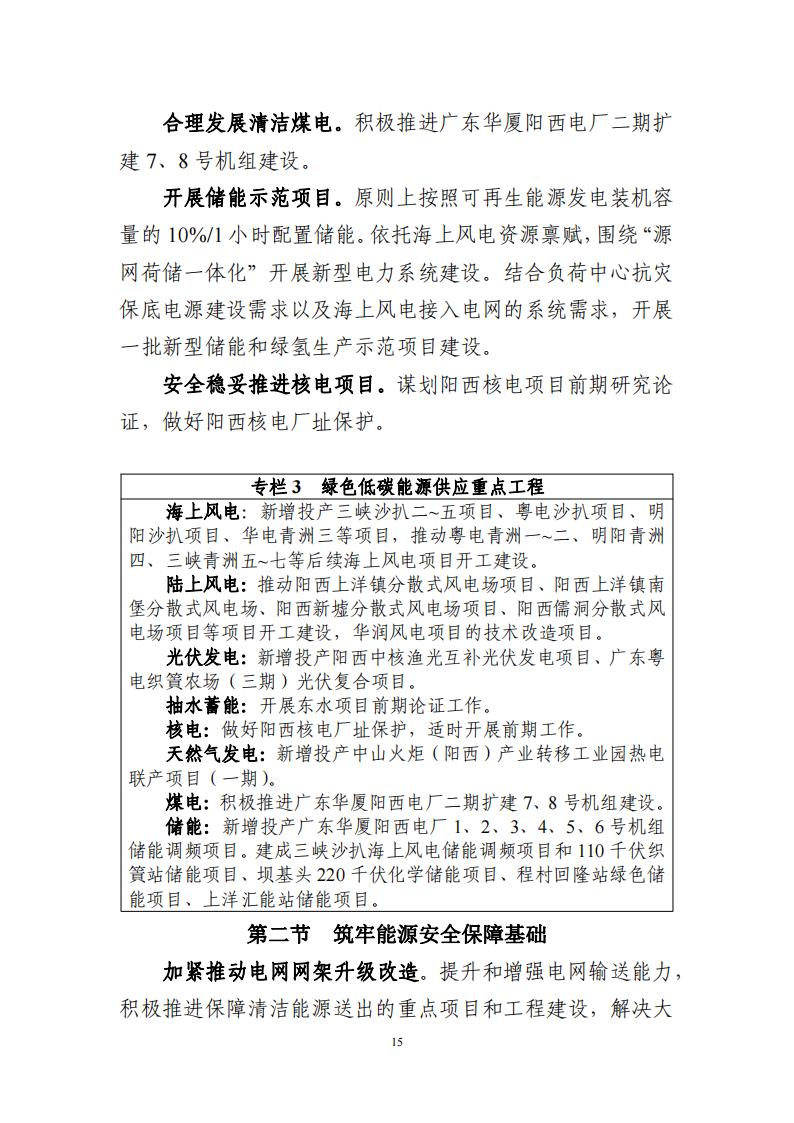 6月20日,廣東陽(yang)西縣發展和改革局發布(bu)關于公開征(zheng)集《陽(yang)西縣能源(yuan)發展“十四(si)五”規劃》(征(zheng)求意見稿)意見建議的公告。 規劃明確,“十四(si)五”期間,陽西(xi)(xi)將繼(ji)續融入大灣(wan)區產業(ye)(ye)分(fen)工(gong)體(ti)系(xi),成(cheng)為(wei)大灣(wan)區重要產業(ye)(ye)“協作(zuo)(zuo)區”。積(ji)極(ji)開發(fa)已核準的(de)(de)沙(sha)扒、青洲等(deng)(deng)海(hai)上(shang)風(feng)電項(xiang)(xiang)目(mu),積(ji)極(ji)推進集中式光伏、屋頂分(fen)布式光伏、陸上(shang)風(feng)電等(deng)(deng)新(xin)能(neng)(neng)(neng)(neng)源(yuan)(yuan)(yuan)項(xiang)(xiang)目(mu),穩(wen)(wen)步推進天(tian)然氣管網建設和(he)(he)天(tian)然氣發(fa)電項(xiang)(xiang)目(mu),結合新(xin)型儲(chu)能(neng)(neng)(neng)(neng)、火電靈(ling)活性改造、海(hai)上(shang)風(feng)電制氫等(deng)(deng)先進能(neng)(neng)(neng)(neng)源(yuan)(yuan)(yuan)技(ji)術的(de)(de)創(chuang)新(xin)應用,促(cu)進“風(feng)光火儲(chu)”一(yi)體(ti)化發(fa)展,合理穩(wen)(wen)妥開展核電儲(chu)備場址前期保護工(gong)作(zuo)(zuo),加快新(xin)能(neng)(neng)(neng)(neng)源(yuan)(yuan)(yuan)產業(ye)(ye)在(zai)陽西(xi)(xi)集聚發(fa)展。為(wei)能(neng)(neng)(neng)(neng)源(yuan)(yuan)(yuan)結構(gou)調整和(he)(he)產業(ye)(ye)結構(gou)優化升級提供強有力(li)(li)的(de)(de)支撐,助力(li)(li)全省能(neng)(neng)(neng)(neng)源(yuan)(yuan)(yuan)供應保障任務和(he)(he)碳達峰碳中和(he)(he)目(mu)標(biao)的(de)(de)順利實現,將陽西(xi)(xi)打造成(cheng)為(wei)“風(feng)光火儲(chu)”一(yi)體(ti)化多能(neng)(neng)(neng)(neng)互補示范基地,沿海(hai)經(jing)濟(ji)帶發(fa)展新(xin)高(gao)地、宜(yi)居(ju)宜(yi)業(ye)(ye)宜(yi)游(you)的(de)(de)現代化濱海(hai)新(xin)城(cheng)。到2025年(nian): (一)能耗雙控能源消費總量控制在90萬噸標準煤左(zuo)右,全社會用電量達到(dao)14.4億千瓦時左(zuo)右。“十四五”能源消費年均增速(su)7.22%左(zuo)右。 (二(er))能源(yuan)供(gong)應電(dian)力裝(zhuang)(zhuang)(zhuang)(zhuang)機(ji)(ji)容(rong)量(liang)達到1609萬(wan)(wan)千(qian)(qian)(qian)瓦(wa)(wa)左右。其中,煤(mei)電(dian)裝(zhuang)(zhuang)(zhuang)(zhuang)機(ji)(ji)748萬(wan)(wan)千(qian)(qian)(qian)瓦(wa)(wa),天然氣(qi)(qi)發電(dian)裝(zhuang)(zhuang)(zhuang)(zhuang)機(ji)(ji)24萬(wan)(wan)千(qian)(qian)(qian)瓦(wa)(wa),光伏發電(dian)裝(zhuang)(zhuang)(zhuang)(zhuang)機(ji)(ji)85萬(wan)(wan)千(qian)(qian)(qian)瓦(wa)(wa),海上風電(dian)裝(zhuang)(zhuang)(zhuang)(zhuang)機(ji)(ji)730萬(wan)(wan)千(qian)(qian)(qian)瓦(wa)(wa),陸上風電(dian)裝(zhuang)(zhuang)(zhuang)(zhuang)機(ji)(ji)22.2萬(wan)(wan)千(qian)(qian)(qian)瓦(wa)(wa)。天然氣(qi)(qi)管(guan)線(xian)里(li)程39.374公里(li)。加(jia)油站數量(liang)39座。110千(qian)(qian)(qian)伏變電(dian)站10座,主變容(rong)量(liang)667兆伏安。 (三)能(neng)(neng)源(yuan)產業能(neng)(neng)源(yuan)科(ke)技創新實力(li)顯著增強(qiang),風電(dian)(dian)等能(neng)(neng)源(yuan)裝(zhuang)備(bei)研(yan)發取得(de)較大成果,能(neng)(neng)源(yuan)裝(zhuang)備(bei)制(zhi)造國產化水平進一(yi)步提高,能(neng)(neng)源(yuan)產業科(ke)技創新示范工程取得(de)明顯成效(xiao)。構建功(gong)能(neng)(neng)完(wan)備(bei)的風電(dian)(dian)全產業鏈(lian)(lian)生態(tai)體系,推動風電(dian)(dian)上下游(you)產業鏈(lian)(lian)條集聚發展。 原文如下: