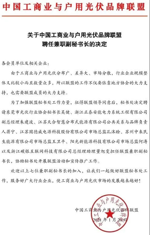 3月28日,第十(shi)六屆中國(guo)(濟(ji)南)太陽能(neng)利用大會暨多(duo)能(neng)互(hu)補展覽會圓(yuan)滿閉(bi)幕,展會吸引了來自光伏行(xing)業的上百(bai)家企業參展,盛況空(kong)前。 2021年是“十四五”規(gui)劃開局之年,“做好碳達峰、碳中和工作”在今年的(de)政(zheng)府工作報告中也被列為(wei)2021年重(zhong)點任務(wu)之一,而新(xin)能源產(chan)業是國家實現碳達峰、碳中和的(de)重(zhong)要環節,本屆“光伏展”,對響應(ying)國家“雙(shuang)碳”目標,發展綠色能源,助力(li)動能轉(zhuan)換,推動太陽能及(ji)綜(zong)合能源利用起到了極為(wei)重(zhong)要的(de)作用。 江蘇(su)天(tian)合智慧分布(bu)式作為分布(bu)式光(guang)伏(fu)領軍企業,攜手(shou)天(tian)合富家(jia)(jia)、天(tian)合藍天(tian)兩(liang)大原(yuan)裝品牌亮相展會并獲得系列榮譽,下面小編就帶大家(jia)(jia)一(yi)(yi)起回(hui)顧一(yi)(yi)下濟南(nan)展中天(tian)合富家(jia)(jia)的高光(guang)時刻。 展臺氛圍火爆 濟南(nan)展收獲(huo)滿(man)滿(man) 3月26日展會(hui)一開幕,天合富(fu)家(jia)(jia)展位(wei)便被圍(wei)了個水泄(xie)不通,百(bai)余位(wei)光(guang)伏(fu)行業同仁(ren)紛至沓來,來到(dao)天合富(fu)家(jia)(jia)展臺參(can)觀(guan)探討。天合富(fu)家(jia)(jia)從原(yuan)裝理念、技術創新、產(chan)品迭代、光(guang)伏(fu)+應用場(chang)景(jing)、SPVC等(deng)各維度進行全方位(wei)展示(shi)。 展臺上還設計了有(you)趣(qu)的游戲互動(dong)環節,現場搖(yao)一搖(yao)、打地鼠(shu)、搶紅包等游戲,前來(lai)圍(wei)觀(guan)的人絡繹不絕,展臺人頭攢動(dong),氣氛熱(re)烈。 同時(shi)天(tian)合富家在本次展會中(zhong)憑(ping)借(jie)行業領先的(de)原裝模式再度(du)(du)斬(zhan)獲了(le)“2020年(nian)度(du)(du)中(zhong)國分(fen)布式光伏(fu)(fu)戶用(yong)光伏(fu)(fu)系統品(pin)牌獎”以(yi)及“2020年(nian)度(du)(du)中(zhong)國優質戶用(yong)光伏(fu)(fu)品(pin)牌”這(zhe)兩項重磅大獎。 聯盟(meng)年會順利召開 持續引領(ling)高(gao)質發展 2021年3月27日,由中(zhong)(zhong)國(guo)工(gong)商(shang)(shang)業(ye)與(yu)戶用光伏(fu)品牌聯盟(meng)主辦的(de)中(zhong)(zhong)國(guo)工(gong)商(shang)(shang)業(ye)與(yu)戶用品牌聯盟(meng)2020年會在濟(ji)南成功舉行(xing),來自聯盟(meng)成員及行(xing)業(ye)優(you)秀企業(ye)的(de)兩(liang)百余(yu)位代表參會,共同(tong)探討(tao)了光伏(fu)行(xing)業(ye)的(de)偉大航路。 中國工(gong)商業與戶(hu)用光伏品牌聯盟(meng)理事(shi)長天合智(zhi)慧(hui)分布式能源總裁張兵(bing)應邀出席會(hui)議并發表(biao)致辭。 張兵(bing)首先對聯盟成員(yuan)表達了(le)衷心(xin)的(de)(de)感謝,過(guo)(guo)去的(de)(de)四年,聯盟始(shi)終堅持品(pin)牌高(gao)質量發展路(lu)線(xian),匯聚了(le)一批優秀的(de)(de)品(pin)牌企業 ,通過(guo)(guo)相互的(de)(de)溝通協作走(zou)出了(le)531帶來的(de)(de)沖(chong)擊,為行業的(de)(de)高(gao)質量發展做出了(le)重要(yao)的(de)(de)貢獻(xian)。 張(zhang)兵表(biao)示疫情對(dui)各行(xing)業的影(ying)響(xiang)不(bu)言(yan)而喻(yu),但是(shi)光伏經(jing)歷幾番波折,得到了確定的發(fa)展,今年(nian)是(shi)“十(shi)四(si)五”的開(kai)局之年(nian),面對(dui)“碳(tan)達峰、碳(tan)中和”的長遠(yuan)目標,既要保障(zhang)能(neng)源安(an)全,又要實(shi)現綠色轉型,鄉村(cun)振興(xing),生態(tai)保護都(dou)與分布式光伏息息相關(guan),風口已來,暖風正勁,今年(nian)濟南展會的超(chao)高人氣(qi)就是(shi)一(yi)個很好的市場(chang)反饋。 張兵指出,機會(hui)往往是(shi)(shi)與(yu)挑戰是(shi)(shi)并存的(de)。隨著(zhu)行(xing)業(ye)(ye)(ye)變熱,加入(ru)到行(xing)業(ye)(ye)(ye)的(de)經銷商明顯增(zeng)多了,僅一個滕州市場(chang)就有上(shang)百家戶用光伏的(de)經銷商,隨之(zhi)而來(lai)的(de)商業(ye)(ye)(ye)模(mo)式也是(shi)(shi)五花(hua)八門,行(xing)業(ye)(ye)(ye)需要新鮮血液注入(ru)新的(de)活力,但過(guo)度的(de)關注模(mo)式招(zhao)數,忽(hu)略了基礎的(de)產品和(he)服務,只(zhi)顧前端銷售(shou),后端的(de)服務和(he)售(shou)后跟不上(shang),長此以往,行(xing)業(ye)(ye)(ye)或將面臨來(lai)自市場(chang)的(de)新一輪調(diao)整。因此堅持(chi)長遠主義,有序發(fa)展,理(li)性競(jing)爭才(cai)是(shi)(shi)行(xing)業(ye)(ye)(ye)發(fa)展的(de)正道,聯盟需要起好帶(dai)頭示范作(zuo)用。 天合富(fu)家作為(wei)(wei)理(li)(li)事長單位,將(jiang)加強自律(lv),積極引導行業高(gao)(gao)質(zhi)量發展,堅定不移地以創(chuang)造(zao)客戶價值(zhi)為(wei)(wei)目標,打造(zao)原裝高(gao)(gao)標準。堅持(chi)“高(gao)(gao)可靠(kao)、高(gao)(gao)保障(zhang)、高(gao)(gao)收益”的價值(zhi)理(li)(li)念,通(tong)過TSC智(zhi)能云服務(wu)中(zhong)心(xin)和(he)AI大數據(ju)平臺,實時在線,遠程鏈接市場(chang),為(wei)(wei)渠(qu)道合作伙伴和(he)終端客戶提供(gong)高(gao)(gao)效、優質(zhi)的原裝服務(wu)。用(yong)新模式新生態,為(wei)(wei)用(yong)戶提供(gong)最佳的光伏清潔能源(yuan)體驗(yan)。 聘任聯(lian)盟副秘書長 天合藍天迎接分布(bu)式(shi)挑戰 本次(ci)聯盟(meng)(meng)會議同時也宣布(bu)(bu)關于中(zhong)國工(gong)商業(ye)與(yu)(yu)戶(hu)用光(guang)(guang)伏(fu)(fu)品牌聯盟(meng)(meng)聘任(ren)兼(jian)職副秘書長的(de)通(tong)知。為了加(jia)強聯盟(meng)(meng)秘書處(chu)工(gong)作(zuo)力量(liang),秘書處(chu)決定聘請(qing)江(jiang)蘇天合智慧分布(bu)(bu)式能源有(you)限
