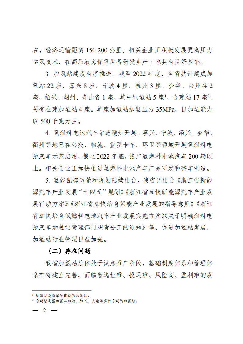 8月(yue)14日(ri),浙江(jiang)省發展(zhan)改(gai)革委聯合浙江(jiang)省能(neng)源(yuan)局和浙江(jiang)省建(jian)設廳發布浙江(jiang)省加氫(qing)(qing)站(zhan)(zhan)發展(zhan)規(gui)劃(hua),并公(gong)(gong)開40座(zuo)加氫(qing)(qing)站(zhan)(zhan)項(xiang)目實(shi)施安排。《規(gui)劃(hua)》中指出,到2025年(nian),基本(ben)形成(cheng)以(yi)工業副產(chan)氫(qing)(qing)為(wei)主(zhu),電(dian)解水制氫(qing)(qing)、可再(zai)生能(neng)源(yuan)制氫(qing)(qing)為(wei)補充的(de)氫(qing)(qing)源(yuan)保障體系,基本(ben)建(jian)成(cheng)市域、城區100公(gong)(gong)里輻射半徑的(de)加氫(qing)(qing)網絡,建(jian)設加氫(qing)(qing)站(zhan)(zhan)50座(zuo)以(yi)上(shang)、日(ri)加氫(qing)(qing)能(neng)力35.5噸以(yi)上(shang)。 將依托“環杭州(zhou)灣(wan)”“義甬(yong)舟”氫(qing)(qing)(qing)走廊,打造“一核、兩區”加(jia)氫(qing)(qing)(qing)網絡(luo)空(kong)間布(bu)局。到2025年,建設環杭州(zhou)灣(wan)氫(qing)(qing)(qing)能(neng)(neng)產(chan)業核心(xin)城市群加(jia)氫(qing)(qing)(qing)站(zhan)26座以(yi)(yi)上(shang)(shang)(shang)(shang)、日(ri)加(jia)氫(qing)(qing)(qing)能(neng)(neng)力(li)(li)合計19噸以(yi)(yi)上(shang)(shang)(shang)(shang);建設義甬(yong)舟氫(qing)(qing)(qing)能(neng)(neng)產(chan)業聯動發(fa)展區加(jia)氫(qing)(qing)(qing)站(zhan)17座以(yi)(yi)上(shang)(shang)(shang)(shang)、日(ri)加(jia)氫(qing)(qing)(qing)能(neng)(neng)力(li)(li)合計13噸以(yi)(yi)上(shang)(shang)(shang)(shang),并推進重型卡車氫(qing)(qing)(qing)能(neng)(neng)應(ying)用;建設浙(zhe)西南氫(qing)(qing)(qing)能(neng)(neng)產(chan)業培(pei)育區加(jia)氫(qing)(qing)(qing)站(zhan)7座以(yi)(yi)上(shang)(shang)(shang)(shang)、日(ri)加(jia)氫(qing)(qing)(qing)能(neng)(neng)力(li)(li)合計3.5噸以(yi)(yi)上(shang)(shang)(shang)(shang),在(zai)溫州(zhou)、麗水(shui)等(deng)地因地制(zhi)宜推進可(ke)再生能(neng)(neng)源制(zhi)氫(qing)(qing)(qing)試點。 原文如下: 省發(fa)展改革(ge)委 省能源局 省建設廳關于聯合印發(fa)浙江省加氫站發(fa)展規劃的通(tong)知 各市、縣(市、區)發(fa)展改革委(局(ju))、能源局(ju)、建委(建設(she)局(ju))、城市管理(綜合執法)局(ju),寧波市能源局(ju): 現將(jiang)《浙江省加氫站發(fa)(fa)展規劃》印發(fa)(fa)給你們,請結合(he)實際,認(ren)真組(zu)織實施。 附件:《浙江省加氫站發展規劃》 浙(zhe)江省(sheng)發展和改革委(wei)員會 浙(zhe)江省(sheng)能源局 浙(zhe)江省(sheng)住房(fang)和城鄉建設廳(ting) 2023年8月14日 上一篇: 宣化風儲氫綜合智慧能源示范項目正式開工