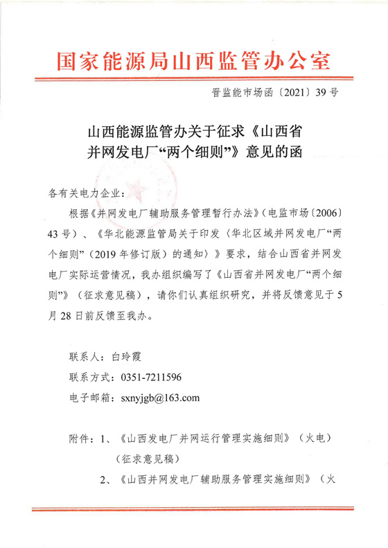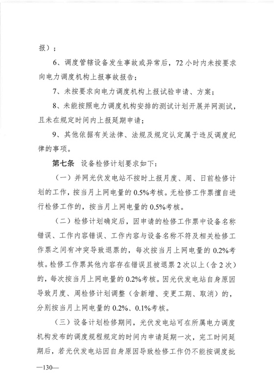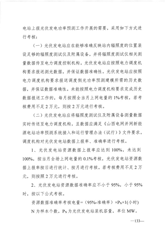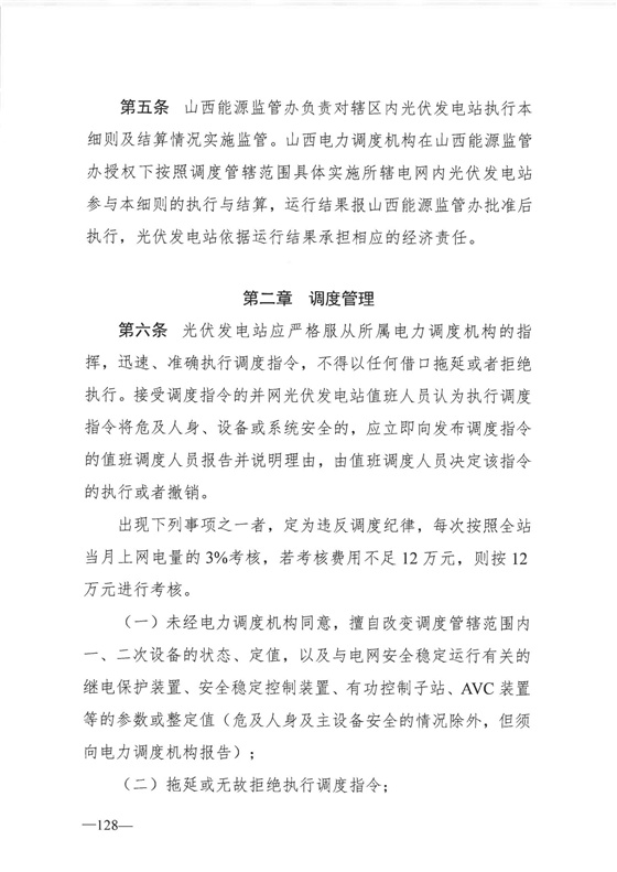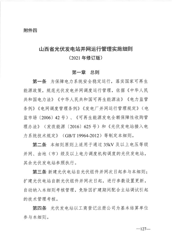 5月18日(ri),山西(xi)省能監辦發(fa)(fa)(fa)布《山西(xi)省光(guang)(guang)伏(fu)(fu)發(fa)(fa)(fa)電(dian)站并(bing)網運行(xing)管理實施細(xi)(xi)則》(征求(qiu)意見稿),文(wen)件指出:本細(xi)(xi)則原則上適(shi)用于通(tong)過35kV及以上電(dian)壓(ya)等級并(bing)網、由地(市(shi))級及以上電(dian)力調(diao)度機構調(diao)度的光(guang)(guang)伏(fu)(fu)發(fa)(fa)(fa)電(dian)站,其余光(guang)(guang)伏(fu)(fu)發(fa)(fa)(fa)電(dian)站參照執行(xing)。新(xin)建(jian)光(guang)(guang)伏(fu)(fu)電(dian)站自(zi)光(guang)(guang)伏(fu)(fu)組件并(bing)網次日(ri)起參與(yu)本細(xi)(xi)則;擴建(jian)光(guang)(guang)伏(fu)(fu)電(dian)站自(zi)新(xin)光(guang)(guang)伏(fu)(fu)組件并(bing)網次日(ri)起,進行(xing)參數設(she)置更新(xin),自(zi)動納入本細(xi)(xi)則考核管理,免除因擴建(jian)期間(jian)配合(he)主(zhu)站調(diao)試引起的技術(shu)管理考核。 針對該征(zheng)求意見(jian)(jian)稿的反饋(kui)意見(jian)(jian)于5月(yue)28日前反饋(kui)至(zhi)山西能監辦。 全文如下:
