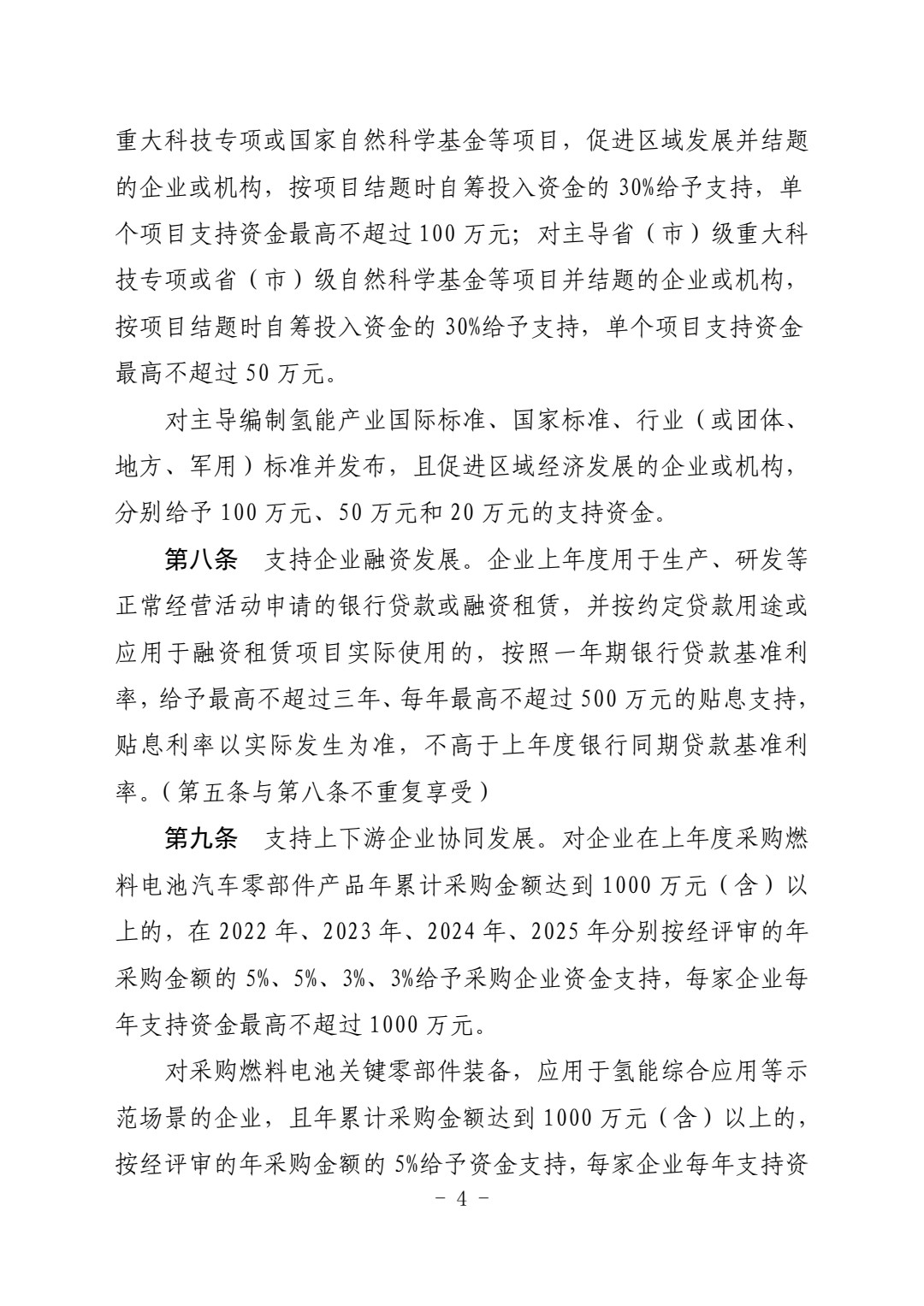《大興區促進氫能產業發展暫行辦法(2022年修訂版)》申報指南 第一章 總 則 第一條 為貫徹落實《大興(xing)區促進氫能產業(ye)發(fa)展暫行(xing)辦(ban)法(fa)(fa)(2022年(nian)修訂版)》(京興(xing)政發(fa)〔2022〕6號)(以下簡稱《暫行(xing)辦(ban)法(fa)(fa)》),支持氫能企業(ye)科技創新(xin),促進氫能產業(ye)集(ji)聚發(fa)展,明確《暫行(xing)辦(ban)法(fa)(fa)》重點支持對(dui)象、申報材料要求等,現制定發(fa)布《暫行(xing)辦(ban)法(fa)(fa)》申報指南(nan)。 本申報指南(nan)所涉及的支持資金,按(an)照《大興區促進產(chan)業(ye)發展的指導意見》(京興政發〔2022〕22號)及相關規定(ding),按(an)照“事(shi)后(hou)補(bu)貼”支持的方(fang)式給予撥(bo)付。 第二章 支持對象 第二條 《暫行辦(ban)法(fa)》支持從(cong)事氫能領域的企業、民辦(ban)非企業單位開(kai)展科技創新、成果(guo)轉化(hua)、平臺(tai)建設等,促進(jin)產業高(gao)質量發展。 第三(san)章 支持內(nei)容、條件和(he)申(shen)報材料要求 第三(san)條(tiao) 支(zhi)持企(qi)業(ye)落地發(fa)展(zhan)。企(qi)業(ye)自(zi)注冊(ce)之(zhi)日起三(san)年內(nei),對首次納(na)入規模以上統計范圍的(de)禁限目錄外的(de)企(qi)業(ye),自(zi)該年起每(mei)(mei)年實現正增(zeng)長的(de),連續三(san)年給予(yu)資金支(zhi)持,每(mei)(mei)家(jia)企(qi)業(ye)每(mei)(mei)年支(zhi)持資金最高不超(chao)過(guo)1000萬元。 1.須滿足的條件 新注冊(含新遷入(ru)(ru)),且(qie)在市場(chang)監管部門(men)注冊(遷入(ru)(ru))年(nian)度起三年(nian)內(nei),產值(zhi)(zhi)或主營(ying)業務收入(ru)(ru)首次達到2000萬元(含)以上(shang)并納(na)入(ru)(ru)統(tong)計范圍,自該年(nian)起產值(zhi)(zhi)或主營(ying)業務收入(ru)(ru)每年(nian)實現正增長。按(an)照上(shang)年(nian)度納(na)統(tong)產值(zhi)(zhi)或主營(ying)業務收入(ru)(ru)的(de)3‰,給予最高(gao)不(bu)超過1000萬元的(de)資(zi)金獎勵。 2.須提供的材料 (1)項目申報表; (2)營業執照復印件; (3)企業承諾書; (4)企(qi)業入區協議(yi)(適用于拿(na)地(di)企(qi)業)或與屬地(di)簽訂(ding)的承諾書(適用于拿(na)地(di)以外的企(qi)業); (5)上兩(liang)年度統計報表(biao)(101表(biao)); (6)其他相關材料。 第(di)四條 支持企業(ye)(ye)聚集發展。鼓勵企業(ye)(ye)在大(da)興(xing)國際氫能示(shi)范(fan)區(qu)集聚落地。企業(ye)(ye)租賃(lin)具(ju)有合(he)(he)法合(he)(he)規手(shou)續的辦(ban)公、研發、生產類用房,且建筑面積(ji)2000平米(含)以下的,經評審(shen),自合(he)(he)同簽訂年度(du)起(qi)連續三年給予100%房租補(bu)(bu)貼;建筑面積(ji)2000平米以上的,經評審(shen),超出面積(ji)部分按(an)照(zhao)50%給予房租補(bu)(bu)貼。每家企業(ye)(ye)每年補(bu)(bu)貼最高(gao)不超過500萬元(yuan)。 1.須滿足的條件 (1)申報單位租賃的辦公、研發、生產類用(yong)房必須為自 用,屬地負責(ze)對企業承租(zu)空間合法(fa)合規性進行審核并出(chu)具推薦(jian)函。 (2)辦公(gong)、研發、生(sheng)產(chan)(chan)類用(yong)房是指直(zhi)接用(yong)于燃料電池汽車整車、零部件等(deng)與氫能產(chan)(chan)業相關設備(bei)生(sheng)產(chan)(chan)加工(gong)、技術研發、辦公(gong)的場地。 (3)申報單(dan)位的房(fang)屋租賃費(fei)(fei)(fei)用不含(han)物(wu)業費(fei)(fei)(fei)、能源費(fei)(fei)(fei)、服務費(fei)(fei)(fei)等(deng)。 (4)支持落(luo)地5年(nian)內的(de)企業申報。被(bei)認定為“新國門(men)”領(ling)軍人才(cai)、優秀(xiu)青年(nian)人才(cai)創辦(ban)的(de)企業的(de),落(luo)地時間可從被(bei)認定之日起算(suan)。 2.須提供的材料 (1)項目申報表; (2)營業(ye)執(zhi)照復(fu)印件; (3)企業承諾書; (4)企業(ye)(ye)入區協(xie)議(yi)(適用(yong)于(yu)拿地(di)企業(ye)(ye))或與(yu)屬(shu)地(di)簽訂的承諾書(適用(yong)于(yu)拿地(di)以外的企業(ye)(ye)); (5)“新國(guo)門”領軍人才、優秀青年人才創(chuang)辦企(qi)業提供稱號認定和(he)創(chuang)辦企(qi)業時間證明材料; (6)租賃房屋的房產證復印件或竣工驗收證明材(cai)料; (7)房租(zu)租(zu)賃的(de)合同復(fu)印件; (8)上年度足額繳(jiao)納(na)房租的(de)發(fa)票復(fu)印(yin)件(jian)、付(fu)款憑證及(ji)記(ji)賬(zhang)憑證復(fu)印(yin)件(jian),并按照繳(jiao)納(na)房租發(fa)票、銀(yin)行付(fu)款憑證、財務記(ji) 賬憑證(zheng)順序(xu)一一對應; (9)生產、研發、辦公用(yong)房的現(xian)場工作照片; (10)電費繳納單; (11)其他相關(guan)材料。 第五條 支(zhi)持(chi)(chi)科技成(cheng)果轉化。對企業(ye)上年(nian)(nian)度(du)新購置的研發(fa)和生產設備投資總額(e)達(da)到1000萬(wan)元(yuan)(含)以上的,按(an)照設備投資總額(e)的20%給予資金(jin)支(zhi)持(chi)(chi),每家企業(ye)每年(nian)(nian)支(zhi)持(chi)(chi)資金(jin)最高不超(chao)過(guo)2000萬(wan)元(yuan)。 對(dui)產(chan)品被列(lie)入國(guo)家燃料(liao)電池汽車示(shi)范城市群(qun)關鍵(jian)零部(bu)件(jian)目錄的(de)零部(bu)件(jian)生產(chan)研發企(qi)業,按照國(guo)家獎勵(li)資(zi)(zi)金(jin)的(de)30%給予資(zi)(zi)金(jin)支持(chi)。(第五條和第八條不重(zhong)復支持(chi)) 1.須滿足的條件 (1)項目已在本區進行工業固(gu)定(ding)資產(chan)投資納統。 (2)研發和生(sheng)產設備是(shi)指用于氫能(neng)及(ji)燃料電池汽車產業(ye)技術(shu)研發、生(sheng)產的相關(guan)設備,電腦、公(gong)務車等(deng)移動(dong)辦公(gong)設備除外。 (3)申報(bao)單位與研發和生產設備廠(chang)商直接或間接