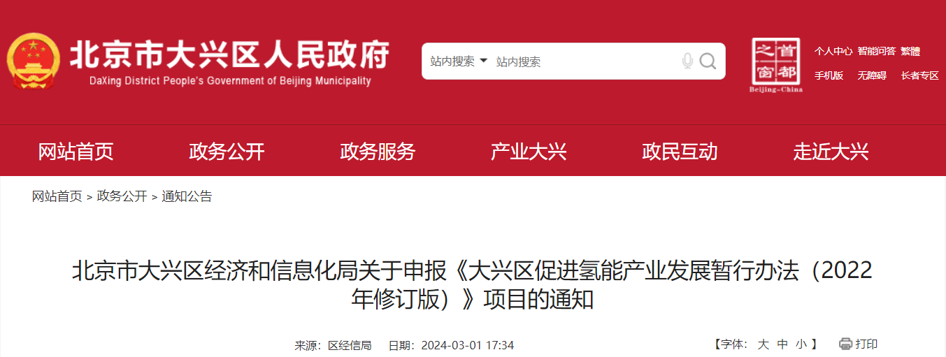 關于申報《大興區促進氫能產業發展暫行辦法(2022年修訂版)》項目的通知2024-03-02 15:25瀏覽數:173次
