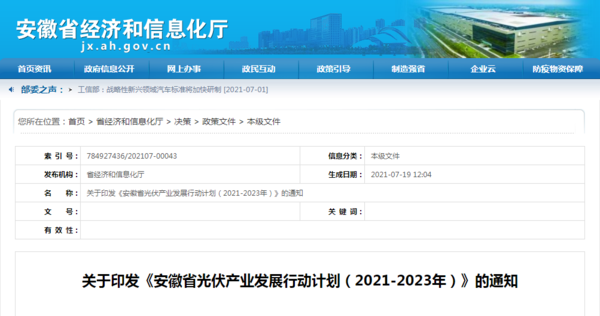 安(an)(an)徽(hui)(hui)(hui)省(sheng)經(jing)濟和(he)信息化廳(ting)、安(an)(an)徽(hui)(hui)(hui)省(sheng)發展(zhan)(zhan)(zhan)(zhan)和(he)改(gai)革委員會、安(an)(an)徽(hui)(hui)(hui)省(sheng)住(zhu)房和(he)城鄉建設廳(ting) 、安(an)(an)徽(hui)(hui)(hui)省(sheng)能(neng)源局(ju)聯合發布《安(an)(an)徽(hui)(hui)(hui)省(sheng)光(guang)伏(fu)產(chan)業發展(zhan)(zhan)(zhan)(zhan)行動(dong)計劃(2021-2023年)》,行動(dong)計劃指(zhi)出:加強儲(chu)(chu)(chu)能(neng)電池(chi)產(chan)品布局(ju),重點發展(zhan)(zhan)(zhan)(zhan)用于光(guang)伏(fu)儲(chu)(chu)(chu)能(neng)的三元鋰電池(chi)、磷酸鐵鋰電池(chi)、液流電池(chi)等產(chan)品,圍(wei)繞技術性(xing)、安(an)(an)全(quan)性(xing)、服役壽命、能(neng)積(ji)比、充(chong)放(fang)電次數(shu)、環境適(shi)應度(du)等基(ji)本(ben)性(xing)能(neng)要求,解(jie)決儲(chu)(chu)(chu)能(neng)電池(chi)在安(an)(an)全(quan)性(xing)、效(xiao)率、性(xing)能(neng)、成本(ben)、壽命、智(zhi)能(neng)檢測與控制(zhi)等方面(mian)的關鍵問題,推動(dong)光(guang)儲(chu)(chu)(chu)一體化發展(zhan)(zhan)(zhan)(zhan)。積(ji)極支(zhi)持開(kai)展(zhan)(zhan)(zhan)(zhan)源網(wang)荷儲(chu)(chu)(chu)一體化項目,探索(suo)“光(guang)伏(fu)+儲(chu)(chu)(chu)能(neng)”、光(guang)伏(fu)制(zhi)氫、光(guang)伏(fu)直供電等新模式。 此外還要加大系統(tong)解(jie)決方案(an)開(kai)發。支持開(kai)發高安全性電池儲能(neng)集裝(zhuang)集成系統(tong)(箱),形成儲能(neng)系統(tong)輔(fu)助光伏并網、電力調頻調峰(feng)、需(xu)求(qiu)側響應、微電網等多種系統(tong)解(jie)決方案(an)。將支持光伏產業發展、大力優化(hua)能(neng)源結構列入全省碳(tan)排(pai)放(fang)達峰(feng)行動方案(an)重點(dian)任務(wu),支持有條件的地區(qu)和企業開(kai)展光伏項(xiang)目(mu)碳(tan)減(jian)排(pai)量的核(he)算和交易試點(dian)。 安徽(hui)省光伏產業發展行動計劃(2021—2023年) 為搶抓(zhua)新發展(zhan)機(ji)遇,加快推(tui)動(dong)我省(sheng)(sheng)光伏產(chan)業高質量發展(zhan),支(zhi)撐和(he)保障我省(sheng)(sheng)產(chan)業結(jie)構優(you)化和(he)能源結(jie)構升級,制定本行動(dong)計劃。 一、總體要求 (一)指(zhi)導(dao)思想。以(yi)(yi)習(xi)近(jin)平新(xin)(xin)時代中(zhong)(zhong)國特色社(she)會主(zhu)義思想為(wei)(wei)指(zhi)導(dao),全面貫徹落實黨的十九大(da)(da)和(he)十九屆二中(zhong)(zhong)、三中(zhong)(zhong)、四中(zhong)(zhong)、五中(zhong)(zhong)全會精(jing)神,以(yi)(yi)推(tui)動高質量發展(zhan)(zhan)為(wei)(wei)主(zhu)題,以(yi)(yi)深化供給(gei)側(ce)結(jie)構性(xing)改(gai)革(ge)為(wei)(wei)主(zhu)線(xian),以(yi)(yi)改(gai)革(ge)創(chuang)新(xin)(xin)為(wei)(wei)根本動力,以(yi)(yi)“碳達(da)峰、碳中(zhong)(zhong)和(he)”為(wei)(wei)引領,搶抓(zhua)光伏(fu)產(chan)(chan)(chan)業發展(zhan)(zhan)新(xin)(xin)階段新(xin)(xin)機遇,堅(jian)持市場(chang)主(zhu)導(dao)、政(zheng)府引導(dao),加快(kuai)創(chuang)新(xin)(xin)驅動,推(tui)動產(chan)(chan)(chan)用結(jie)合,聚焦光伏(fu)玻(bo)璃、電池、組件、逆變器等產(chan)(chan)(chan)業鏈上下游重點環節,堅(jian)持因地制宜特色發展(zhan)(zhan)、龍頭帶動集聚發展(zhan)(zhan)、智能制造綠色發展(zhan)(zhan),加快(kuai)推(tui)動我省光伏(fu)產(chan)(chan)(chan)業提質增效,大(da)(da)力提升產(chan)(chan)(chan)業基礎(chu)能力和(he)產(chan)(chan)(chan)業鏈現(xian)代化水(shui)平,實現(xian)全省光伏(fu)產(chan)(chan)(chan)業高質量發展(zhan)(zhan)。 (二)發展(zhan)目標。到2023年(nian),全省光伏產(chan)(chan)業技術水平和(he)創新能(neng)力進一(yi)步(bu)提升,產(chan)(chan)業規模邁上(shang)新臺階,產(chan)(chan)業體(ti)系更加完善,建成(cheng)一(yi)批(pi)經濟(ji)效益好、帶動(dong)性(xing)強的(de)重點項目,培育壯大5家(jia)以上(shang)創新能(neng)力突(tu)出、具(ju)有國際競爭力的(de)百億(yi)(yi)級(ji)企(qi)業,牽引(yin)帶動(dong)一(yi)批(pi)上(shang)下(xia)游(you)配套企(qi)業,推動(dong)實施一(yi)批(pi)可(ke)推廣、可(ke)復制的(de)特色行業應用(yong)示范(fan),力爭全省太陽能(neng)電池及(ji)組件產(chan)(chan)能(neng)突(tu)破(po)80GW,產(chan)(chan)量(liang)保(bao)持全國領先,營業收入“三年(nian)翻(fan)一(yi)番(fan)”,產(chan)(chan)業鏈產(chan)(chan)值實現1500億(yi)(yi)元,把我省打造成(cheng)為集聚效應顯著、協(xie)同配套完善、國際競爭力突(tu)出的(de)綠色能(neng)源產(chan)(chan)業發展(zhan)新高地。 二、重點任務 (一)提升產(chan)業創新能力(li)。 加(jia)快推動(dong)技(ji)(ji)術(shu)創(chuang)新研(yan)發(fa)。鼓勵企業(ye)加(jia)大研(yan)發(fa)創(chuang)新投入,以隧穿氧(yang)化(hua)層鈍化(hua)接(jie)觸(TOPCon)、異質(zhi)結(HJT)、鈣(gai)鈦礦等下一代(dai)電池技(ji)(ji)術(shu),半片、疊(die)瓦、多主柵(zha)、無主柵(zha)等先進組件(jian)技(ji)(ji)術(shu),大規模儲能、柔性并網等應用技(ji)(ji)術(shu)為重(zhong)點(dian),強化(hua)關鍵技(ji)(ji)術(shu)迭代(dai)突破,構建形成(cheng)以技(ji)(ji)術(shu)創(chuang)新帶動(dong)產業(ye)發(fa)展(zhan)、以產業(ye)發(fa)展(zhan)驅(qu)動(dong)技(ji)(ji)術(shu)創(chuang)新的良性發(fa)展(zhan)態(tai)勢。(責任(ren)單位:省經濟和(he)信息(xi)化(hua)廳(ting)、省發(fa)展(zhan)改(gai)革委、省科(ke)技(ji)(ji)廳(ting)、相關市人民(min)政(zheng)府) 加強創新服(fu)務平(ping)臺(tai)建設。鼓勵光(guang)伏企(qi)(qi)業、高校和(he)科研院(yuan)所共(gong)(gong)建創新