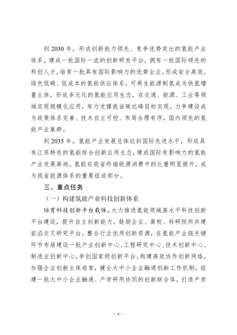 近日,江蘇省(sheng)發改委發布《江蘇省(sheng)氫(qing)能(neng)產(chan)業發展中長期規(gui)劃(2024-2035年(nian))》其中指出,到2027年(nian),氫(qing)能(neng)產(chan)業規(gui)模(mo)力爭突破1000億元。氫(qing)能(neng)基礎(chu)設(she)施不(bu)斷(duan)完善,建成商(shang)業加氫(qing)站100座左右。氫(qing)能(neng)應(ying)用(yong)示范(fan)(fan)取得成效,氫(qing)燃(ran)料(liao)電(dian)池車輛推廣(guang)量(liang)超過4000輛,在(zai)發電(dian)、儲能(neng)、工業等(deng)領域試點示范(fan)(fan)應(ying)用(yong)取得突破。力爭建設(she)成為國內氫(qing)能(neng)產(chan)業高質(zhi)量(liang)發展示范(fan)(fan)區。