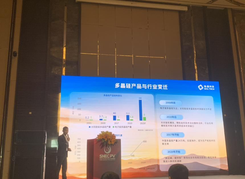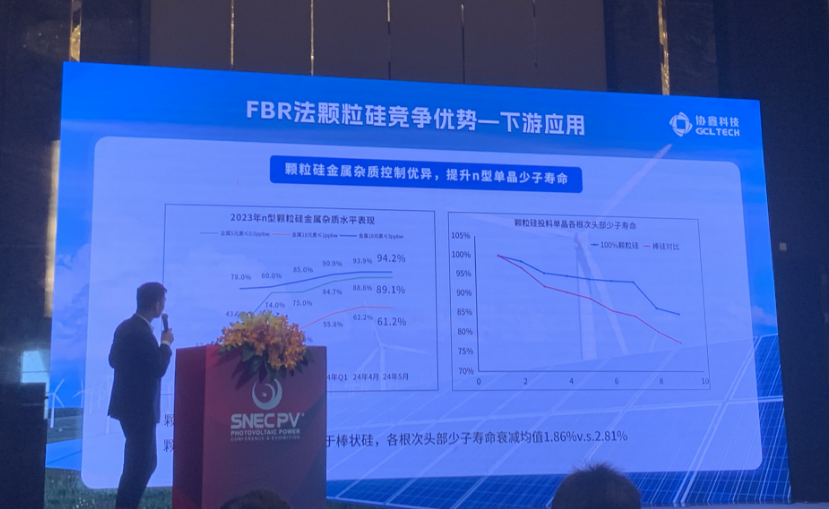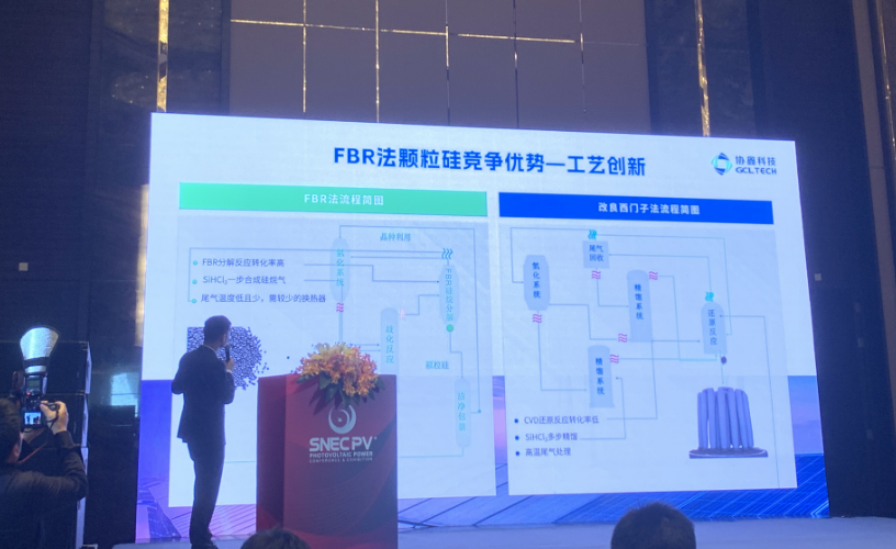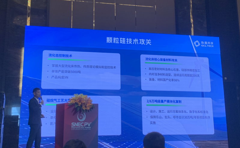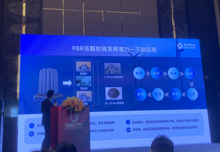 劉(liu)濤博(bo)士在(zai)全球光伏前沿技(ji)術大會(hui)上就晶硅太陽(yang)能電池(chi)與輔材(cai),特別是針對顆(ke)粒(li)硅技(ji)術在(zai)N型應(ying)用方(fang)面(mian)的創新進行(xing)了分享。 在(zai)2008年(nian)之前,電(dian)子級多晶硅占(zhan)據主(zhu)導地(di)位,而太(tai)陽(yang)能級多晶硅的技術突破進(jin)展緩慢。然(ran)而,自2010年(nian)光伏裝機爆發式增長后,顆粒硅的技術活動再次(ci)變得(de)活躍起來,行(xing)業在(zai)規模和技術兩方面都在(zai)積極尋求成本的突破點(dian)。 2017年開始,中國多晶硅(gui)產(chan)(chan)量達(da)到(dao)(dao)24萬噸,超過了(le)(le)海外產(chan)(chan)量,成為了(le)(le)生產(chan)(chan)和(he)技術創新的(de)(de)(de)主體。到(dao)(dao)了(le)(le)2020年,“碳(tan)達(da)峰、碳(tan)中和(he)”目(mu)標(biao)的(de)(de)(de)提出再次推動了(le)(le)光伏市場(chang)的(de)(de)(de)發展,顆粒硅(gui)的(de)(de)(de)發展也(ye)迎來了(le)(le)新的(de)(de)(de)機遇(yu)期。 劉濤博士詳細介紹了協鑫科技公(gong)司,該公(gong)司經過“10年磨一(yi)劍”的(de)努力,成(cheng)功開發(fa)了顆粒(li)硅技術,這(zhe)不僅促進了行(xing)業內(nei)的(de)良性競爭,加速了行(xing)業的(de)發(fa)展,還填補了技術上的(de)空白。協鑫科技在顆粒(li)硅領域取(qu)得了顯著的(de)成(cheng)果: 授權專(zhuan)利(li)191項 制定國家(jia)標準7項 參與制定國(guo)際標準6項 同時,協(xie)鑫科技還(huan)完善(shan)了國內(nei)產(chan)業生態,取得了以下成(cheng)就: 裝備國產化率達到100% 下游客戶覆蓋率達到90% 總體市(shi)場(chang)占有率(lv)超(chao)過20% N型硅料(liao)市(shi)場占有率達到60% 對于FBR法(fa)顆粒硅的(de)(de)(de)發(fa)展(zhan)潛(qian)力(li)及技術(shu)升級,劉濤博(bo)士指出(chu),未來將會擁有(you)超過(guo)30%轉(zhuan)化(hua)率的(de)(de)(de)冷氫化(hua)技術(shu)。這一(yi)技術(shu)將進一(yi)步提升顆粒硅的(de)(de)(de)性能和(he)效(xiao)率,推(tui)動(dong)光伏(fu)行業的(de)(de)(de)持續(xu)發(fa)展(zhan)。