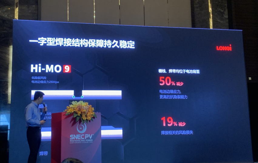 童洪波先生在(zai)全(quan)球光(guang)伏前沿技術大會(3):晶(jing)硅太陽能(neng)電池與輔材針對HPBC PRO電池技術推廣(guang)的介紹與優勢說明進(jin)行分享。 童洪波先(xian)生對BC電池結構(gou)優(you)勢進(jin)行分享: 天(tian)生的終極(ji)光學和美(mei)學設計、絕(jue)佳鈍(dun)化(hua)性能、靈活(huo)多變,滿足多種應(ying)用場景、優異(yi)鈍(dun)化(hua)性能、優異(yi)傳輸(shu)特點。 針對(dui)隆(long)基HPBC 2.0量產效率,童洪波先生指出HPBC2.0平均開壓突破744MV,平均效率26.6%。 并進一(yi)步對Hi-MO9 產品特性介紹,第一(yi)效率更(geng)高,動(dong)力更(geng)強,裝機容(rong)量有5.0%的提(ti)(ti)(ti)升(sheng)(sheng)(sheng)。第二(er)擁有更(geng)低的線衰,提(ti)(ti)(ti)升(sheng)(sheng)(sheng)全生命周期發電(dian)能(neng)力,發電(dian)量提(ti)(ti)(ti)升(sheng)(sheng)(sheng)1.51%。第三更(geng)優的溫度系(xi)數(shu)實現性能(neng)提(ti)(ti)(ti)升(sheng)(sheng)(sheng),最高提(ti)(ti)(ti)升(sheng)(sheng)(sheng)2.18%功率。第四一(yi)字(zi)型焊接結構保障(zhang)持久(jiu)穩定(ding)。柵線、焊帶均位于(yu)電(dian)池背面,減(jian)少(shao)50%電(dian)池邊緣應力,更(geng)高的抗(kang)隱裂能(neng)力,減(jian)少(shao)19%焊接相關的風(feng)險(xian)損失。 最后童洪(hong)波先生總結Hi-MO9被稱為光伏全能(neng)型(xing)戰士、全生命周期價(jia)值最優、發(fa)電量增益6.5 ~ 8.0%。