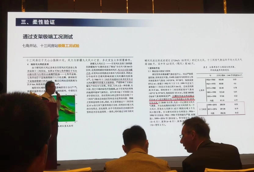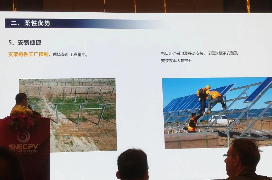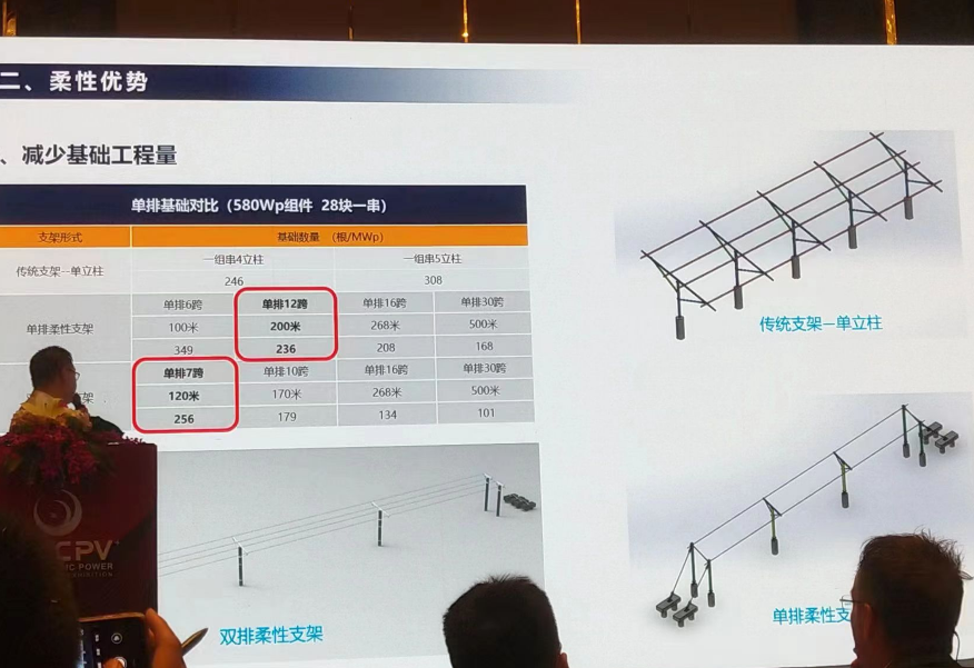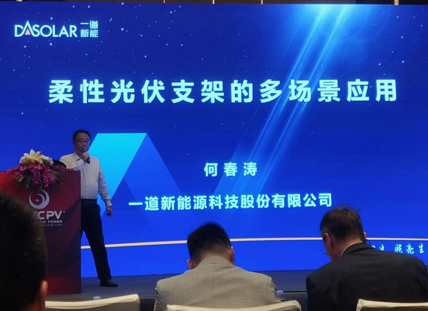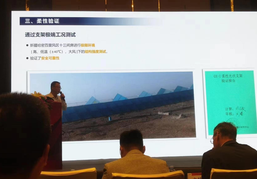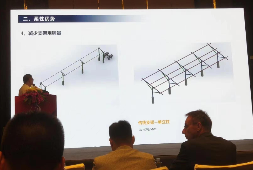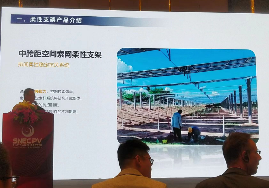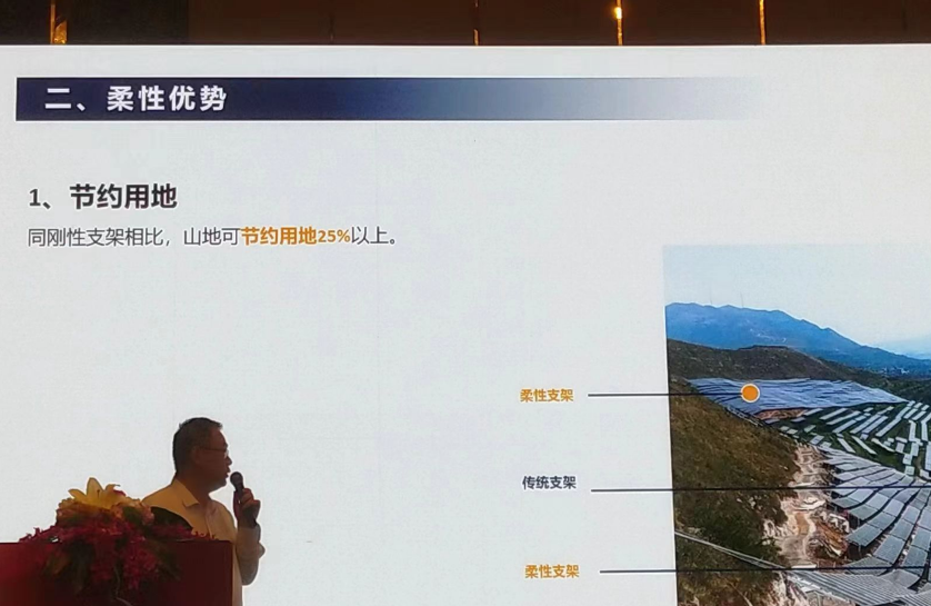2024-06-13 09:00-12:00 論壇名稱:全球光伏前沿技術大會(1)系統平衡(heng)部件 一道新能源科技股份有限公司的(de)何春濤先生(sheng)以柔(rou)性光伏(fu)支(zhi)架(jia)(jia)(jia)的(de)多場景應(ying)用為(wei)主題(ti),介紹了(le)幾種柔(rou)性支(zhi)架(jia)(jia)(jia)產品:中跨距空間索(suo)網(wang)柔(rou)性支(zhi)架(jia)(jia)(jia)、排間柔(rou)性穩定抗風系統、柔(rou)性平單軸跟(gen)蹤支(zhi)架(jia)(jia)(jia)。 柔性光伏支(zhi)架有許(xu)多優(you)勢。第(di)一是節約用地(di):柔性支(zhi)架同剛性支(zhi)架相比,山地(di)可節約用地(di)25%以上(shang)。第(di)二高凈空、大跨距。這樣的降低(di)40%左右(you)成(cheng)本。第(di)三減(jian)少(shao)基礎工程量。減(jian)少(shao)支(zhi)架用鋼量。傳(chuan)統支(zhi)架一單立柱 32(平地(di))-40(山地(di))噸/MWp,柔性支架在(zai)25-30噸之(zhi)間。 第五安(an)(an)裝便捷。支架(jia)構(gou)件工廠預制(zhi),現場裝配工程量小; 光伏(fu)組件采用(yong)滑移法安(an)(an)裝,無需(xu)對(dui)檁條安(an)(an)裝孔(kong),安(an)(an)裝效率大幅(fu)提升。 柔(rou)性支(zhi)架(jia)已經通過支(zhi)架(jia)極端工況(kuang)測,公司在新(xin)疆哈(ha)密百里風區十(shi)三(san)間房進行的(de)極限環境(jing)[高、低(di)溫(wen)(±40℃),大風]下(xia)的(de)結構強度測試,驗證了(le)安全可靠性。 最后(hou)何春濤先生分享了多種(zhong)場景下的(de)應(ying)用。山地(di)方面(mian)有山西(xi)沁(qin)縣項目、海南(nan)樂(le)東項目;漁(yu)光方面(mian)的(de)應(ying)用有海南(nan)安定龍(long)湖項目;分布式方面(mian)有七河生物項目等(deng)等(deng)。
