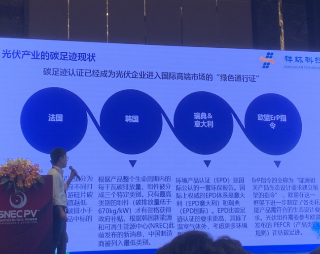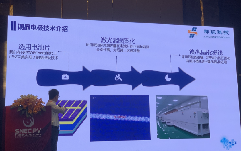 王璐先生(sheng)在全球光伏前沿技術大會(3):晶硅太陽(yang)能電池與輔材(cai)針對如(ru)何提高光伏產品國際(ji)競爭力進(jin)行(xing)分享。 王(wang)璐先生(sheng)指出碳足跡(ji)認證已(yi)經成為光伏企業進(jin)入國(guo)際高端市場的(de)“綠色通行證”。根據產(chan)品整個生(sheng)命(ming)周期內的(de)每千瓦碳排放量,組件被分(fen)成(cheng)三個特定類(lei)別(bie)。只有最高(gao)類(lei)別(bie)的組件(碳(tan)排(pai)放量低于(yu)670kg/kW) 才有資(zi)格獲得政府(fu)補貼。根據韓國新能源和可再(zai)生能源中(zhong)心(NREC)此前發布的新消息,中(zhong)國制(zhi)造商被列(lie)入最低類(lei)別(bie)。 與傳統工(gong)藝的碳排放對比,低(di)排放制備(bei)和低(di)耗能確保了(le)銅晶電極(ji)技術(shu)(shu)的碳達標。銅晶電極(ji)技術(shu)(shu),選用電池片-在N型TOPCon電池片上?己(ji)經完美實(shi)現(xian)了銅(tong)晶電極技術、激光(guang)器圖案化-使用超短脈沖激光器(qi)在電池片的正(zheng)面和(he)背面分別開槽,為后續工藝做準備、鎳/銅(tong)晶化柵線-采用我們的(de)設備,對(dui)電池片的(de)正面(mian)和背面(mian)開(kai)槽(cao)處(chu)進行(xing)鎳(nie)/銅(tong)晶(jing)化處(chu)理(li)。