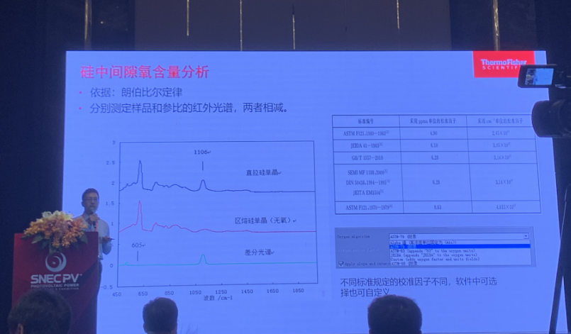 華瑞先(xian)生在(zai)全(quan)球光伏(fu)前沿(yan)技術(shu)大(da)會(3):晶硅光伏(fu)組(zu)件(jian)及(ji)質(zhi)量保證針對賽(sai)默飛分子光譜技術(shu)在光(guang)伏(fu)產業鏈的分(fen)析(xi)解決(jue)方案進行(xing)分(fen)享(xiang)。 首先,華先生介紹了分子光譜(pu)(pu)產(chan)品(pin)線:傅(fu)里葉變換(huan)紅外(wai)光譜(pu)(pu)儀、傅(fu)里葉變換(huan)近紅外(wai)光譜(pu)(pu)儀、拉(la)曼光譜(pu)(pu)儀。 其(qi)次具體介(jie)紹了太陽能電(dian)池生產流程(cheng)的(de)解決方案: 1.碳、氧(yang)含量分析 2.羥基值(zhi)測定 3.元素(su)含(han)量測(ce)定 4.VA含量測定和(he)改性分析 5.HJT微結構因子 6.硅薄膜晶化率 7.CIGS薄膜元素分析 其中硅中氧、碳含量分析的依據:朗伯比(bi)爾(er)定律、吸收(shou)率與組分的濃度(du)和光程(紅外(wai)光在(zai)樣品內經過的路程)成(cheng)正比(bi):A=abc。 Nicolet iG5o Wafer Analysis System 是一(yi)款專(zhuan)為工(gong)業(ye)應用推出(chu)的(de)(de)FT-1R 系(xi)統,專(zhuan)為半(ban)導體(ti)晶(jing)圓(yuan)的(de)(de)分(fen)析而(er)設(she)計(ji)。基(ji)于(yu)功能(neng)強大的(de)(de)Nicolet iG50 傅里葉紅外光譜儀(yi),Nicolet Wafer Analysis System 能(neng)完美的(de)(de)滿足(zu)半(ban)導體(ti)企業(ye)產品質控的(de)(de)需(xu)求(qiu)。支(zhi)(zhi)持(chi)100mm-300mm的(de)(de)晶(jing)圓(yuan)(兼容多個(ge)尺(chi)寸(cun))、可定制化機臺(tai)配置、易學易用的(de)(de)操作界面、自(zi)動進樣(yang)(可選(xuan)支(zhi)(zhi)持(chi)E84和SMIF)、支(zhi)(zhi)持(chi)標準(zhun)SEMl軟件通信(SECS/GEM)、機械臂自(zi)動取樣(yang),提高檢測速度、滿足(zu)半(ban)導體(ti)企業(ye)對檢測速度和潔凈程(cheng)度的(de)(de)要求(qiu)。 最后,華(hua)先生介(jie)紹了光伏(fu)玻(bo)璃(li)主要(yao)原(yuan)料包(bao)括石(shi)(shi)(shi)英砂、石(shi)(shi)(shi)灰石(shi)(shi)(shi)、純堿(jian)等,為了保證該類(lei)玻(bo)璃(li)具有(you)足夠的透光率、耐久性及安全性,需要(yao)對原(yuan)材(cai)料成品玻(bo)璃(li)進(jin)行嚴格的質量管控。 對(dui)于(yu)(yu)成(cheng)品(pin)光(guang)(guang)伏玻(bo)璃(li)(li),除了(le)常規的(de)主量元(yuan)素(su)Na、 Ca、 Si以(yi)外,Fe元(yuan)素(su)尤(you)其重(zhong)要,直接決定了(le)玻(bo)璃(li)(li)的(de)透光(guang)(guang)率(lv),透光(guang)(guang)率(lv)直接決定光(guang)(guang)伏玻(bo)璃(li)(li)的(de)儲能效率(lv)。同時Fe元(yuan)素(su)含量越低,透光(guang)(guang)率(lv)越高(gao),然而使(shi)用(yong)化學(xue)法無法很好(hao)的(de)分(fen)(fen)析低含量的(de)Fe元(yuan)素(su),ICP或(huo)分(fen)(fen)光(guang)(guang)光(guang)(guang)度(du)計對(dui)于(yu)(yu)成(cheng)品(pin)玻(bo)璃(li)(li)而言(yan)前處(chu)理(li)較(jiao)困(kun)難,人為誤差較(jiao)大,整個(ge)測試周(zhou)期長,效率低,無法(fa)較(jiao)好(hao)的(de)進行品(pin)控。