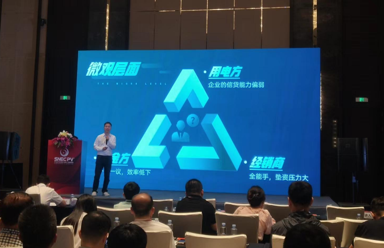 浙江銘安(an)潮(chao)居(ju)智能(neng)科技有限公司總經理孟黎華先生跟我們分享(xiang)了小微工(gong)商(shang)業光伏的新思路。 孟先(xian)生強調,小(xiao)微企(qi)(qi)業是國民經濟的(de)基石(shi)和社會發展的(de)穩定器。電價(jia)是工商業用(yong)戶最敏感的(de)生產要(yao)素。存量(liang)小(xiao)微企(qi)(qi)業光伏裝機(ji)潛(qian)在(zai)(zai)需求可達290GW,83%企(qi)(qi)業的(de)需求在(zai)(zai)3MW以下,74%在(zai)(zai)1MW以下,61%在(zai)(zai)500K以下。 宏觀(guan)層(ceng)面(mian)看(kan),工商(shang)業(ye)分時電(dian)價政(zheng)策使中(zhong)午(wu)執行谷段(duan)電(dian)價省份增(zeng)多,工商(shang)業(ye)投資觀(guan)望(wang)情緒嚴重。微觀(guan)層(ceng)面(mian)看(kan),用(yong)電(dian)方(企業(ye))信(xin)貸能力弱(ruo),資金方一單一議效率低下,經銷商(shang)墊資壓力大 。 針對這(zhe)個局面,他提(ti)出(chu)了一(yi)(yi)(yi)種四位一(yi)(yi)(yi)體的(de)解決(jue)方(fang)案。其中金(jin)融(rong)要點在(zai)于,容(rong)量要求 ≥200K,融(rong)資期限最長20年,融(rong)資利(li)率6.2%起,還款(kuan)(kuan)方(fang)式按(an)季(ji)支付,寬限期按(an)季(ji)付息(xi),后續等額(e)本息(xi)按(an)季(ji)還,并網方(fang)式適(shi)用于余(yu)電(dian)上網、全額(e)上網,融(rong)資額(e)度:單個項目(mu)原則(ze)上不超(chao)2000萬,提(ti)前還款(kuan)(kuan)約定(ding):2年內申請提(ti)前還款(kuan)(kuan),收取一(yi)(yi)(yi)定(ding)比例的(de)補償金(jin)。 孟先生(sheng)還表示,該產品優勢在(zai)于融資(zi)期(qi)限長、 裝機起(qi)點(dian)低、服務效率高、合作模(mo)式(shi)多。智能化運維可以帶(dai)來平臺保(bao)障(zhang)(zhang)、質量保(bao)障(zhang)(zhang)、人員保(bao)障(zhang)(zhang)和時效保(bao)障(zhang)(zhang)。 最后,他呼吁眾同行和小(xiao)微企業一起創造更美好的明天!