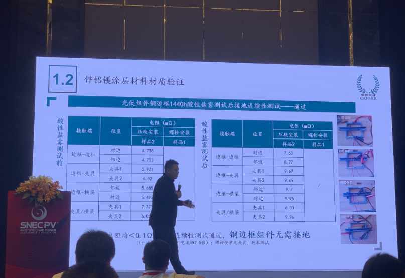 黃曉峰先(xian)生在全球光(guang)(guang)伏(fu)(fu)前(qian)沿技術大會(3):晶硅光(guang)(guang)伏(fu)(fu)組件及質量保證針對光(guang)(guang)伏(fu)(fu)組件鋼邊框全球化的進程和趨(qu)勢(shi)進行分(fen)享(xiang)。 首先,黃先生介(jie)紹了(le)鋼邊(bian)框(kuang)的優勢: 1.防(fang)掉落:高強(qiang)鋼(gang)邊(bian)框對應的彈性壓(ya)塊利用(yong)彈力卡在(zai)高強(qiang)鋼(gang)邊(bian)框型(xing)腔內,安裝過程不容易掉落。 2抗撕(si)裂:高強鋼(gang)邊框對(dui)應的彈性壓塊與高強鋼(gang)邊框的接觸面積大,且雙層厚度補(bu)強,杜絕(jue)組件安裝(zhuang)孔撕(si)裂風險(xian)。 3.易(yi)安裝:高強(qiang)鋼(gang)邊框對應的(de)彈性壓塊預裝螺母,只需單手電動工具鎖固,組件安裝速度提升60%, 4.免維護:新穎的螺母(mu)防轉設計牢固可靠,不易松動,大(da)(da)大(da)(da)減少后期(qi)維護成本(ben) 5.高承(cheng)壓(ya)(ya):組件(jian)在受(shou)到正(zheng)面荷載(暴風、暴雪(xue))高強鋼邊框對(dui)應(ying)的彈性壓(ya)(ya)塊(托塔(ta)李(li)天王(wang))對(dui)鋼邊框型腔關鍵部位起到局部補強作用。 其次,介(jie)紹(shao)了鋅鋁鎂涂(tu)層材料材質驗證、鋼邊框(kuang)強度驗證。中南大學風洞(dong)實玲室(shi)是(shi)“高速鐵路建(jian)造技木國(guo)家工程實驗室(shi)的六大實驗平臺之一,于2012年完成并正(zheng)式投入使用(yong)。實驗室(shi)共有兩個試驗段(duan),其中低速試驗段(duan)寬12米(mi)、高3.5米(mi)、長18米(mi),風速范國(guo)0-20米(mi)/秒,流(liu)度小(xiao)于1%;高速試驗段(duan)寬3米(mi)、高3米(mi)。長15米(mi),風速范國(guo)0-94米(mi)秒,流(liu)度小(xiao)于0.5%。該風洞(dong)具(ju)有試驗段(duan)尺寸大,設(she)計(ji)風速高,流(liu)場品質好(hao)等。 最后介(jie)紹了公司主要產(chan)品為光伏(fu)鋼邊(bian)框和(he)光優(you)支架,是國內率(lv)先將鋅(xin)鋁鐵涂(tu)層(ceng)鋼型材(cai)引入到光伏(fu)支架的公司,也是目前市場(chang)(chang)上少數能夠量產(chan)光伏(fu)組(zu)件(jian)鋼邊(bian)框的公司。鋼邊(bian)框是光伏(fu)組(zu)件(jian)生產(chan)制造(zao)過程中所用的重(zhong)要輔材(cai),因其成本和(he)性能優(you)勢用于替代市場(chang)(chang)上常(chang)用的鋁邊(bian)框。