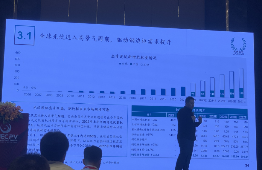 蓋錫咨詢-13日SNEC會議筆記 -SNEC(2024)前沿技術大會-晶硅光伏組件及質量保證針對光伏組件鋼邊框全球化的進程和趨勢2024-06-13 19:27來源:gessey瀏覽數:218次