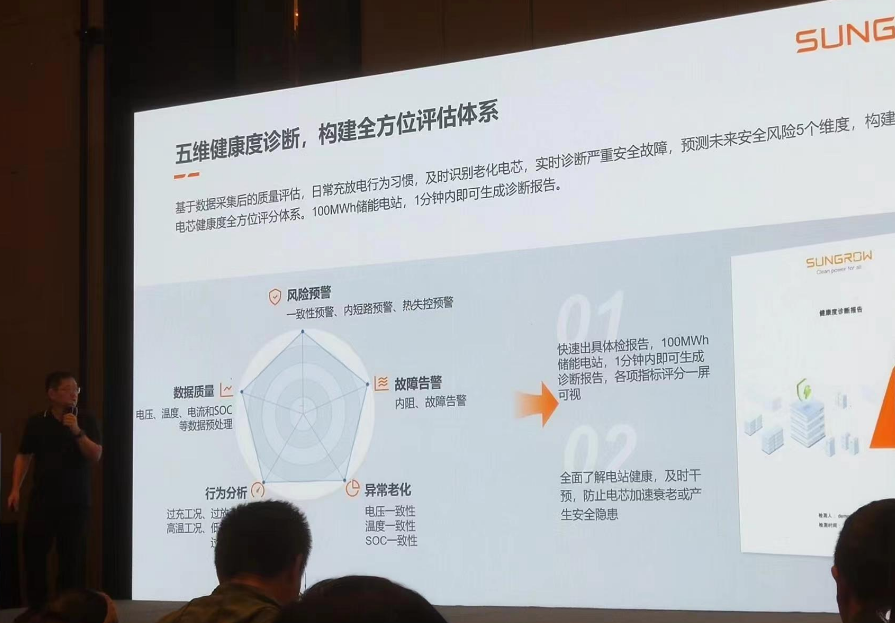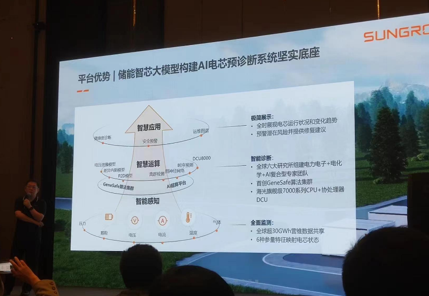 陽光電源(yuan)(yuan)股份有限公司智慧(hui)能源(yuan)(yuan)產品中心總(zong)經理許盛先生以從芯(xin)出發,護航儲能安全為主題介紹(shao)了陽光電源(yuan)(yuan) iSolarBPS 電芯(xin)預(yu)診斷系統。 全(quan)球儲能(neng)迎來高速發展期,預(yu)計(ji)2030年全(quan)球儲能(neng)裝機量為372GWh。雙碳目標下,驅動全(quan)球儲能(neng)需求(qiu)。盈利(li)模式逐步(bu)完善(shan),儲能(neng)經濟性進一步(bu)提升。但據不(bu)完全(quan)統計(ji),全(quan)球已報道儲能(neng)事(shi)故達69起。其中電芯(xin)內短路引發的熱失控是儲能(neng)安全(quan)事(shi)故誘發主因之一。傳統儲能(neng)電芯(xin)安全(quan)診斷(duan)面臨監控粗放、故障難查、預(yu)警(jing)缺失的情況。針對這些痛(tong)點(dian),許先生推出了依(yi)托儲能(neng)智芯(xin)大模型(xing)AI的iSolarBPS 電芯(xin)預(yu)診斷(duan)系(xi)統。 該系(xi)統依(yi)托平臺優勢,全(quan)球(qiu)超過30GWh營維數據共(gong)享,通過風險預警、數據質量、故障告(gao)警、行為分析、異常(chang)老化五個維度進行健康診斷(duan)。100MWh儲(chu)能(neng)電站,1分鐘內(nei)即可生成診斷(duan)報告(gao)。在運(yun)維方(fang)面,可提(ti)升運(yun)維效(xiao)率30%以上。