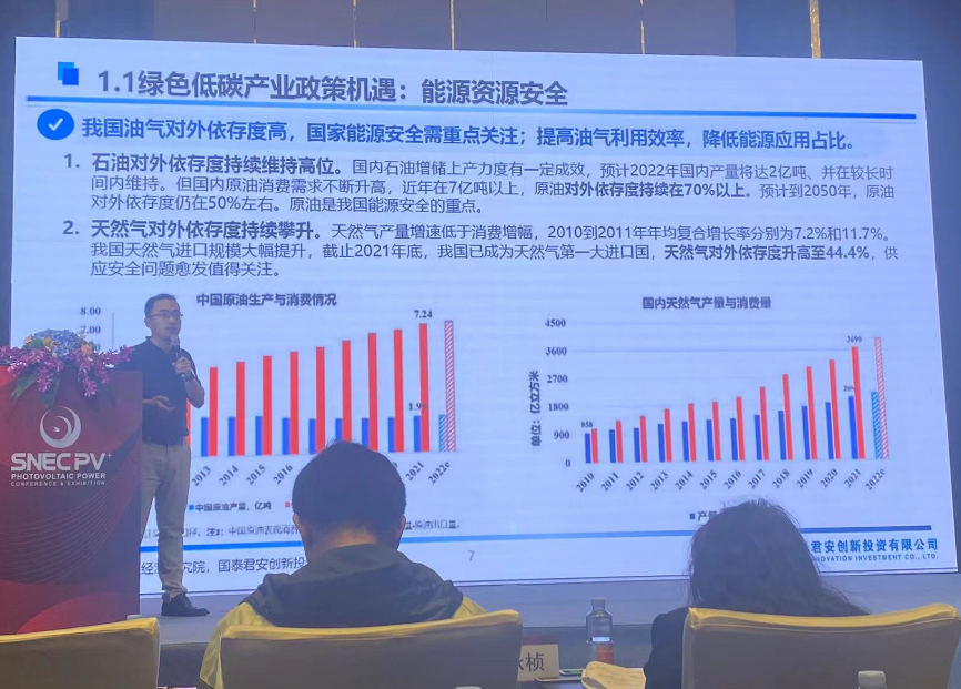 在(zai)6.14日第8屆石墨烯(xi)及新(xin)材(cai)料前(qian)沿應用技(ji)術(shu)高峰(feng)討論上李(li)培旭(xu)先生就能源轉型和(he)新(xin)材(cai)料產業價值進行(xing)匯(hui)報。 首先(xian),講述國(guo)家能源資源安全,其中原油對外(wai)依存(cun)度仍(reng)在50%左右,天然氣(qi)對外(wai)依存(cun)度升高至(zhi)44.4%。 其次,在(zai)可(ke)(ke)再(zai)生能(neng)(neng)源(yuan)(yuan)(yuan)轉型中,2023年(nian)(nian)可(ke)(ke)再(zai)生能(neng)(neng)源(yuan)(yuan)(yuan)發(fa)電(dian)(dian)(dian)總(zong)(zong)裝(zhuang)機(ji)達(da)15.16億千(qian)瓦,占(zhan)(zhan)(zhan)全國發(fa)電(dian)(dian)(dian)總(zong)(zong)裝(zhuang)機(ji)的51.9%,在(zai)全全球可(ke)(ke)再(zai)生能(neng)(neng)源(yuan)(yuan)(yuan)發(fa)電(dian)(dian)(dian)總(zong)(zong)裝(zhuang)機(ji)中的比重接近(jin)(jin)40%;2023年(nian)(nian)可(ke)(ke)再(zai)生能(neng)(neng)源(yuan)(yuan)(yuan)新增裝(zhuang)機(ji)3.05億千(qian)瓦,占(zhan)(zhan)(zhan)全國新增發(fa)電(dian)(dian)(dian)裝(zhuang)機(ji)82.7%,占(zhan)(zhan)(zhan)全球新增裝(zhuang)機(ji)的一半;2023年(nian)(nian)可(ke)(ke)再(zai)生能(neng)(neng)源(yuan)(yuan)(yuan)發(fa)電(dian)(dian)(dian)量近(jin)(jin)3萬億千(qian)瓦時,接近(jin)(jin)全社(she)會用電(dian)(dian)(dian)量的1/3。2023年(nian)(nian)我(wo)國新增能(neng)(neng)源(yuan)(yuan)(yuan)生產總(zong)(zong)量中,非化石能(neng)(neng)源(yuan)(yuan)(yuan)占(zhan)(zhan)(zhan)比超過40%。 同時,IEA預(yu)測可(ke)再(zai)生能(neng)源在全球(qiu)發(fa)電組合中將從2022年(nian)的(de)29%上升到(dao)2025年(nian)的(de)35%。重點發(fa)展高端(duan)新材(cai)(cai)料(liao),氫能(neng)材(cai)(cai)料(liao),生物基材(cai)(cai)料(liao),實(shi)現低碳減排。 最后祝愿論壇(tan)越(yue)來(lai)越(yue)好(hao),歡迎大家(jia)在低碳(tan)領域互動。
