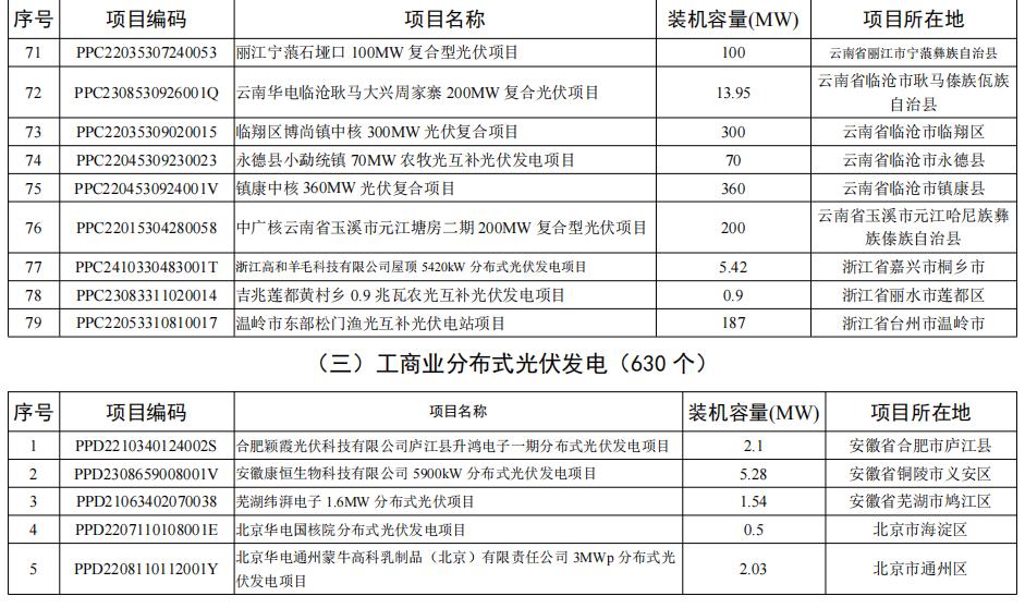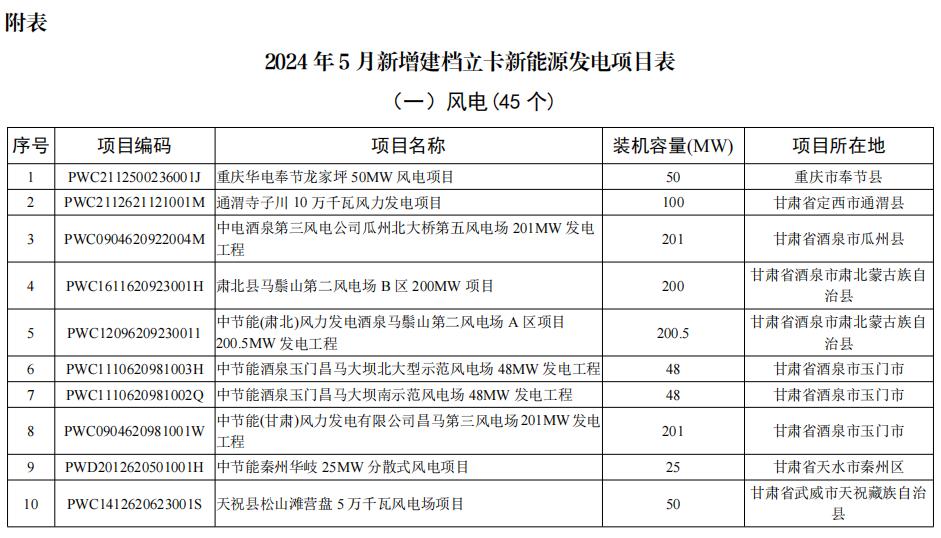 6月25日(ri),國家能源(yuan)局(ju)發(fa)布關于2024年(nian)5月全(quan)國新增建檔立卡新能源(yuan)發(fa)電(dian)(dian)項(xiang)(xiang)(xiang)(xiang)目(mu)(mu)情(qing)況的公告。2024年(nian)5月,全(quan)國新能源(yuan)發(fa)電(dian)(dian)新增建檔立卡項(xiang)(xiang)(xiang)(xiang)目(mu)(mu)共763個(ge),其中(zhong)風(feng)電(dian)(dian)45個(ge),非自然(ran)人光伏發(fa)電(dian)(dian)項(xiang)(xiang)(xiang)(xiang)目(mu)(mu)709個(ge),生物(wu)質發(fa)電(dian)(dian)項(xiang)(xiang)(xiang)(xiang)目(mu)(mu)9個(ge),項(xiang)(xiang)(xiang)(xiang)目(mu)(mu)包括多個(ge)配儲項(xiang)(xiang)(xiang)(xiang)目(mu)(mu),其中(zhong)風(feng)電(dian)(dian)項(xiang)(xiang)(xiang)(xiang)目(mu)(mu)45個(ge)共3558.65MW,光伏項(xiang)(xiang)(xiang)(xiang)目(mu)(mu)79個(ge)共6810.155MW,分布式光伏項(xiang)(xiang)(xiang)(xiang)目(mu)(mu)630個(ge)共717.918MW,生物(wu)質發(fa)電(dian)(dian)項(xiang)(xiang)(xiang)(xiang)目(mu)(mu)9個(ge)共229.94MW。 原文如下: 關于2024年5月(yue)全國新增建檔(dang)立卡新能源(yuan)發電項目情況的公告 (2024年6月) 組織開(kai)展可(ke)再(zai)生能(neng)(neng)(neng)(neng)源(yuan)(yuan)項目(mu)建檔立卡(ka)是全(quan)面準(zhun)確掌握全(quan)國可(ke)再(zai)生能(neng)(neng)(neng)(neng)源(yuan)(yuan)發電(dian)項目(mu)情況、進一步加強(qiang)行業(ye)管理(li)和服務、支撐綠色電(dian)力(li)證書核發和交易等工作(zuo)的重要基礎工作(zuo)。根(gen)據《國家發展改革委 財政部 國家能(neng)(neng)(neng)(neng)源(yuan)(yuan)局關于做好可(ke)再(zai)生能(neng)(neng)(neng)(neng)源(yuan)(yuan)綠色電(dian)力(li)證書全(quan)覆蓋(gai)工作(zuo) 促(cu)進可(ke)再(zai)生能(neng)(neng)(neng)(neng)源(yuan)(yuan)電(dian)力(li)消費的通知(zhi)》(發改能(neng)(neng)(neng)(neng)源(yuan)(yuan)〔2023〕1044號(hao))、《國家能(neng)(neng)(neng)(neng)源(yuan)(yuan)局關于組織開(kai)展可(ke)再(zai)生能(neng)(neng)(neng)(neng)源(yuan)(yuan)發電(dian)項目(mu)建檔立卡(ka)有關工作(zuo)的通知(zhi)》,自2024年6月(yue)起,每月(yue)下(xia)(xia)旬公(gong)布上月(yue)新(xin)(xin)增(zeng)新(xin)(xin)能(neng)(neng)(neng)(neng)源(yuan)(yuan)發電(dian)項目(mu)建檔立卡(ka)情況(包括風電(dian)、非自然人光伏發電(dian)和生物質發電(dian))。現將(jiang)2024年5月(yue)份全(quan)國新(xin)(xin)增(zeng)建檔立卡(ka)情況公(gong)告如(ru)下(xia)(xia)。 2024年5月,全國新能(neng)源發電新增(zeng)建檔立(li)卡項目共763個(ge)(ge),其中風電45個(ge)(ge),非(fei)自然人光(guang)伏發電項目709個(ge)(ge),生物質發電項目9個(ge)(ge)。 附(fu)表(biao):2024年5月全國新(xin)增建檔立卡新(xin)能源(yuan)發電項(xiang)目 國家能源局 2024年(nian)6月24日(ri) (圖片可放大(da)觀看或 添加(jia)小編(bian)微信領(ling)取(qu)附件(jian) 16633583932)