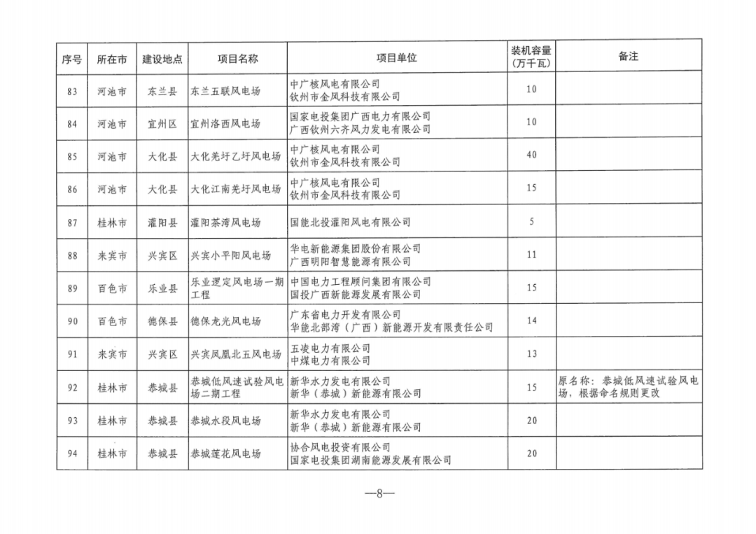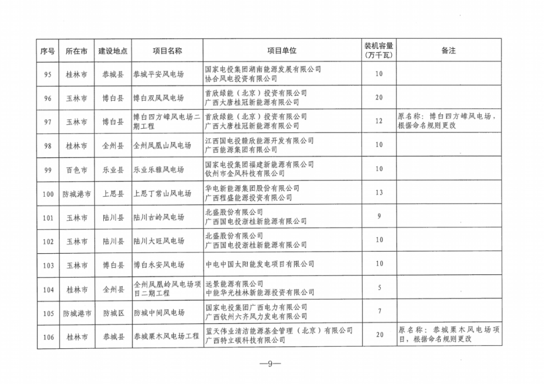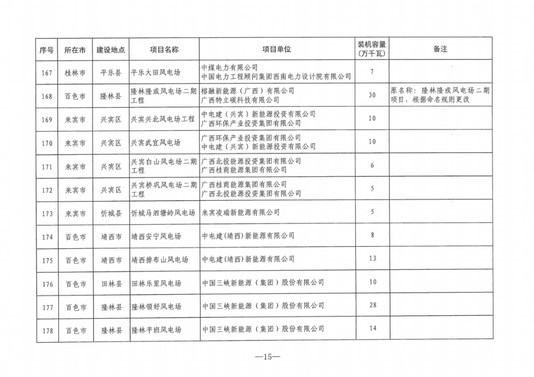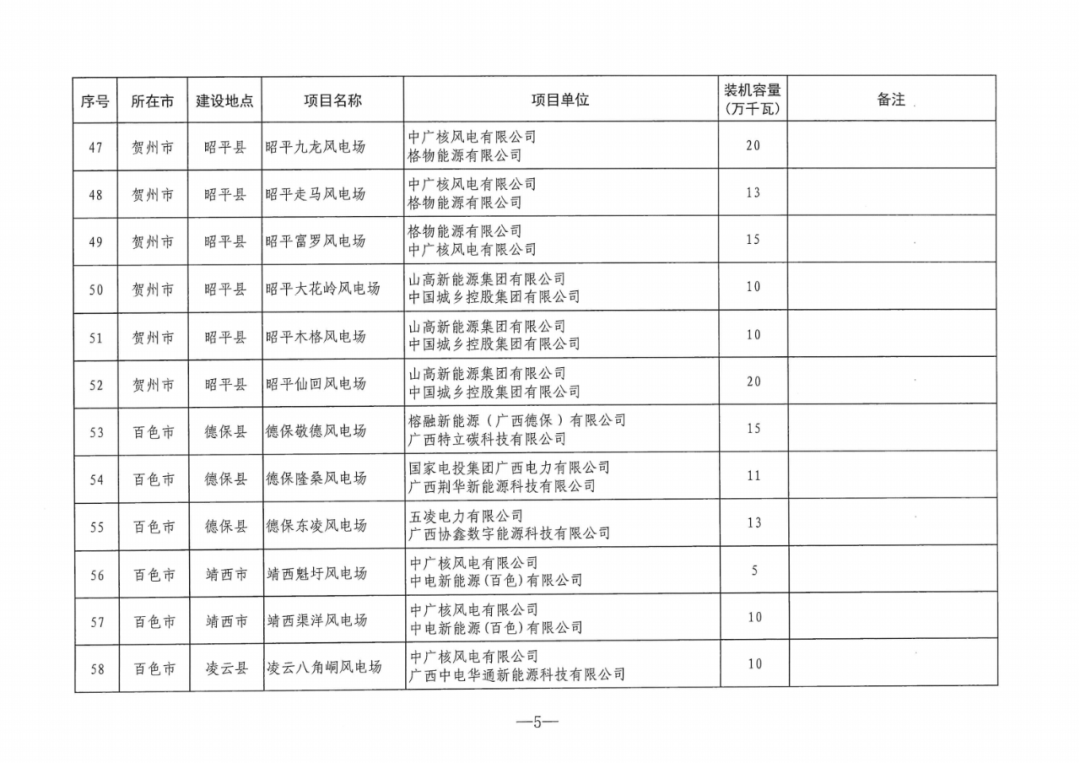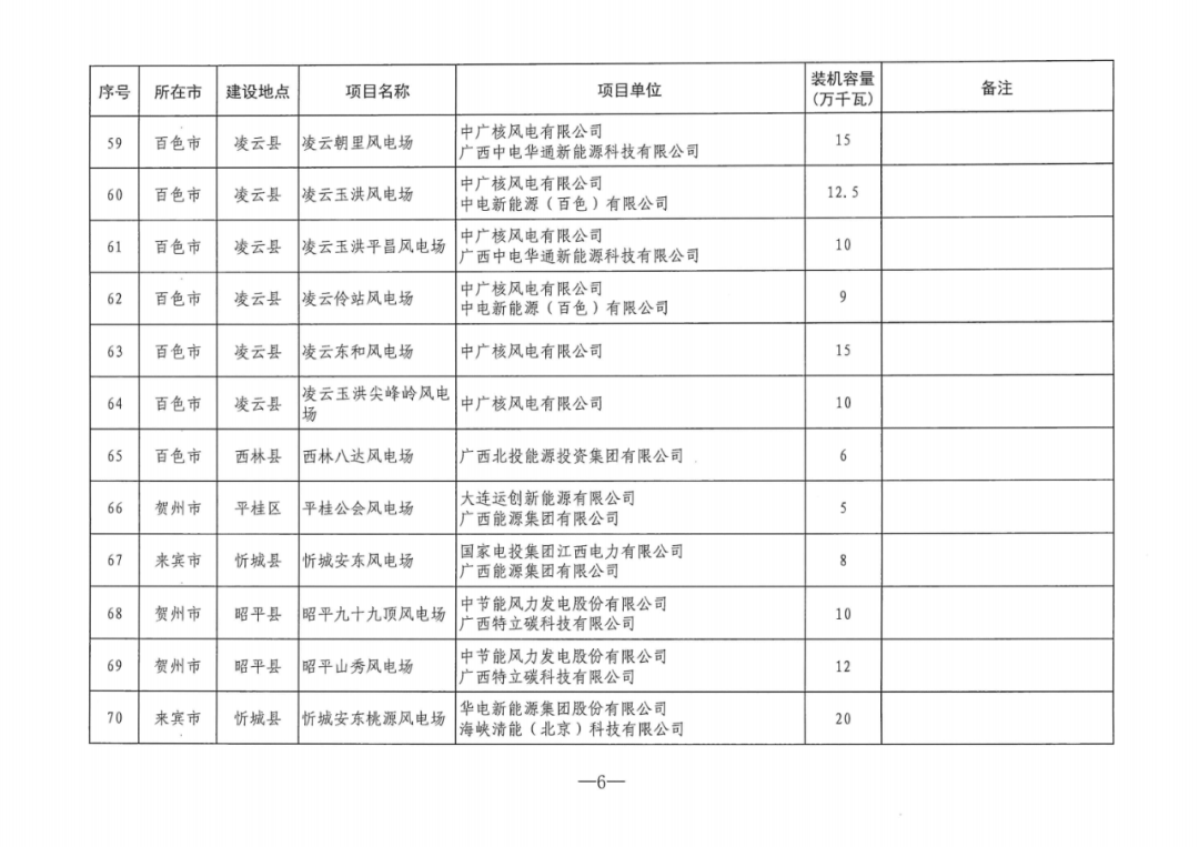 7月24日,廣西能(neng)源局印發(fa)《關于2024年度陸上風電、集中式光(guang)伏發(fa)電(dian)項(xiang)目建設方案的通知》(簡稱“通知”)。 《通知》指(zhi)出,列入廣(guang)西2024年度(du)陸(lu)(lu)上風(feng)電、集中(zhong)式(shi)光伏發電項目建設方案的(de)項目共209個,裝機(ji)(ji)容量2644.5萬千瓦(wa)(wa)。其(qi)中(zhong),集中(zhong)式(shi)光伏發電項目26個,裝機(ji)(ji)容量約312萬千瓦(wa)(wa);陸(lu)(lu)上風(feng)電項目183個,裝機(ji)(ji)容量2332.5萬千瓦(wa)(wa)。 原文(wen)見下: 廣西壯族自治區能源局關于印發2024年度陸上風電、集中式光伏發電項目建設方案的通知 各市(shi)發(fa)展改革委,各電網企業,有關(guan)項(xiang)目單(dan)位: 為貫(guan)徹落實(shi)自(zi)治區黨委、政府決策(ce)部(bu)署,根據(ju)國家、自(zi)治區有(you)關文件要求(qiu),我局依據(ju)競爭性配置評(ping)分結果及有(you)關規則統籌制定(ding)了(le)2024年度(du)陸上(shang)風(feng)電(dian)、集中式(shi)光(guang)伏發(fa)電(dian)項目(mu)建設方(fang)案。現印發(fa)你們,并就有(you)關事項通知如下: 一、列(lie)入2024年度陸(lu)上風電、集(ji)中(zhong)(zhong)式光伏發電項目(mu)建設(she)方案的項目(mu)共209個(ge),裝(zhuang)機(ji)容量2644.5萬千(qian)(qian)瓦(wa)。其(qi)中(zhong)(zhong),陸(lu)上風電項目(mu)183個(ge),裝(zhuang)機(ji)容量2332.5萬千(qian)(qian)瓦(wa),集(ji)中(zhong)(zhong)式光伏發電項目(mu)26個(ge),裝(zhuang)機(ji)容量約(yue)312萬千(qian)(qian)瓦(wa)。 二(er)、列入建(jian)設方(fang)案的項目須抓緊開展前期(qi)工作,從建(jian)設方(fang)案發布之(zhi)日起(qi),風電項目要(yao)求9個月內(nei)申(shen)報(bao)核準(zhun)并(bing)于核準(zhun)后兩(liang)年(nian)半(ban)內(nei)全(quan)容量并(bing)網(wang),光伏項目要求兩年內全容量建成投產(chan)。項目單位為(wei)聯合(he)體的(de)(de),需按(an)(an)申(shen)報時聯合(he)體協(xie)議(yi)明(ming)確的(de)(de)股(gu)比注冊成立具(ju)有獨立法人資(zi)格的(de)(de)合(he)資(zi)公司,并(bing)以合(he)資(zi)公司為(wei)主(zhu)體申(shen)報核準或備(bei)案。核準及備(bei)案具(ju)體要求按(an)(an)照《廣西(xi)壯(zhuang)族自治(zhi)區(qu)發(fa)展(zhan)和(he)改革(ge)(ge)委(wei)(wei)員會(hui)關(guan)于(yu)調整(zheng)陸上風電項目核準權限的(de)(de)通(tong)知》(桂發(fa)改新能〔2023〕726號)、《廣西(xi)壯(zhuang)族自治(zhi)區(qu)發(fa)展(zhan)和(he)改革(ge)(ge)委(wei)(wei)員會(hui)關(guan)于(yu)光伏電站項目備(bei)案有關(guan)事項的(de)(de)通(tong)知》(桂發(fa)改新能〔2023〕767號)、《廣西(xi)壯(zhuang)族自治(zhi)區(qu)發(fa)展(zhan)和(he)改革(ge)(ge)委(wei)(wei)員會(hui)關(guan)于(yu)進一步做好陸上風電項目核準工(gong)作的(de)(de)通(tong)知》(桂發(fa)改新能〔2024〕47號)等有關(guan)規定執行。 三、列入(ru)本方案的項(xiang)目(mu)須配(pei)建一(yi)定(ding)比例儲(chu)(chu)能(neng)設施或購買相應比例的共享儲(chu)(chu)能(neng)服務。陸(lu)上風(feng)電(dian)、集(ji)中式(shi)光(guang)伏發(fa)電(dian)項(xiang)目(mu)配(pei)置比例分別為裝機(ji)容量的20%、2小時和10%、2小時。具(ju)體按《廣西壯族自治區能(neng)源(yuan)局關于(yu)進一(yi)步規(gui)范(fan)新能(neng)源(yuan)發(fa)電(dian)項(xiang)目(mu)配(pei)置儲(chu)(chu)能(neng)的通(tong)知》(桂能(neng)新能(neng)〔2024〕11號)有關規(gui)定(ding)執行(xing)。 四、按照《國家發展改革委(wei)辦公廳 國家能(neng)(neng)源(yuan)局(ju)綜(zong)合(he)司關于做(zuo)好(hao)新能(neng)(neng)源(yuan)配套(tao)(tao)送(song)出(chu)工程(cheng)投資建(jian)設有關事項(xiang)(xiang)(xiang)的通知》(發改辦運行〔2021〕445號)要求(qiu),考慮規劃(hua)整體性和運行需要,優先電網(wang)(wang)(wang)企(qi)業(ye)承建(jian)新能(neng)(neng)源(yuan)配套(tao)(tao)送(song)出(chu)工程(cheng),滿足新能(neng)(neng)源(yuan)并(bing)(bing)網(wang)(wang)(wang)需求(qiu),確保送(song)出(chu)工程(cheng)與電源(yuan)建(jian)設的進度相匹配。電網(wang)(wang)(wang)企(qi)業(ye)按要求(qiu)積(ji)極(ji)做(zuo)好(hao)列入(ru)(ru)(ru)建(jian)設方案項(xiang)(xiang)(xiang)目的并(bing)(bing)網(wang)(wang)(wang)服(fu)務工作,進一步優化流程(cheng),縮(suo)短審批周(zhou)期,指導新能(neng)(neng)源(yuan)項(xiang)(xiang)(xiang)目企(qi)業(ye)做(zuo)好(hao)項(xiang)(xiang)(xiang)目接(jie)入(ru)(ru)(ru)各項(xiang)(xiang)(xiang)工作,提(ti)前(qian)謀劃(hua)、持(chi)續加強網(wang)(wang)(wang)架建(jian)設,提(ti)高新能(neng)(neng)源(yuan)項(xiang)(xiang)(xiang)目接(jie)入(ru)(ru)(ru)和消納(na)能(neng)(neng)力。對電網(wang)(wang)(wang)企(qi)業(ye)建(jian)設有困難或建(jian)設時(shi)序不(bu)匹配的新能(neng)(neng)源(yuan)配套(tao)(tao)送(song)出(chu)工程(cheng),在(zai)自(zi)愿(yuan)原則下可(ke)由新能(neng)(neng)源(yuan)企(qi)業(ye)自(zi)行建(jian)設,接(jie)入(ru)(ru)(ru)系統方案需服(fu)從(cong)自(zi)治區統籌安排。 五、各項目單(dan)位在(zai)申報時(shi)已出(chu)具(ju)項目取(qu)得(de)的自然資源、生態環(huan)境(jing)、林業等要素保障(zhang)部門支持(chi)性意(yi)見,列入本建(jian)設方案(an)后如因涉及永久基本農田、自然保護(hu)地、飲用水水源保護(hu)區(qu)、公益林、生態保護(hu)紅線等因素導致規模減少、無法開工或調出(chu)本建(jian)設方案(an)的,相關風險(xian)和(he)責任由項目單(dan)位自行承(cheng)擔(dan)。 六、請各(ge)市發(fa)(fa)展(zhan)改(gai)革(ge)委進一步做好(hao)轄區(qu)內風電、光伏項(xiang)(xiang)(xiang)目(mu)(m