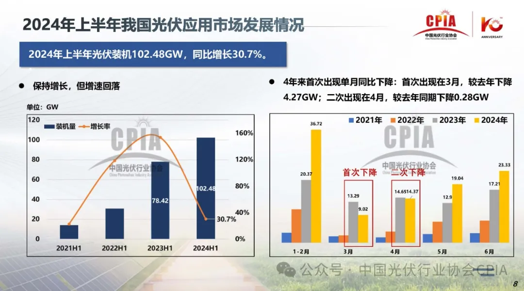 2024年7月25日(ri),由中國光(guang)(guang)(guang)伏行業(ye)協(xie)(xie)會(hui)主(zhu)辦、浙江(jiang)正(zheng)泰(tai)新(xin)能源(yuan)開發有限公司承辦的“光(guang)(guang)(guang)伏行業(ye)2024年(nian)上半年(nian)發展回顧與下半年(nian)形(xing)勢(shi)展望研(yan)討會(hui)”在浙江(jiang)溫州(zhou)成功舉辦。中國光(guang)(guang)(guang)伏行業(ye)協(xie)(xie)會(hui)名譽理事長(chang)王勃(bo)華出席會議并作“2024年光伏行業上半(ban)年發展回顧與(yu)下半(ban)年形勢展望”報告。 PPT全文如下(xia):