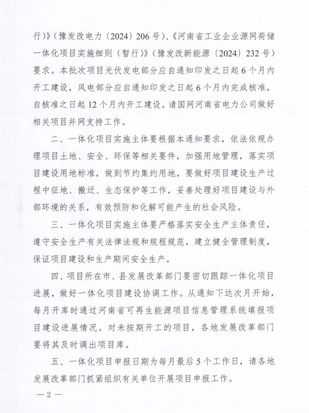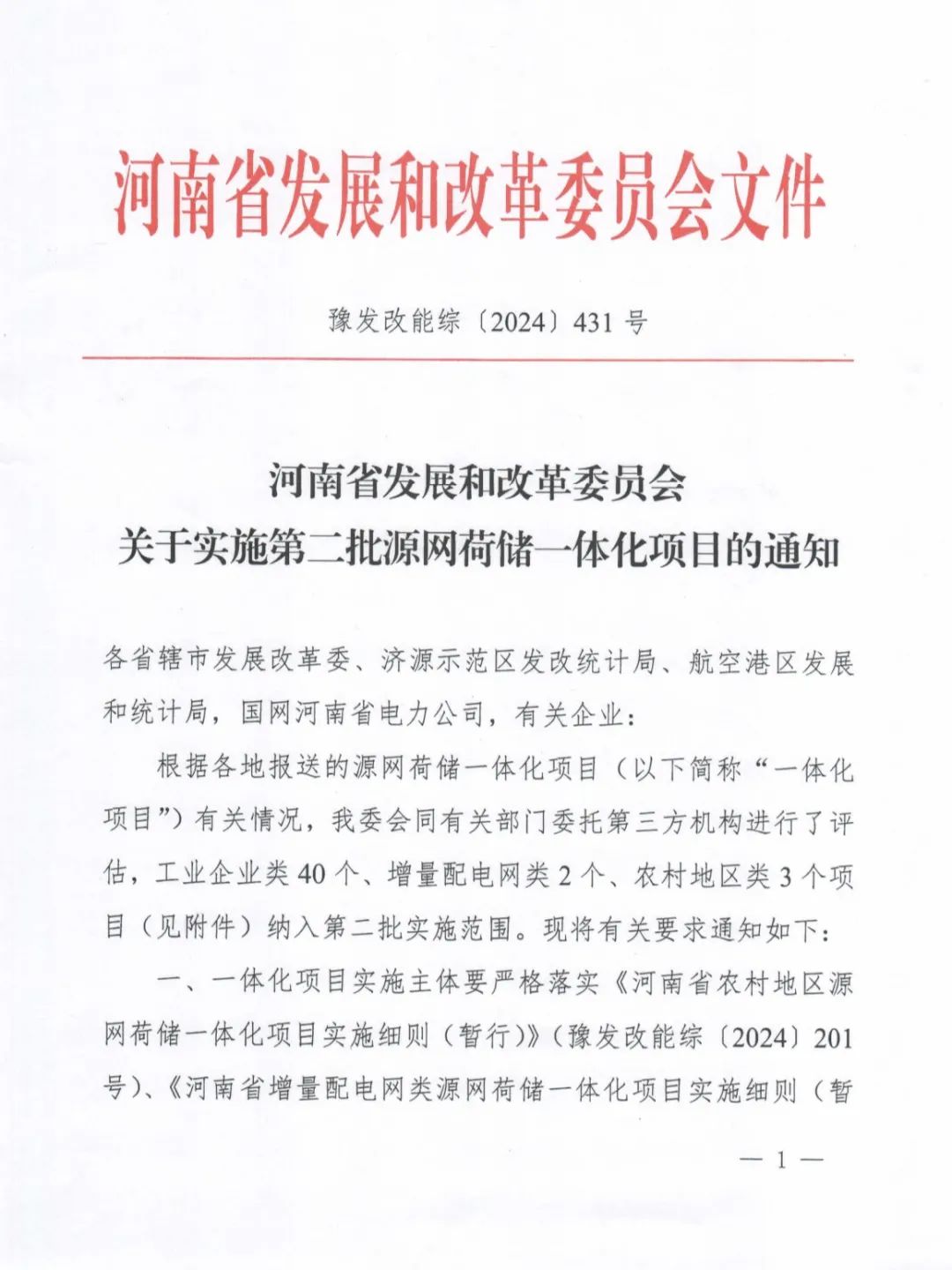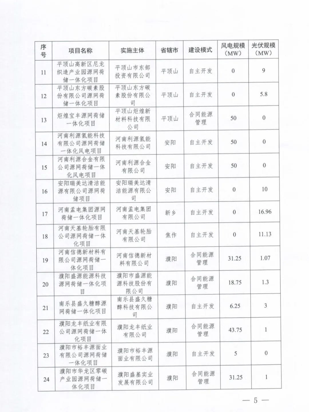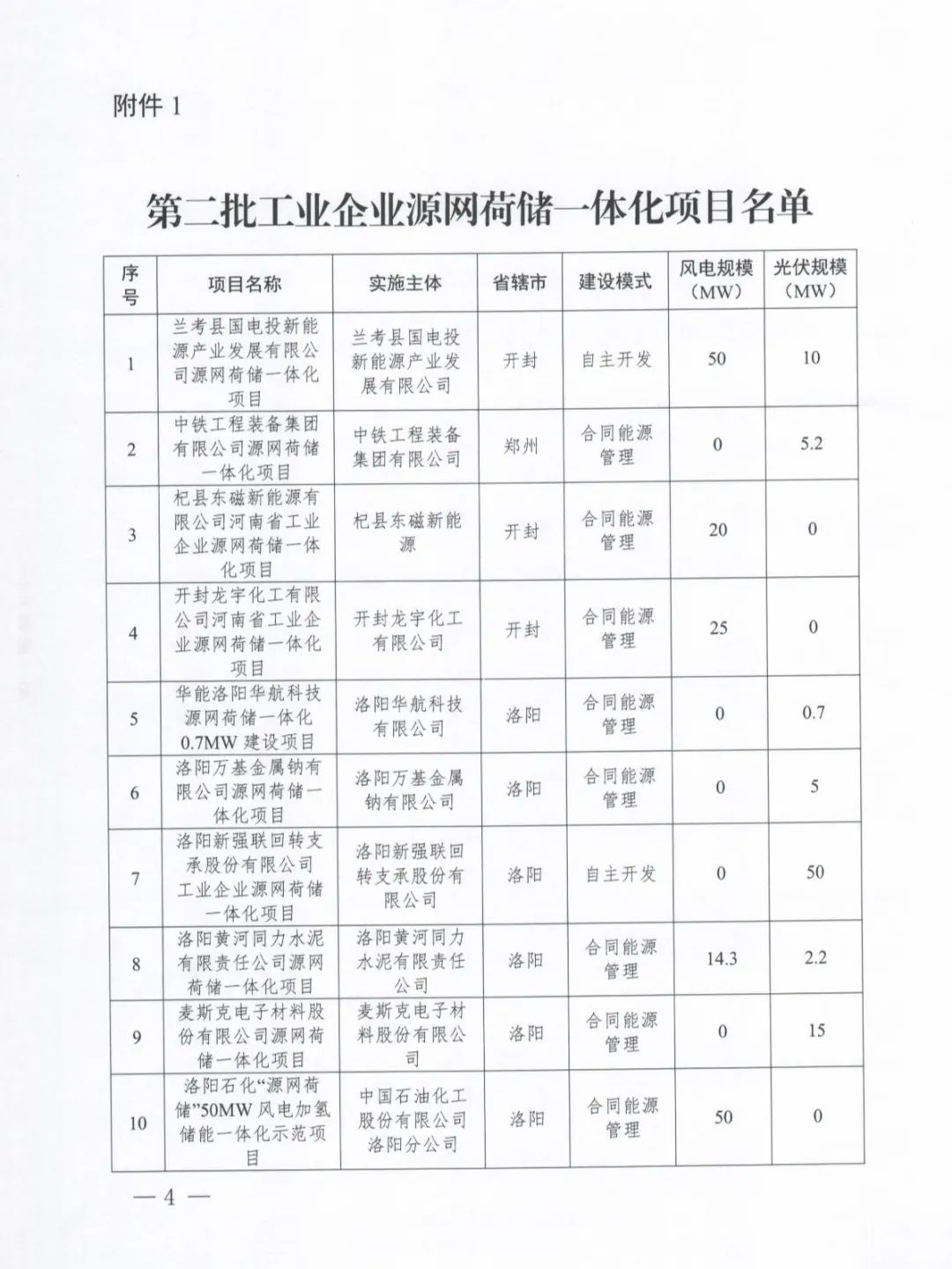 7月24日,河南發改委發布《關于實施第二批源網荷儲一體化項目的通知》,將工業企業類40個、增量配電網類2個、農村地區類3個項目納入第二批源網荷儲一體化項目實施范圍。 根據清單來看(kan),涉及項目(mu)規模總(zong)計為964.8MW,其中風(feng)電項目(mu)規模為723.4MW,光(guang)伏項目(mu)規模為241.41MW。 從涉及(ji)到的(de)(de)業(ye)(ye)主(zhu)清單來看,獲批規(gui)模(mo)較(jiao)大的(de)(de)項目業(ye)(ye)主(zhu)包括(kuo)國家電投(tou)、中石化以(yi)及(ji)河南各地(di)市的(de)(de)國資(zi)企(qi)業(ye)(ye),而大部(bu)分中小規(gui)模(mo)項目業(ye)(ye)主(zhu)則是河南當地(di)的(de)(de)企(qi)業(ye)(ye)。 《通知》指出,本批次項目光伏(fu)發電部(bu)分(fen)應自(zi)通知印(yin)發之(zhi)日起(qi)6個(ge)月(yue)內(nei)開工建設(she)(she),風電部(bu)分(fen)應自(zi)通知印(yin)發之(zhi)日起(qi)6個(ge)月(yue)內(nei)完成(cheng)核(he)準,自(zi)核(he)準之(zhi)日起(qi)12個(ge)月(yue)內(nei)開工建設(she)(she)。 今年6月,河南省發改委發布《關(guan)于實施第一(yi)批源網(wang)荷儲一(yi)體化(hua)項(xiang)目的通知》,共包含(han)63個(ge)新能(neng)源項(xiang)目,合(he)計規模為2.145GW,其中風(feng)電項(xiang)目1.4GW,光伏項(xiang)目0.744GW。 從業(ye)(ye)(ye)主(zhu)單(dan)位來看,中(zhong)國(guo)平煤神馬控股集團、平頂山尼龍城建設(she)投(tou)資有限公(gong)司、中(zhong)國(guo)寶武(wu)鋼鐵(tie)、河(he)南利源煤業(ye)(ye)(ye)規(gui)模(mo)(mo)均超(chao)過100MW。在49個工業(ye)(ye)(ye)企業(ye)(ye)(ye)一體(ti)化項(xiang)目(mu)中(zhong)主(zhu)要以合同能源管理(li)的建設(she)模(mo)(mo)式為主(zhu),占到34個,其余均為自(zi)主(zhu)開(kai)發(fa);而農村地區(qu)的一體(ti)化項(xiang)目(mu)均為合作(zuo)開(kai)發(fa)。 需要(yao)指出的是,文件要(yao)求工業企業一體化項目應通過合理配置儲能等調節手段(duan),實現所發(fa)電力自發(fa)自用。應加裝(zhuang)(zhuang)防(fang)逆流裝(zhuang)(zhuang)置,不向大電網(wang)反(fan)送(song)電,在支撐綠色(se)電力充分消納的同時,不占用公(gong)共電力系統調峰能力。 增量(liang)配電網類項目原則上應配置(zhi)不(bu)低于新能源規模15%的(de)集中式獨立(li)(li)儲能裝(zhuang)置(zhi);配電網內(nei)部與公(gong)共電網的(de)交換(huan)功率(lv)和交換(huan)時(shi)段具有可控(kong)性(xing),具備電力(li)供需自我平衡運(yun)(yun)行(xing)能力(li),獨立(li)(li)運(yun)(yun)行(xing)時(shi)能保障重要負荷(he)連續供電不(bu)低于2小時(shi)。 在農村(cun)地區源(yuan)網荷儲(chu)一體化項目(mu)(mu)中,生產企業類源(yuan)網荷儲(chu)一體化項目(mu)(mu)按照不(bu)(bu)低(di)于(yu)(yu)新(xin)能源(yuan)裝機功(gong)率(lv)的20%、時(shi)長不(bu)(bu)少于(yu)(yu)2小(xiao)時(shi)的要求配置(zhi)新(xin)型儲(chu)能設施(shi);整(zheng)村(cun)開發類項目(mu)(mu)原則上(shang)應按照不(bu)(bu)低(di)于(yu)(yu)新(xin)能源(yuan)裝機功(gong)率(lv)的50%、時(shi)長不(bu)(bu)少于(yu)(yu)2小(xiao)時(shi)配置(zhi)儲(chu)能設施(shi)。