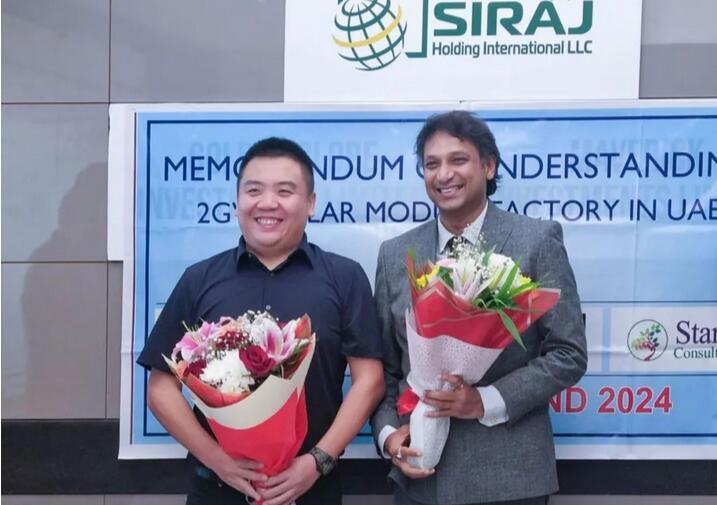 8月22日,Gstar與阿聯酋實力最雄厚、業務范疇最廣的投資公司Siraj Group為代表的中東財團簽署2GW太陽能組件制造項目諒解備忘錄(MoU),項目聚焦高效N型技術方向,開啟中東區域市場戰略業務部署新篇章。集團董事長王洋先生出席簽約儀式,標志著Gstar全球性一體化供應鏈生態將進一步打通。 簽署2GW高效組件制造MoU 該項目圍繞2GW高效光伏組件制造達成合作開發意向,Gstar將與Siraj Group、Galaxico為代表的財團推進項目合作,項目將于8月中旬完成項目簽署,11月正式破土動工。這一合作,是全球化背景下不同經濟體間優勢互補、互利共贏的生動實踐。通過此次合作,Gstar將攜手中東財團,共同深耕本地市場和資源,迅速推進在中東地區的發展布局,書寫一段關于技術創新、產業升級與全球化合作的新篇章。 戰略攜手,強強聯合 以Siraj Group為核心的中東財團,擁有豐富的項目融資和資產管理經驗。Siraj隸屬于Al Otaiba Group of Companies這一家族經營的多元化企業,業務廣泛涵蓋房地產、基礎設施建設、電信通訊和石油等多個行業。在新能源領域,憑借在電站融資方面的深厚經驗和顯著成就,Siraj Group與中東眾多領先企業建立了緊密的合作關系。相信Siraj Group憑借其廣泛的資源網絡以及對中東市場的深刻理解,將為2GW高效光伏組件制造項目的順利推進,發揮全方位保障和關鍵橋梁作用。 而Gstar作為全球光伏供應鏈解決方案領域的領軍企業,Gstar憑借在光伏領域多年的行業經驗和專業優勢,將利用其垂直一體化的光伏供應鏈網絡,打通上下游產業鏈。對組件產品質量高標準嚴要求的持續堅持,確保組件滿足多樣化市場需求。并依托多年的市場品牌優勢和營銷網絡布局,為光伏客戶提供更優質的全球化營銷產品和服務。這兩大集團的戰略攜手、強強聯合,相信將是項目落地的強大動力和保障。