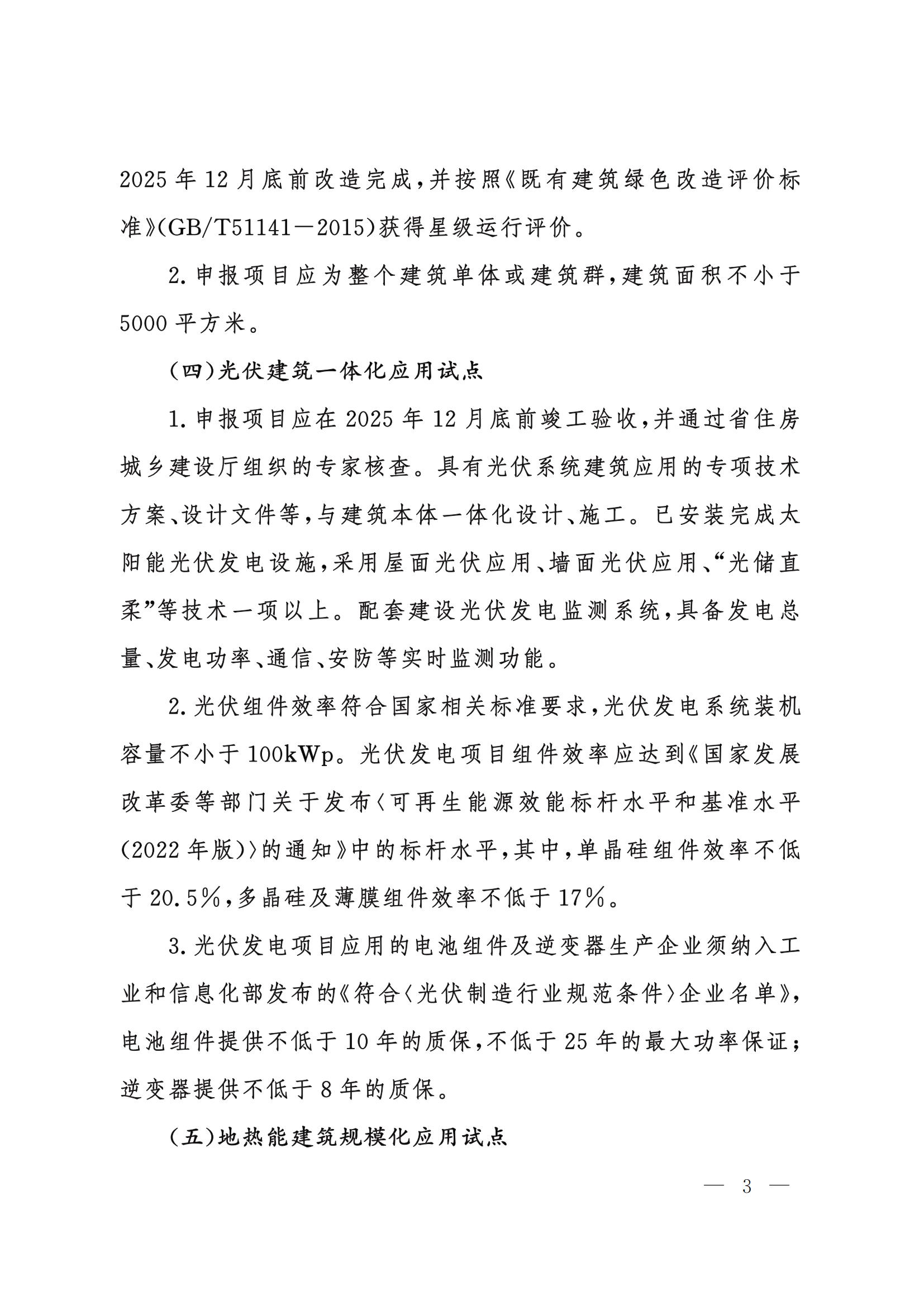 9月11日,青島(dao)市(shi)住(zhu)(zhu)房(fang)(fang)和(he)城鄉(xiang)建(jian)設局轉發(fa)山東省住(zhu)(zhu)房(fang)(fang)和(he)城鄉(xiang)建(jian)設廳(ting)組織申(shen)報2024年(nian)度山東省綠色建(jian)筑與建(jian)筑節能試點的通知,通知指(zhi)出,根據(ju)文(wen)件,申(shen)報項(xiang)目為已竣工(gong)或在建(jian)(主(zhu)體已完工(gong))的建(jian)筑項(xiang)目,依法取得相應建(jian)設許可,未發(fa)生較大(da)及以上質量安全事故,且申(shen)報單(dan)位在項(xiang)目開發(fa)過程中無重(zhong)大(da)不良記(ji)錄或引(yin)發(fa)影響社會穩定(ding)的群(qun)體投訴。 其中,光伏(fu)建(jian)筑(zhu)(zhu)一(yi)體(ti)化應用(yong)試(shi)點項目應在2025年(nian)12月底前竣工驗收,并通過省住房城鄉建(jian)設(she)廳組織的專家核查.具有光伏(fu)系(xi)統建(jian)筑(zhu)(zhu)應用(yong)的專項技(ji)術方(fang)案(an)、設(she)計文件等,與建(jian)筑(zhu)(zhu)本體(ti)一(yi)體(ti)化設(she)計、施工。已安裝完成太陽能光伏(fu)發電(dian)(dian)設(she)施,采用(yong)屋(wu)面光伏(fu)應用(yong)、墻(qiang)面光伏(fu)應用(yong)、“光儲直柔”等技(ji)術一(yi)項以上.配套(tao)建(jian)設(she)光伏(fu)發電(dian)(dian)監測(ce)系(xi)統,具備發電(dian)(dian)總量、發電(dian)(dian)功率、通信(xin)、安防等實(shi)時(shi)監測(ce)功能。 原文如下: 青島市住房和城鄉建(jian)設(she)局關于轉(zhuan)發山(shan)東省(sheng)住房和城鄉建(jian)設(she)廳組織申報2024年度山(shan)東省(sheng)綠色(se)建(jian)筑與建(jian)筑節能試點(dian)的(de)通知 各有關單位: 按照(zhao)省住房(fang)和城(cheng)鄉(xiang)建設廳《關于組織申(shen)報(bao)2024年度山東省綠色(se)建筑與(yu)建筑節(jie)能(neng)試(shi)點(dian)(dian)的通知》要(yao)求,決定開(kai)展2024年綠色(se)建筑與(yu)建筑節(jie)能(neng)試(shi)點(dian)(dian)申(shen)報(bao)工作,包(bao)括:超低能(neng)耗與(yu)近零能(neng)耗建筑試(shi)點(dian)(dian)、低碳與(yu)近零碳建筑(社區、園區、片區)試(shi)點(dian)(dian)、既(ji)有建筑綠色(se)化改造(zao)試(shi)點(dian)(dian)、光伏建筑一體化應(ying)用(yong)試(shi)點(dian)(dian)、地(di)熱能(neng)建筑規模(mo)化應(ying)用(yong)試(shi)點(dian)(dian)。 請各相(xiang)關(guan)單位積極(ji)參與(yu)申報(bao),嚴格遵照通知要求準備申報(bao)材(cai)料,并請將相(xiang)關(guan)電(dian)子及紙(zhi)質(zhi)版(ban)材(cai)料于9月(yue)18日(ri)前(qian)報(bao)送青(qing)島(dao)市建筑節能與(yu)產業化發(fa)展中心(嶗山區(qu)中商國際(ji)大廈4樓建筑產業化科(ke))。 青島市住房和城鄉建設局 2024年(nian)9月11日 (聯系人(ren):何(he)海東,0532-86670920) 上一篇: 河北公布可再生能源試點示范項目名單