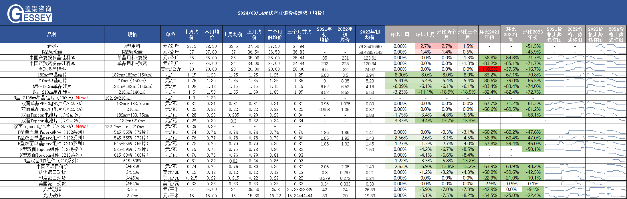 9月14日光伏產業鏈價格快訊2024-09-14 17:47來(lai)源:gessey瀏覽數:363次