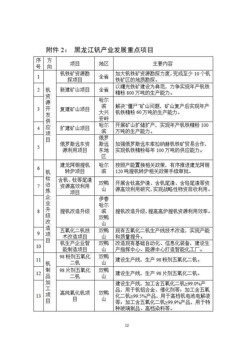 9月10日,黑龍江省工業和信息化廳公開征求《黑龍江省釩產業發展規劃(2024—2030年)(征求意見稿)》意見建議。 文件指出,規劃以近期目標(2024—2026年)為重點,確保相關目標和任務得到全面落實;兼顧中長期發展(2027—2030年),引領全省釩產業持續進步。 到2026年,建成雙鴨山釩產品全流程產業中心、伊春和哈爾濱精釩渣冶煉基地、齊齊哈爾高端含釩金屬材料生產基地的“一中心三基地”產業格局。其中五氧化二釩年生產能力達到3.5萬噸以上,釩電解液項目落地實施,隔膜、雙極板、電極等釩電池關鍵組件項目落戶龍江,全省釩產業產值達到400億元。 到2030年,形成釩鐵精粉、系列釩制品、優特精品鋼、釩電池儲能4大細分領域。通過推進建設一批重點項目、研究開發一批名優產品,形成在國內具有較強競爭優勢的釩產業。其中五氧化二釩年生產能力5萬噸以上,釩電池成套裝備和系統集成能力4.5GWh以上,全省釩產業產值達到1000億元。 原文如下: 黑龍江省釩產業發展規劃(2024—2030年) 為推動我省釩產業領跑新賽道、形成新優勢,加力發展新材料領域新質生產力,編制本規劃。 一、產業基礎 (一)釩產業市場前景好。釩作為新材料重要功能元素,在鋼鐵、有色、化工、醫學和新能源等行業有著廣泛的應用。鋼鐵行業是釩最大的傳統消費領域,2023年全國五氧化二釩(含粉釩與折算產品)產量約15.6萬噸,其中約87%應用于鋼鐵行業,隨著市場對釩鋼需求的擴大,預計未來鋼鐵行業的釩消費量會有小幅增長。釩電池技術的不斷突破,儲能領域釩需求將大幅增長(據不完全統計,2023年全國釩液流電池項目規模已達到2.2GW/9.1GWh)。根據《黑龍江省可再生能源發展“十四五”規劃》,儲能裝機增量在130萬千瓦以上,黑龍江省發改委要求新增新能源項目必須配置10%、2小時儲能設施。若全部采用釩電池儲能,需要高純釩2.15萬噸。電網側、用戶側大規模長時儲能應用也將快速發展,預計到2026年,區域新興儲能應用需要的五氧化二釩量超過1萬噸/年,并將逐年快速增長。加快釩產業發展,構建釩電池儲能產業鏈條,是全省實現碳達峰碳中和目標、提高綠能使用效率、推動綠能加速發展、加速產業低碳化發展的重要抓手。我省發展釩電池儲能產業不僅可充分發揮哈大綏齊風帶綠電資源潛力,同時依托我省特殊區域優勢釩電池市場可覆蓋黑、吉、遼蒙東地區及日本、韓國等地。 此外,新型含釩材料的研發和應用,如高性能釩合金在航空航天、核能、汽車制造等領域的推廣,也將進一步拓展釩產業的發展空間。隨著新材料產業發展,釩的需求量將進一步增加,應用領域將進一步擴大,預測到2030年我國釩年需求量約24-27萬噸。 (二)資源保障能力強。截至2023年底,黑龍江省保有鐵(礦石)資源量3.57億噸,鈦礦(礦物)資源量112.21萬噸。隨著資源地質綜合研究及勘查驗證,預計省內釩鈦磁鐵礦資源約50億噸,五氧化二釩近400萬噸,屆時我省將成為全國第三大釩鈦鐵礦資源大省。此外,我省毗鄰的俄羅斯遠東地區,擁有豐富的釩鈦磁鐵礦,俄羅斯釩鈦磁鐵礦粉含釩量高,五氧化二釩達到1%-1.2%,是國產釩鈦資源含釩量的2倍以上。可充分依托同江及綏芬河對俄區位優勢,提升我省利用俄羅斯釩鈦資源能力,2023年我省進口俄羅斯釩鈦磁鐵礦粉約30萬噸,未來可增至100-350萬噸/年。 (三)釩產業發展初具規模。我省釩產業發展具備良好的產業基礎,依托黑龍江建龍礦業集團有限公司,黑龍江建龍鋼鐵有限公司等企業,已形成集釩鈦礦采選、冶煉提釩、釩產品初加工的產業鏈條,在產品研發、技術創新、人才隊伍、運輸保障等方面有較好的基礎。其中,黑龍江建龍鋼鐵有限公司是東北三省唯一一家具有釩產品深加工能力的企業,擁有完整的冶金釩產業鏈,具備10000噸(五氧化二釩)/年產能和一定技術優勢。雙鴨山鑫沙環保有限公司擁有兩條多釩酸銨生產線,目前具備6000噸/年產能。今后,隨著建龍西林鋼鐵有限公司180噸提釩轉爐項目、大連融科全釩液流儲能電池全產業鏈合作項目、華永集團50MW/200MWh釩液流共享儲能項目的相繼建設,我省釩產業發展基礎將進一步夯實,上中下游產業鏈供應鏈逐步完善,釩產業高質量發展水平穩步提升。 (四)已建立形成較強技術支撐。黑龍江建龍釩鈦研究院已經與佳木斯大學、東北大學、中科院大連化物所、大連融科等10余家高校、科研院所及企業結合,開展釩鈦冶煉、高純釩、釩鋁合金、釩電解液及釩電池等全鏈條的創新研究,現已擁有4項國際領先技術,3項國際先進技術,具備一定保障釩產業鏈和供應鏈安全的技術基礎。2023年完成《海砂礦制備球團、高釩鈦球比冶煉及釩高效回收關鍵技術開發與應用》,該項目整體達到了國際先進水平,其中高比例海砂球團制備技術及高爐冶煉釩回收率達到國際領先水平。2024年完成特殊用途釩鋁合金(用于“深海、深地、深空”裝備制作)用五氧化二釩研發和生產。 二、總體要求 (一)指導思想 堅持以習近平新時代中國特色社會主義思想為指導,全面貫徹黨的二十大精神,深入落實習近平總書記對我省重要講話重要指示精神,立足新發展階段,完整、準確、全面貫徹新發展理念,加快構建新發展格局。聚焦培育發展新質生產力,加強資源供給保障,強化科技創新和技術突破,推動重點項目建設和產業結構優化,不斷拓展產品應用,積極延伸產業鏈,努力實現結構合理、鏈條完