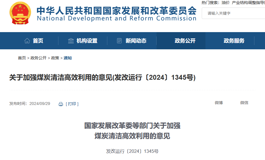 9月29日,《國家發展改革委等部門關于加強煤炭清潔高效利用的意見》印發,文件提出:“提高儲運清潔化水平。持續推進煤炭運輸“公轉鐵”、“公轉水”,鼓勵從礦區源頭開展“散改集”。進一步提高煤炭主產區中長距離煤炭鐵路運輸比例,打造以鐵路、水路為骨干的多式聯運體系,有效防治運輸中的揚塵污染。鼓勵采用封閉式皮帶廊道、管道、管狀帶式輸送機和電動、氫能等新能源車輛短距離運輸煤炭。提高生產、流通和消費各環節儲煤設施清潔環保水平。提升沿海、沿江港口綠色集疏運比例,依法推動船舶靠港常態化使用岸電。” “有序發展煤炭原料化利用。加強煤基新材料應用創新,優化調整產品結構,加快煤基新型合成材料、先進碳材料、可降解材料等高端化工產品技術開發應用。加快煤制油氣戰略基地建設。加強煤制油氣等產能和技術儲備。推動煤化工與綠電、綠氫、儲能、二氧化碳捕集利用與封存等耦合發展,打造低碳循環的煤炭高效轉化產業鏈,促進煤化工產業高端化、多元化、低碳化發展。” 原文如下: 國家發展改革委等部門關于加強煤炭清潔高效利用的意見 發改運行〔2024〕1345號 各省、自治區、直轄市人民政府,國務院有關部委、有關直屬機構: 煤炭清潔高效利用是在煤炭開發、生產、儲運、使用全產業鏈各環節,綜合運用先進技術和管理等手段,控制和減少污染物及碳排放,提高煤炭利用效率的活動,對于充分發揮煤炭兜底保障作用,促進能源綠色低碳轉型,發展新質生產力具有重要意義。為貫徹落實黨中央、國務院決策部署,確保能源安全,更好支撐保障高質量發展,推動實現碳達峰碳中和目標,經國務院同意,現就加強煤炭清潔高效利用提出如下意見。 一、總體要求 堅持以習近平新時代中國特色社會主義思想為指導,深入貫徹黨的二十大和二十屆二中、三中全會精神,完整準確全面貫徹新發展理念,統籌發展和安全,充分發揮市場在資源配置中的決定性作用,更好發揮政府作用,立足我國以煤為主的能源資源稟賦,堅持目標導向和問題導向相結合,堅持系統觀念,以減污降碳、提高能效為主攻方向,以創新技術和管理為動力,以完善政策和標準為支撐,全面加強煤炭全鏈條清潔高效利用。 到2030年,煤炭綠色智能開發能力明顯增強,生產能耗強度逐步下降,儲運結構持續優化,商品煤質量穩步提高,重點領域用煤效能和清潔化水平全面提升,與生態優先、節約集約、綠色低碳發展相適應的煤炭清潔高效利用體系基本建成。 二、構建綠色協同的開發體系 (一)加強煤炭資源勘查。強化基礎性、公益性煤炭地質調查,鼓勵企業開展商業性勘查,完善勘查、開發、利用收益共享機制。運用綠色勘查技術,加強煤炭資源分類分級評價和煤礦精細化勘查,加大大型整裝煤田地質勘探與評價工作力度,為煤炭綠色智能高效開發和產能平穩接續提供地質保障。加強煤與煤層氣、戰略性金屬礦產等共伴生資源綜合勘查。 (二)優化礦區規劃布局。統籌資源稟賦、輸送通道、消費需求等因素,依據國土空間規劃,落實“三區三線”空間管控要求,科學謀劃煤炭產能布局,加強煤炭礦區總體規劃管理。落實生態環境分區管控要求,嚴格開展規劃環評,優先避讓環境敏感區。合理規劃黃河流域煤炭產業發展,依法開展水資源論證。推動礦區資源、生態、經濟協調發展,高標準建設山西、蒙西、蒙東、陜北、新疆五大煤炭供應保障基地。 (三)推動煤炭集約高效開發。將綠色開發理念和集約化規模化開發原則貫穿煤礦設計、建設、生產全過程。因地制宜推廣綠色開采技術。科學劃分礦區井(礦)田,合理確定煤礦建設規模,科學設置禁采限采區域,建設一批符合生態環保要求、資源條件好、安全保障程度高、智能高效的大型特大型煤礦。加強煤與共伴生資源協同開發。 三、構建安全環保的生產體系 (四)加快煤礦安全智能化發展。新建煤礦原則上按照智能化標準設計建設,大型煤礦和災害嚴重煤礦要加快智能化改造,具備條件的要實現采掘系統智能化。重點推進開采系統智能決策自主運行、掘進系統工藝設備高效協同,采掘工作面實現超視遠程控制與現場少人無人,推廣應用固定場所無人值守、危險繁重崗位機器人替代,提升煤礦安全高效生產管理水平。 (五)提升清潔生產水平。新建煤礦應當同步建設配套的洗選設施,加快現有洗選設施改造升級,大力淘汰落后洗選產能。修訂煤層氣(煤礦瓦斯)排放標準,加強瓦斯綜合利用。以地級市為主體統籌礦井水綜合利用,因地制宜建設集中處理利用項目,加強礦井水處理先進技術裝備應用。加強煤矸石分質分類利用處置,支持煤矸石規模化、無害化、高值化利用。 (六)推進節能環保升級。健全煤礦節能降碳標準體系,促進高能效技術和設備應用以及余熱、余壓等資源綜合利用,深入挖掘生產系統節能潛力,合理降低煤礦生產能耗。煤炭企業嚴格落實環境保護和生態修復主體責任,足額提取礦山地質環境治理恢復基金,確保專款專用。創新礦區循環經濟發展模式,鼓勵利用采煤沉陷區和關閉退出煤礦的工業廣場、排土場、巷道等地上地下空間發展新能源、儲能和碳匯林草。 四、構建清潔完善的儲運體系 (七)優化煤炭儲運網絡。不斷完善煤炭鐵路運輸網絡,提高大中型煤炭企業鐵路專用線接入比例,加快既有運煤鐵路擴能改造,完