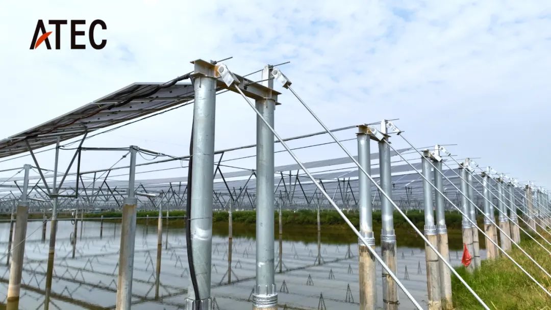 監利市位于(yu)長江中游, 光能充足、熱量豐富、無霜期長, 結合漢江平原河網(wang)密布的環(huan)境優勢, 開發漁(yu)光(guang)互補光(guang)伏(fu)電站成為當(dang)地發展可再生能源的新機遇。 項目介紹 共創美好未來 項目位于汪橋鎮官垱村,用地(di)面積(ji)2520畝,是(shi)湖北能源首個應(ying)用索(suo)(suo)網(wang)柔(rou)性(xing)(xing)支(zhi)架的示范光伏電站。項目充分利(li)用漁場(chang)上(shang)方空間,示范應(ying)用大(da)跨(kua)度(du)(du)柔(rou)性(xing)(xing)支(zhi)架——ATEC新(xin)一代擎(qing)天(tian)晴索(suo)(suo)網(wang)柔(rou)性(xing)(xing)支(zhi)架技術,大(da)跨(kua)度(du)(du)5索(suo)(suo)索(suo)(suo)網(wang)結(jie)構,單索(suo)(suo)總長達420米(mi),單跨(kua)41米(mi),凈空高3米(mi),通過水面以上(shang)光伏發電、水面以下水產養殖,實現(xian)資源的立體、高效綜合利(li)用,提高土地(di)利(li)用價值(zhi)。 科技樣本 科(ke)技(ji)向新(xin),湖北能源集團新(xin)能源發展(zhan)有(you)限公(gong)司牽頭(tou),各方通力(li)(li)協作積極(ji)開展(zhan)科(ke)研(yan)攻關,研(yan)究成(cheng)果將有(you)助于提高(gao)建設柔性支架光伏電站的(de)綜合(he)能力(li)(li),打造科(ke)技(ji)創新(xin)的(de)鮮活樣本。 與此(ci)同時在中(zhong)南(nan)大學高(gao)速鐵路(lu)建(jian)造技(ji)術(shu)國家工程研究中(zhong)心風(feng)(feng)洞試驗室進(jin)行了風(feng)(feng)洞試驗,結構(gou)體系的抗風(feng)(feng)穩定性(xing)滿足要求。 卓越表現 項目建成后,經受2024年年初湖(hu)北暴雪及(ji)凍雨惡劣天氣(qi)考(kao)驗(yan),未(wei)出(chu)現(xian)(xian)組件傾覆、支(zhi)架變形(xing)等災情,結構穩定,表現(xian)(xian)卓越。 除最(zui)大(da)化提升(sheng)土地空間利用率之外,較傳統固定支(zhi)架,柔(rou)性(xing)光(guang)伏支(zhi)架系統樁(zhuang)基數量(liang)少,最(zui)大(da)限度減(jian)少施(shi)工對環境(jing)的擾(rao)動,固定支(zhi)架方陣樁(zhuang)基231根/MW,柔(rou)性(xing)支(zhi)架方陣樁(zhuang)基126根/MW,減(jian)少近40%。 項目(mu)每年(nian)可(ke)提(ti)供1.29億(yi)千瓦時的綠(lv)色電(dian)能,每年(nian)可(ke)節約標準煤4萬噸,減少二氧(yang)化碳排(pai)放量(liang)10萬噸,在(zai)漢江(jiang)平原上,形成“碧水共藍天一色、光伏與漁業共存”的美麗畫(hua)面(mian)。 上一篇: 吉電股份:擬投資建設450MW光伏項目