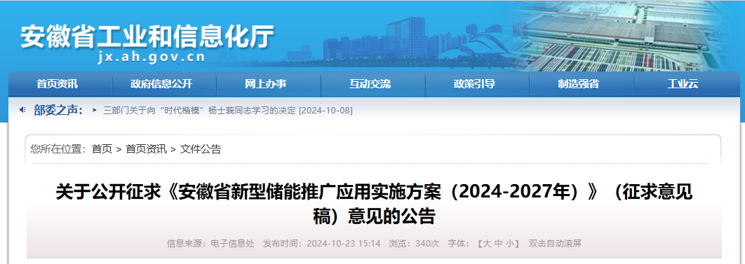 10月23日(ri),安(an)徽省工業(ye)和信息化廳征(zheng)求《安(an)徽省新型(xing)儲(chu)能(neng)(neng)(neng)推廣應用實施方案(an)(2024-2027年)》(征(zheng)求意見(jian)稿)意見(jian)。文件提出,重點圍(wei)繞大規模新能(neng)(neng)(neng)源匯集、負荷(he)密集接(jie)入(ru)和電(dian)壓支撐能(neng)(neng)(neng)力(li)不足的關鍵電(dian)網(wang)樞紐(niu)點,布(bu)局電(dian)網(wang)側(ce)(ce)獨(du)立(li)儲(chu)能(neng)(neng)(neng)電(dian)站(zhan)(zhan),同時(shi)公(gong)布(bu)了50個電(dian)網(wang)側(ce)(ce)儲(chu)能(neng)(neng)(neng)優先推薦接(jie)入(ru)站(zhan)(zhan)點,支持電(dian)網(wang)側(ce)(ce)獨(du)立(li)新型(xing)儲(chu)能(neng)(neng)(neng)項目通過租(zu)賃容量(liang)、參(can)與電(dian)力(li)現貨市(shi)場(chang)、電(dian)力(li)輔助服務市(shi)場(chang)等方式疏導成本。 對(dui)于電(dian)源側(ce)儲(chu)能(neng),文件要求(qiu):統籌電(dian)力(li)平衡需求(qiu)和新(xin)能(neng)源配(pei)建儲(chu)能(neng)實(shi)際保障能(neng)力(li),合(he)理設計調(diao)(diao)用(yong)(yong)方(fang)式,避免“多用(yong)(yong)多虧”。對(dui)納(na)入省級實(shi)施項目清(qing)單的(de)(de)共享儲(chu)能(neng)項目,應(ying)落實(shi)不低于50%比例(li)(li)的(de)(de)容(rong)量租賃協議要求(qiu)。加快(kuai)推(tui)動電(dian)力(li)調(diao)(diao)頻(pin)(pin)輔助服務市場正式運行,有序(xu)放開獨立儲(chu)能(neng)電(dian)站(zhan)中(zhong)標(biao)調(diao)(diao)頻(pin)(pin)容(rong)量占調(diao)(diao)頻(pin)(pin)總量總需求(qiu)的(de)(de)比例(li)(li)限制。此外,新(xin)興技術示(shi)范應(ying)用(yong)(yong)方(fang)面,加快(kuai)構網型儲(chu)能(neng)系統示(shi)范應(ying)用(yong)(yong)。安徽還將每年遴選一(yi)批省級優秀創新(xin)應(ying)用(yong)(yong)場景案例(li)(li),給予(yu)一(yi)次性(xing)獎勵。 原文如下: 關于(yu)公(gong)開(kai)征求(qiu)《安徽省新(xin)型儲能推廣應用實施方案(2024-2027年)》(征求(qiu)意見(jian)稿(gao))意見(jian)的公(gong)告 為貫徹落實《關于強化創新引領推動先(xian)進光伏(fu)和(he)新型儲(chu)能產業集(ji)群(qun)高質量發(fa)(fa)展的指導意見(jian)》(皖辦(ban)發(fa)(fa)〔2023〕26號)、《安徽省先(xian)進光伏(fu)和(he)新型儲(chu)能產業集(ji)群(qun)建設2024年(nian)工作(zuo)要(yao)點》(皖光儲(chu)辦(ban)〔2024〕1號),我(wo)廳會同(tong)相(xiang)關部門共同(tong)研究編(bian)制了《安徽省新型儲(chu)能推廣應用實施方案(an)(2024-2027年(nian))》(征求(qiu)意見(jian)稿),現(xian)向社(she)會公開征求(qiu)意見(jian)。 為盡(jin)快推動方(fang)(fang)案印發實(shi)施,加(jia)快推進新型(xing)儲(chu)能推廣應用,本次征求(qiu)意(yi)見(jian)的(de)期限為10個(ge)工作(zuo)日(ri)。如有意(yi)見(jian)建(jian)議(yi),請(qing)于2024年11月5日(ri)前填寫《征求(qiu)意(yi)見(jian)反(fan)饋(kui)信(xin)息表》,通過電子郵件(jian)方(fang)(fang)式反(fan)饋(kui)至dzxxc@ahjxw.gov.cn,郵件(jian)主題(ti)注明“新型(xing)儲(chu)能推廣應用方(fang)(fang)案意(yi)見(jian)建(jian)議(yi)”。 附件:1. 《安徽省新型儲能推廣應用實施方案(2024-2027年(nian))》(征(zheng)求意見稿) 2. 征求意見反饋信息(xi)表 安徽(hui)省工業和(he)信息(xi)化廳 2024年10月23日 相關附件: 安(an)徽省光儲辦關于征求《安(an)徽省新型儲能推廣應用實(shi)施(shi)方案(2024-2027年)(征求意見(jian)稿)》意見(jian)的函(han) 各(ge)市人民政府(fu),各(ge)有關單位: 為貫徹落實《關于(yu)強化創新(xin)引領(ling)推動(dong)先進(jin)光伏和新(xin)型儲(chu)(chu)能(neng)產(chan)業集(ji)群高質量發(fa)(fa)展的(de)指導(dao)意(yi)見》(皖(wan)辦(ban)(ban)發(fa)(fa)〔2023〕26號)、《安徽(hui)省(sheng)先進(jin)光伏和新(xin)型儲(chu)(chu)能(neng)產(chan)業集(ji)群建設(she)2024年工作(zuo)要點》(皖(wan)光儲(chu)(chu)辦(ban)(ban)〔2024〕1號),省(sheng)光儲(chu)(chu)辦(ban)(ban)在充分(fen)調研的(de)基礎上,起草編制了《安徽(hui)省(sheng)新(xin)型儲(chu)(chu)能(neng)推廣應用實施方案(2024-2027年)(征求(qiu)意(yi)見稿)》。現(xian)征求(qiu)你們意(yi)見,請于(yu)10月30日17:30前(qian)書面(mian)反饋(kui)至省(sheng)光儲(chu)(chu)辦(ban)(ban)。逾(yu)期未反饋(kui)視為無意(yi)見。 聯系(xi)人:楊(yang)靖治(zhi),聯系(xi)電(dian)話:0551-62871759、18226635371,郵(you)箱:yangjingzhi@ahjxw.gov.cn。 安徽(hui)省先進光(guang)伏和(he)新型儲能產業集群 建設工作領導小組辦公(gong)室 2024年10月22日(ri) 安徽(hui)省新型(xing)儲能推廣應(ying)用實施方案 (2024-2027年) (征(zheng)求意(yi)見稿) 新(xin)(xin)型儲(chu)能(neng)(neng)是支撐新(xin)(xin)型電(dian)力系(xi)統的重要(yao)技(ji)術和基礎裝備。為貫(guan)徹(che)落(luo)實(shi)《關(guan)于(yu)強化創新(xin)(xin)引領推動(dong)先進(jin)(jin)光伏(fu)和新(xin)(xin)型儲(chu)能(neng)(neng)產業集群(qun)高質量發(fa)展(zhan)的指導(dao)意見》(皖辦發(fa)〔2023〕26號)、《安徽省(sheng)先進(jin)(jin)光伏(fu)和新(xin)(xin)型儲(chu)能(neng)(neng)產業集群(qun)建設2024年工(gong)作(zuo)要(yao)點》(皖光儲(chu)辦〔2024〕1號),加(jia)快(kuai)我省(sheng)新(xin)(xin)型儲(chu)能(neng)(neng)推廣應(ying)用(yong),營(ying)造(zao)產用(yong)互(hu)促的良(liang)好發(fa)展(zhan)環境,制定本實(shi)施方(fang)案。 一、指導思想 以習(xi)近平(ping)新(xin)時代(dai)中國(guo)特色(se)社會主義思想為指導,全面貫徹落實黨(dang)的二十大精(jing)神,堅持(chi)(chi)(chi)市(shi)場(chang)主導、政府引(yin)導,堅持(chi)(chi)(chi)安全可靠、效益優先,堅持