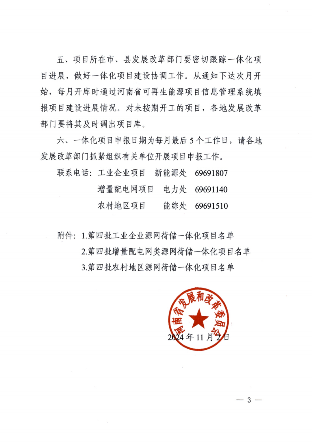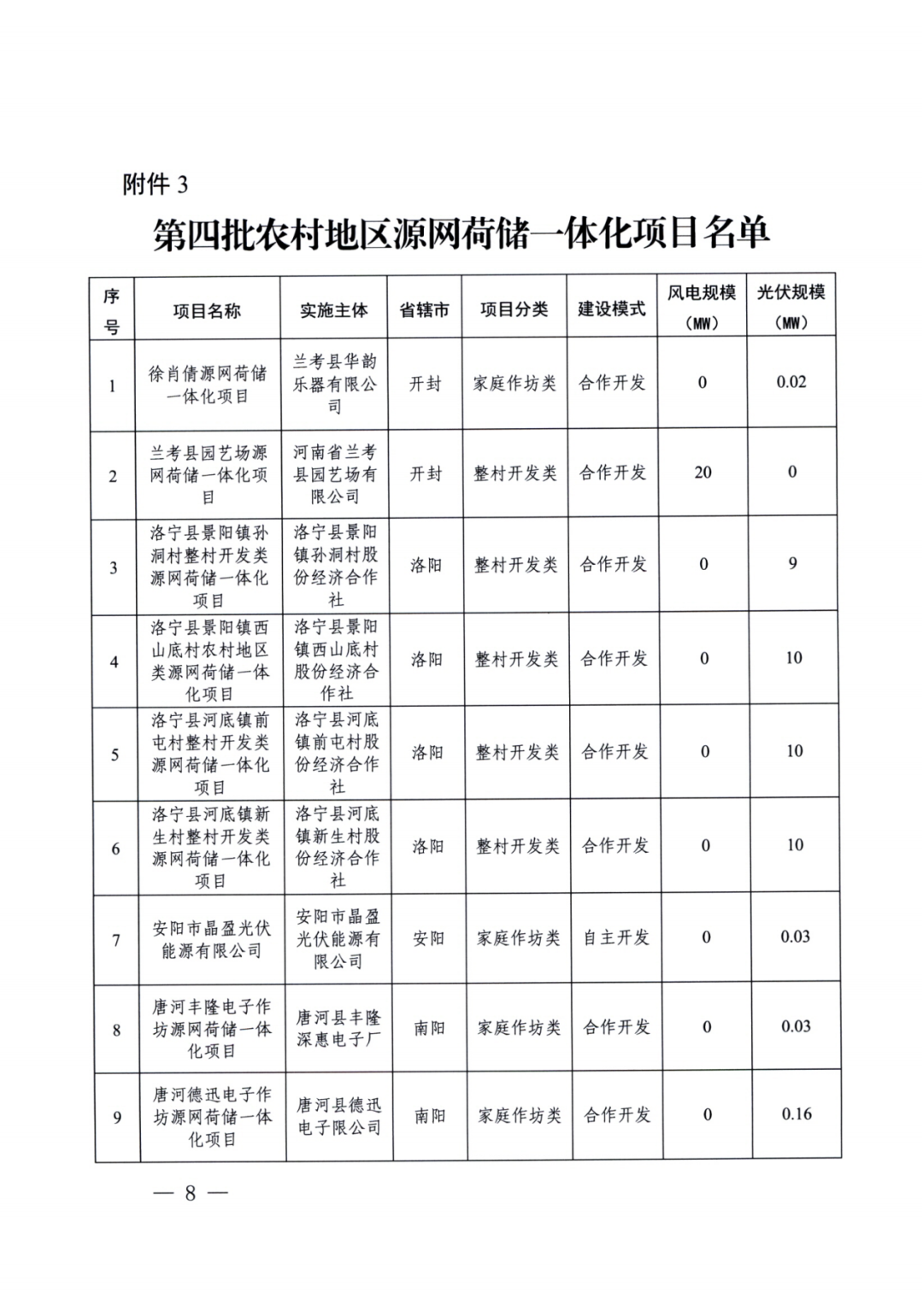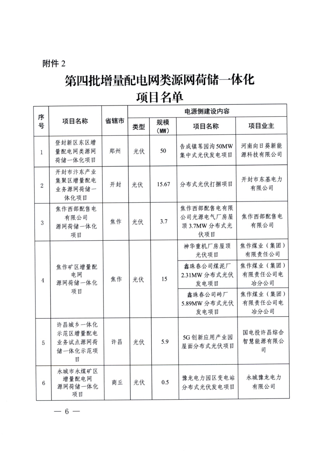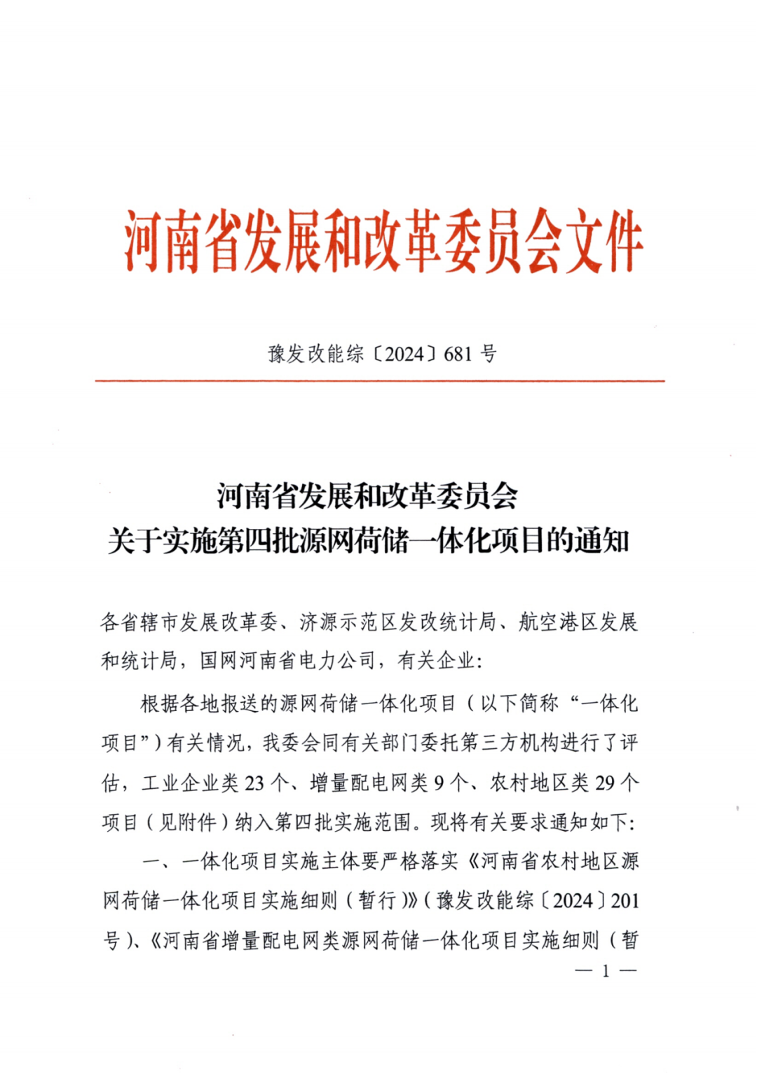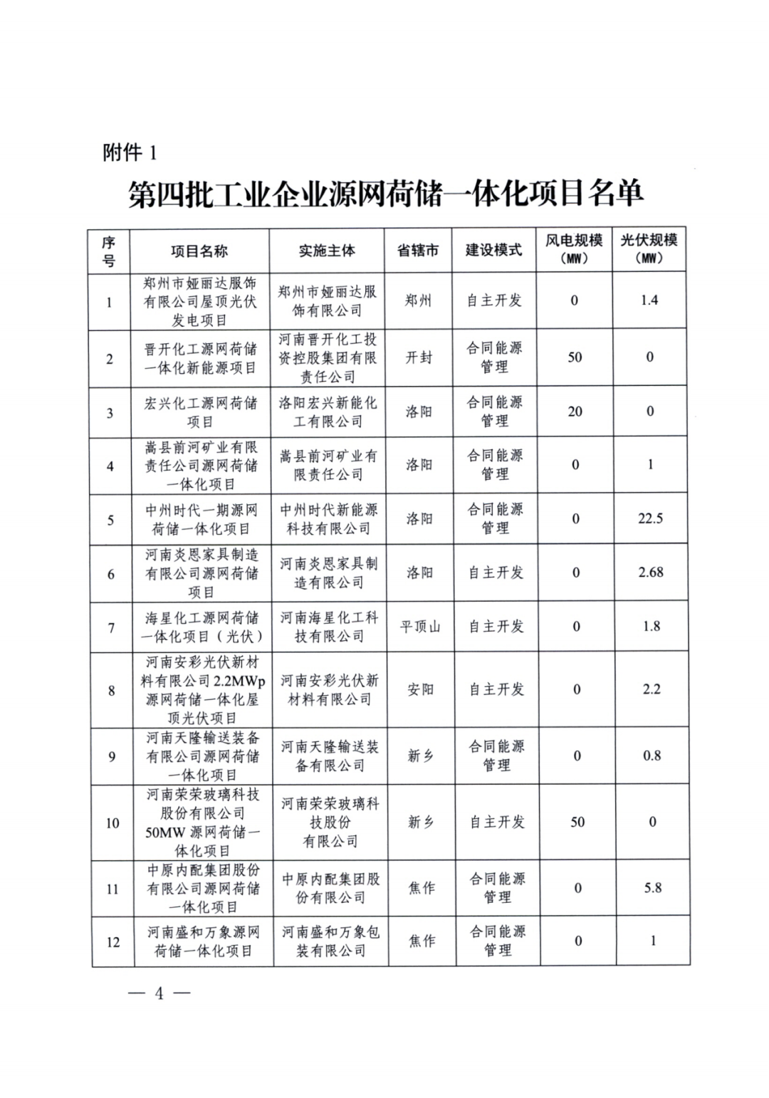 11月4日,河南省(sheng)發改(gai)委發布(bu)《關于實施第(di)四批源網荷儲一(yi)體化項目的通知(zhi)》。河南省(sheng)發改(gai)委會同有關部門委托第(di)三(san)方(fang)機構進行了評估(gu),工(gong)業企(qi)業類(lei)(lei)23個(ge)、增量配電(dian)網類(lei)(lei)9個(ge)、農村地區類(lei)(lei)29個(ge)項目(見(jian)附(fu)件(jian))納入(ru)第(di)四批實施范圍。 本批次涉及項目規模共653.94MW,其中光伏418.94MW、風電235MW。其中工業企業類中,風電規模145MW,光伏規模93.52MW;增量配電網類中,風電規模70MW,光伏規模123.6MW;農村地區類中,光伏規模201.82MW。 一體化項目實施主體要嚴格落實《河南省農村地區源網荷儲一體化項目實施細則(暫行)》、《河南省增量配電網類源網荷儲一體化項目實施細則(暫行)》、《河南省工業企業源網荷儲一體化項目實施細則(暫行)》要求。本批次項目光伏發電部分應自通知印發之日起6個月內開工建設,風電部分應自通知印發之日起6個月內完成核準,自核準之日起12個月內開工建設。 原文(wen)如下:
