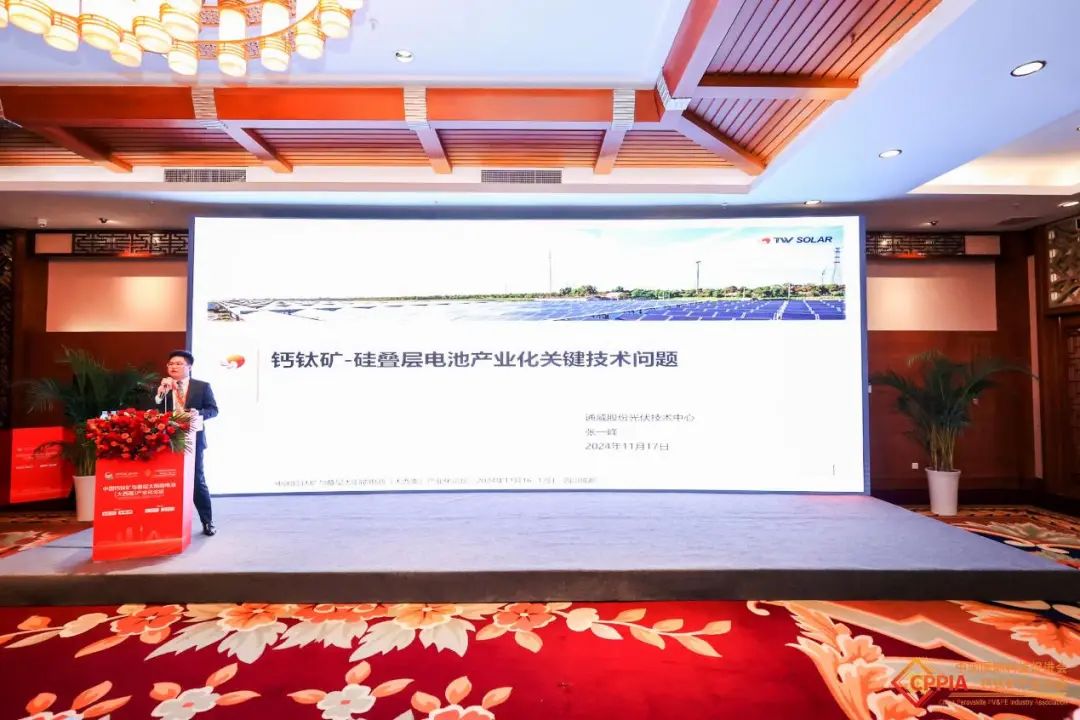 近日,由中國國際科技促進會鈣鈦礦產業分會主辦、通威股份等聯合主辦的“中國鈣鈦礦與疊層太陽能電池(大西南)產業化論壇”在四川成都召開。本次會議為首次面向西南地區的鈣鈦礦論壇,鈣鈦礦全產業鏈企業及西南地區著名高校鈣鈦礦研究團隊均出席參會,是一場面向全國的全方位領先交流盛會。通威股份光伏首席技術官邢國強博士為本次大會致辭,光伏研究院院長蔣方丹博士為本次大會主持,主任工程師張一峰博士受邀出席參會并作專題演講。 ![]() 邢國強博士為大會致辭 在致辭中,邢國強博士向各位來賓表示了熱烈歡迎,并表示希望與各位共同探討鈣鈦礦與疊層電池的技術進步、市場趨勢和產業政策,共同推動我國鈣鈦礦與疊層電池產業的健康發展。 ![]() 蔣方丹博士為本次大會主持 在主題為《鈣鈦礦-硅疊層電池產業化關鍵技術問題》演講中,張一峰博士向各位來賓分享了鈣鈦礦-硅疊層電池技術背景及產業化進展、通威鈣鈦礦-硅疊層電池面向量產的關鍵技術開發、未來疊層電池技術展望等內容,現場反響熱烈。 ![]() 張一峰博士作專題演講 張一峰博士介紹道,鈣鈦礦-硅疊層電池技術是通威太陽能電池技術儲備的重要方向,通威積極布局研發。2022年Q3,通威鈣鈦礦/硅疊層電池實驗室建成,開始兩步法研發,目前疊層電池研發效率達33.98%。通威還積極推進疊層電池技術的產業化進程,目前實驗室內實現210半片鈣鈦礦-異質結疊層電池效率突破26.13%,預計2024年底建成疊層電池試驗線。未來,通威鈣鈦礦+硅疊層電池的開發將緊密跟隨硅底電池降本提效技術路線,結合通威特色的210半片平臺、薄片化、無銀金屬化和0BB等技術,持續推進鈣鈦礦硅疊層電池量產轉化。 會議期間,主辦方還帶領與會嘉賓前往通威全球創新研發中心展廳,深入了解通威光伏技術研發成果。 ![]() 各與會嘉賓參觀通威全球創新研發中心 堅持技術研發與創新是通威始終放在首位的發展戰略。目前,通威全球創新研發中心已正式建成投產,集聚科技創新資源,布局涵蓋幾乎所有太陽能電池、組件主流未來技術。憑借此技術研發關鍵引擎,未來通威將持續專注探索光伏前沿技術,引領行業發展,助力“雙碳”目標實現。?
