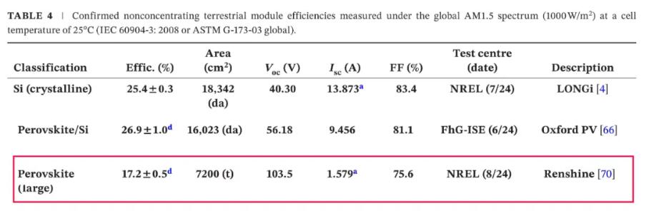 近日(ri),仁(ren)爍光能(neng)量產(chan)的鈣(gai)鈦(tai)礦(kuang)組(zu)(zu)件(jian)(jian)(jian)(尺(chi)寸1200mm*600mm),獲得美國(guo)(guo)可再生能(neng)源國(guo)(guo)家實驗室(NREL)穩態效(xiao)率(lv)測試(shi)認(ren)證,組(zu)(zu)件(jian)(jian)(jian)的全面(mian)積(ji)(ji)穩態效(xiao)率(lv)達17.2%(對應有效(xiao)面(mian)積(ji)(ji)效(xiao)率(lv)19.3%),是商用鈣(gai)鈦(tai)礦(kuang)組(zu)(zu)件(jian)(jian)(jian)全球首次且(qie)行業唯一(yi)的國(guo)(guo)際權威認(ren)證,該(gai)世界(jie)紀錄效(xiao)率(lv)被最新一(yi)期(qi)《Solar Cell Efficiency Tables》收錄(Version 65)。同時,仁(ren)爍光能(neng)研制的全鈣(gai)鈦(tai)礦(kuang)疊層(ceng)光伏組(zu)(zu)件(jian)(jian)(jian)效(xiao)率(lv)再創新高至24.8%(日(ri)本JET認(ren)證,面(mian)積(ji)(ji)放大至65 c㎡)。 據悉(xi),仁爍光(guang)能(neng)團隊持續引領(ling)行業的技術進(jin)(jin)步,已(yi)先后在國(guo)際(ji)上創(chuang)造了10項鈣(gai)鈦礦(kuang)(kuang)太陽能(neng)電池和(he)組件效率的世(shi)界(jie)紀(ji)錄,積極推進(jin)(jin)鈣(gai)鈦礦(kuang)(kuang)光(guang)伏的產業化進(jin)(jin)程。