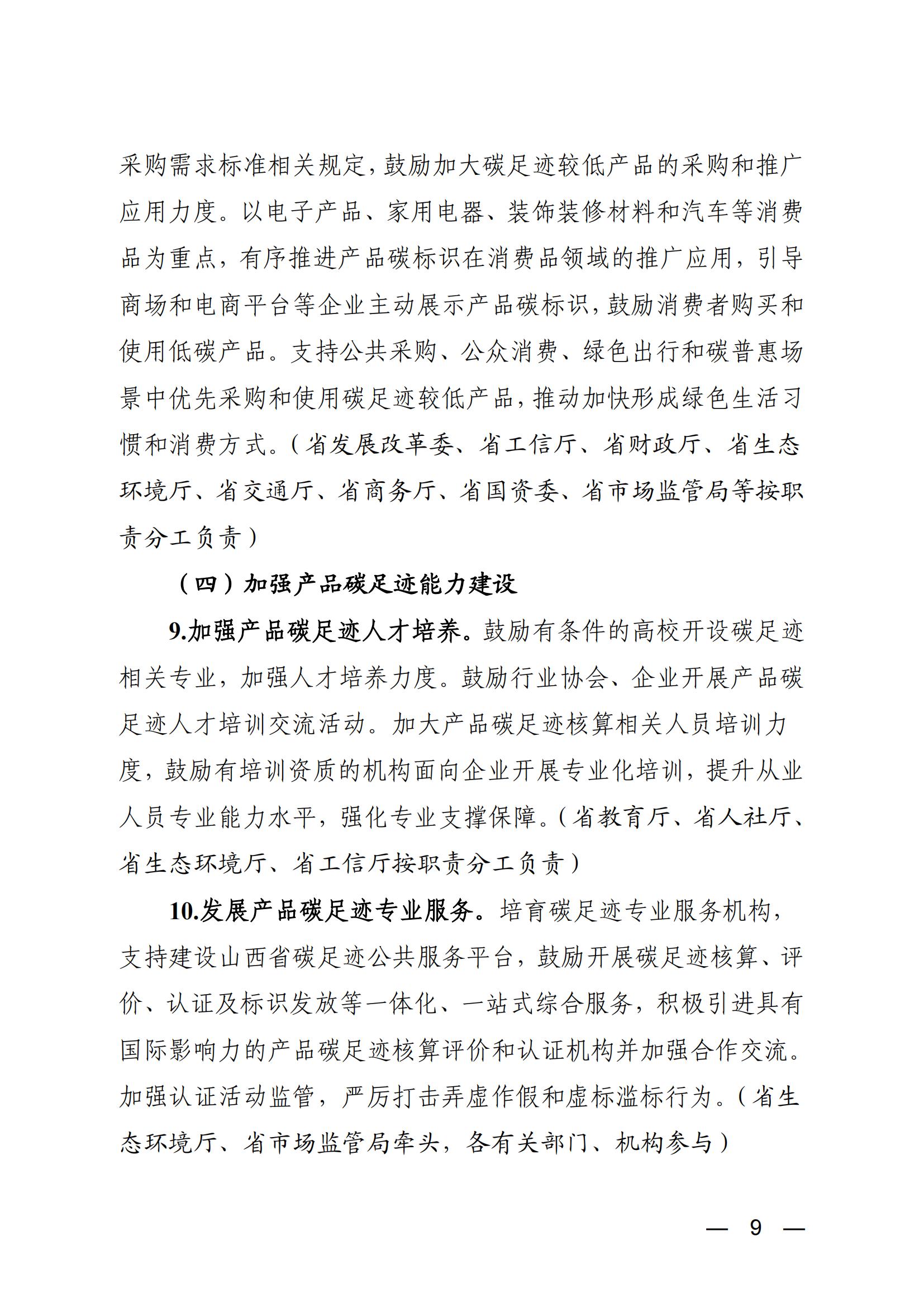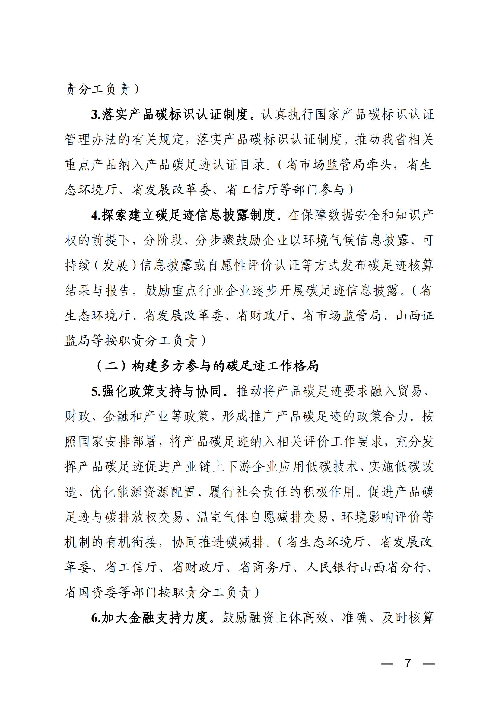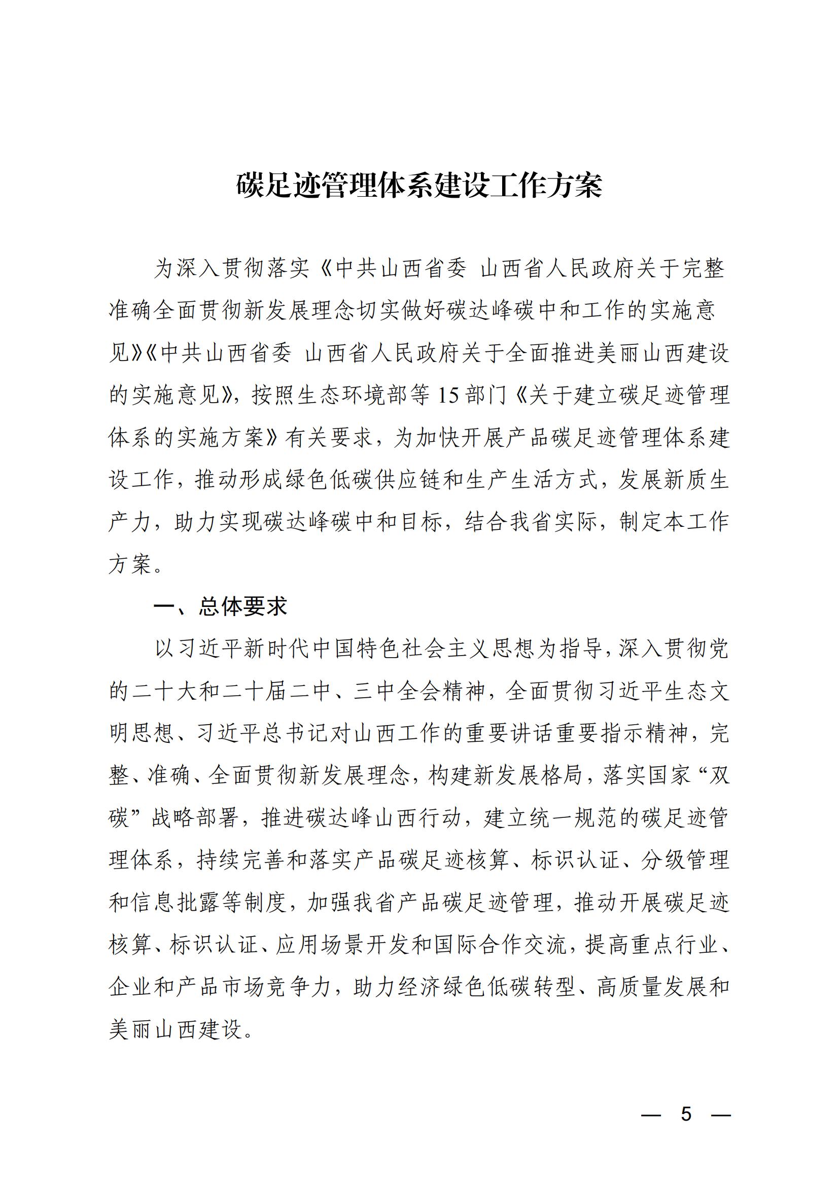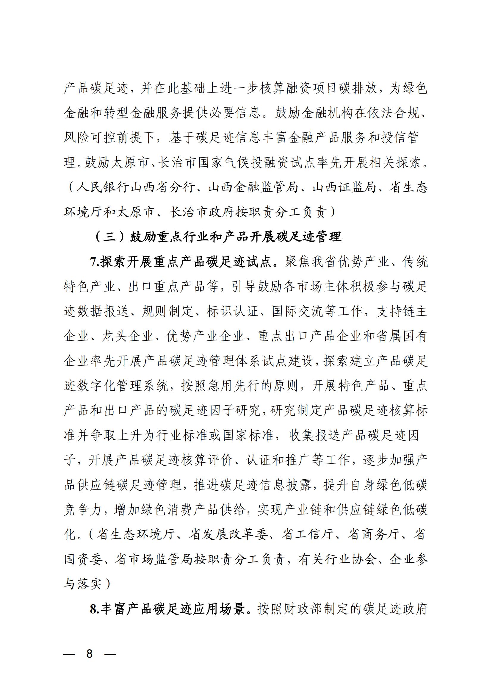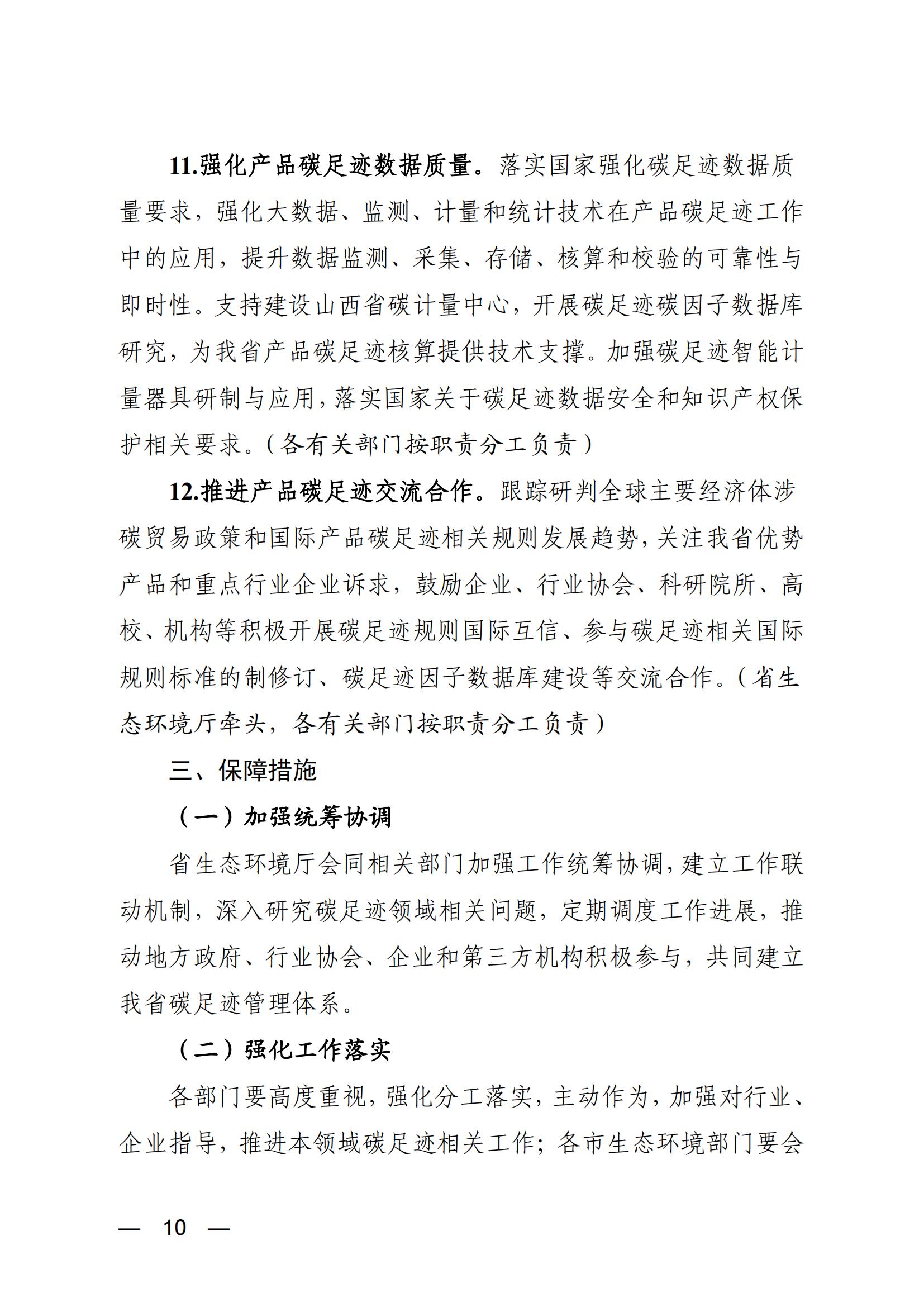 12月20日,山西省(sheng)環境廳發布《碳足跡(ji)管理體系建設工(gong)作(zuo)(zuo)方案(an)》的通知,通知指出,優先聚焦電(dian)力、煤炭、天然氣、鋼鐵(tie)、電(dian)解鋁、水泥、氫(qing)、石(shi)灰、玻璃、合成氨(an)、電(dian)石(shi)、甲醇、鋰(li)電(dian)池(chi)、新能(neng)源汽(qi)車、光(guang)伏(fu)和電(dian)子電(dian)器等重點產(chan)品,鼓勵行業管理部門、行業協會、企業、有關機構積極參與產(chan)品碳足跡(ji)核算規則標(biao)準研制工(gong)作(zuo)(zuo)。 原(yuan)文如下: