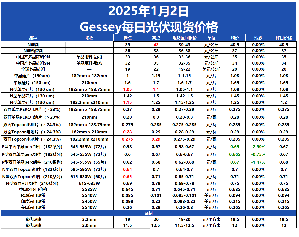Gessey:1月2日每日光伏市場行情2025-01-02 17:56來源:gessey瀏覽數:480次