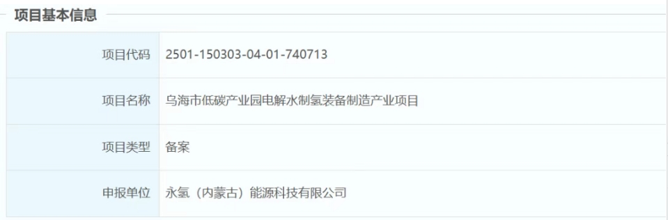 1月14日,烏海市兩個電解槽制造項目獲備案,兩個項目電解槽產能合計3GW。其中永氫(內蒙古)能源科技有限公司堿性電解槽產能2.25GW.為永氫(上海)能源科技有限公司全資子公司;內蒙古毅鏷新能源科技有限公司堿性電解槽產能0.75GW,為上海毅鏷新能源科技有限公司全資子公司。 1:項目單位:永氫(內蒙古)能源科技有限公司 項目名稱:烏海市低碳產業園電解水制氫裝備制造產業 項目建設地點:烏海市--海南區--低碳產業園區內 總投資:30000萬元 計劃建設起止年限:2025/01至2028/04 建設規模及內容:一期建設電解槽體生產車間及配套公輔設施,年產100套1000Nm?/h電解槽。二期建設電解槽體生產車間,年產150套1000Nm?/h電解槽。三期建設電解槽體生產車間,年產200套1000Nm?/h電解槽。總投資、資金籌措及建設期:總投資30000萬元,其中,自有資金30000萬元,申請銀行貸款0萬元。項目分三期建設,其中,一期投資20000萬元,建設年限:2025年1月至2026年4月。二期投資5000萬元,建設年限:2026年4月至2027年4月。三期投資5000萬元,建設年限:2027年4月至2028年4月。 2:項目單位:內蒙古毅鏷新能源科技有限公司 項目名稱:烏海市毅鏷制氫設備生產基地建設 項目建設地點:烏海市--海南區--烏海市低碳產業園內總投資:15000萬元 計劃建設起止年限:2025/01至2026/06 建設規模及內容:建設年產150臺套1000Nm?/h堿性電解槽及其配套公輔設施等。 項目總投資1.5億元,其中企業自籌1.5億元。 項目建設年限:2025年1月至2026年6月。