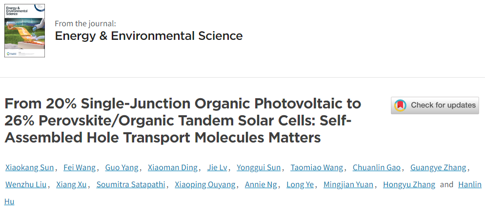 深圳職業技術大學胡漢林最新EES:從20%單結有機光伏到26%鈣鈦礦/有機串聯疊層太陽能電池:自組裝空穴傳輸分子至關重要2025-01-26 11:53來(lai)源(yuan):gessey瀏覽數:270次