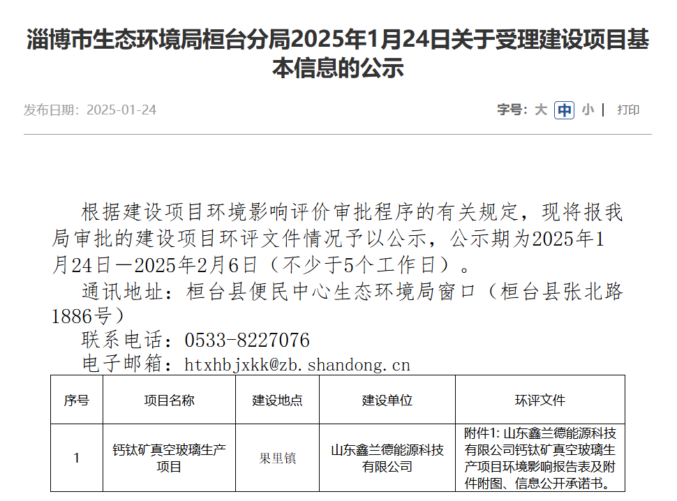 山東鑫蘭德能源鈣鈦礦真空玻璃生產項目環評公示2025-02-06 11:25來源:gessey瀏覽數:309次